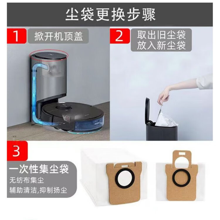 Suitable for Xiaomi Mijia sweeping robot M40/M30/M30PRO/M30S/C107 accessories Xiaomi Mijia dust bag mop rag edge cleaning fluid consumables 99.99% antibacterial 5-pack
