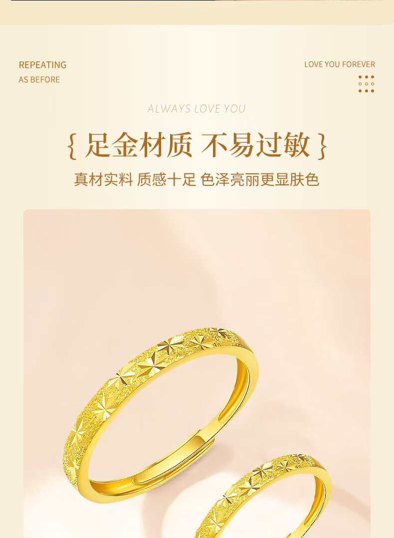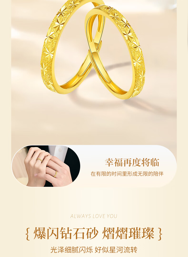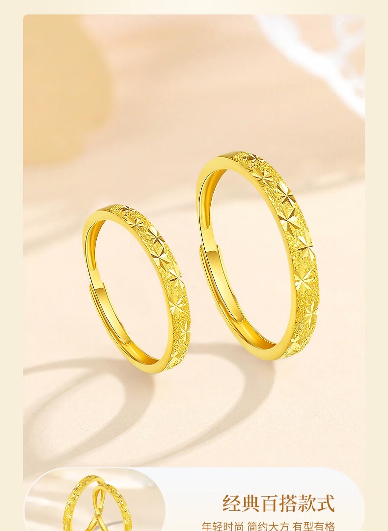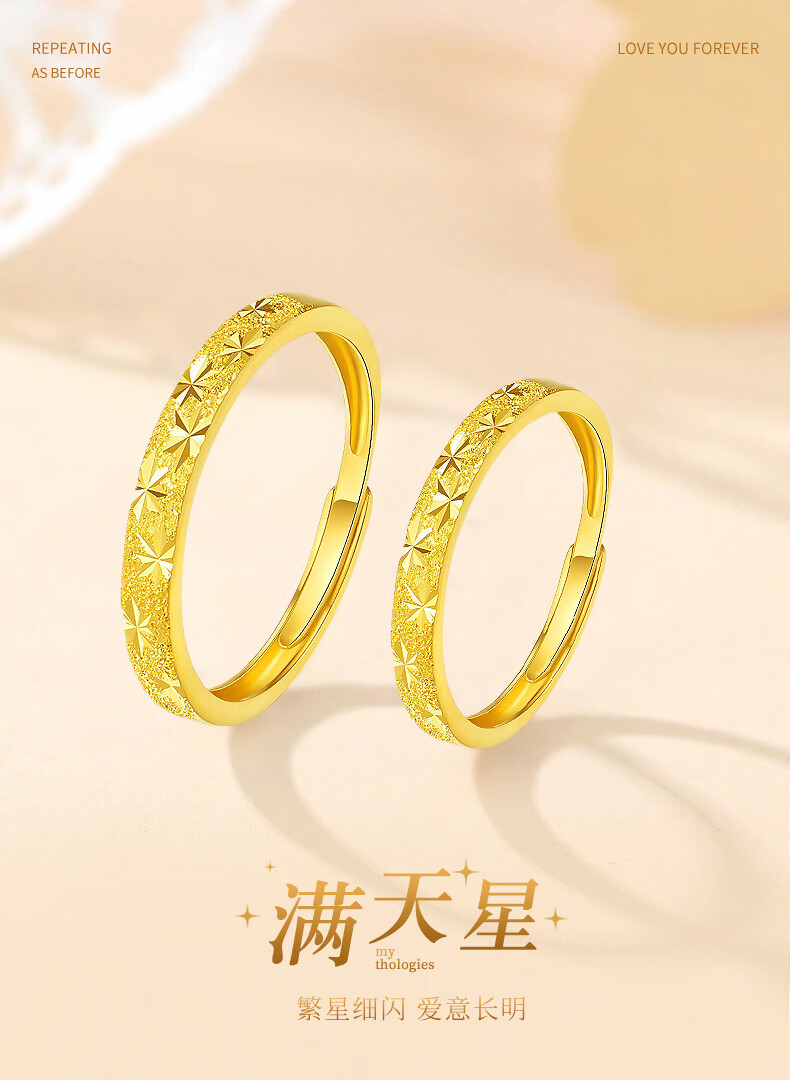 Chinese gold gypsophila gold ring for men and women, pure gold couple rings, a pair of birthday gifts for girlfriend and wife, pure gold gypsophila couple ring-female