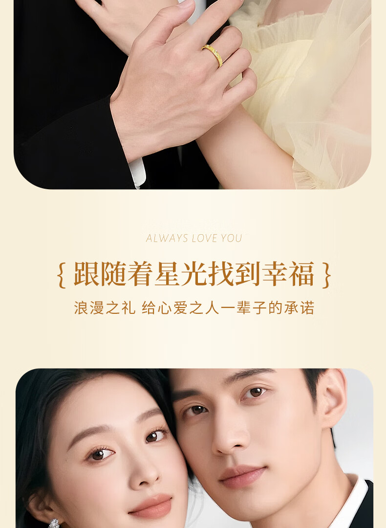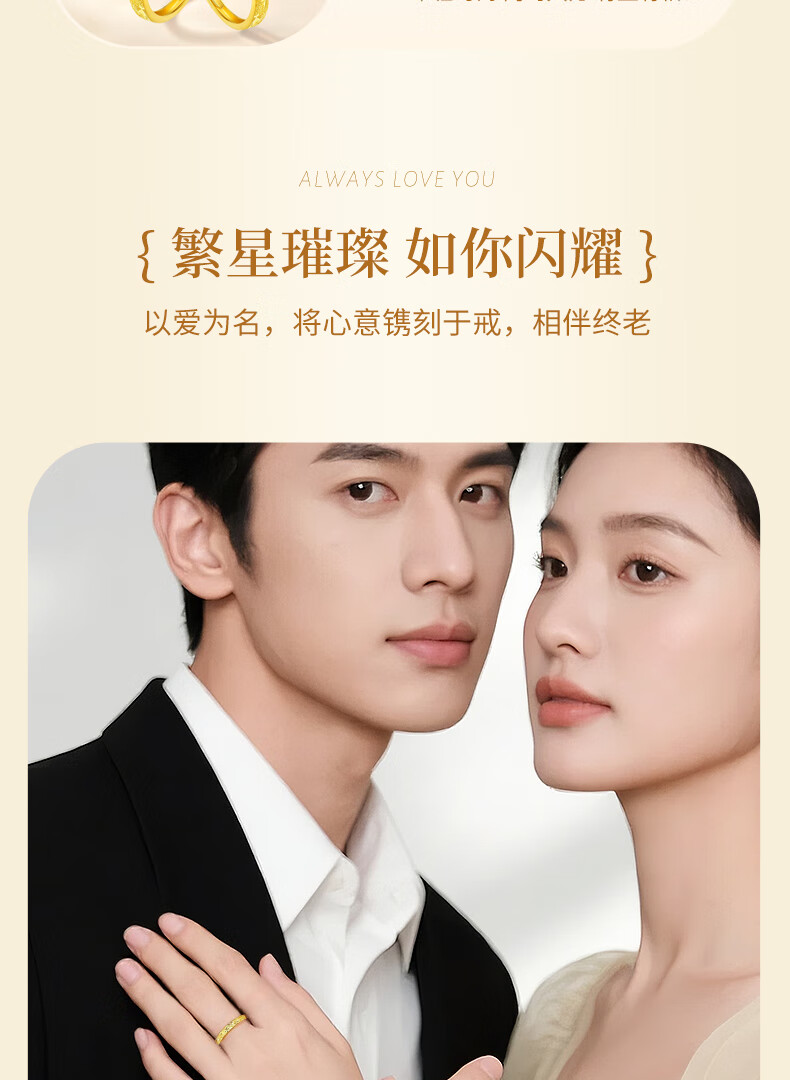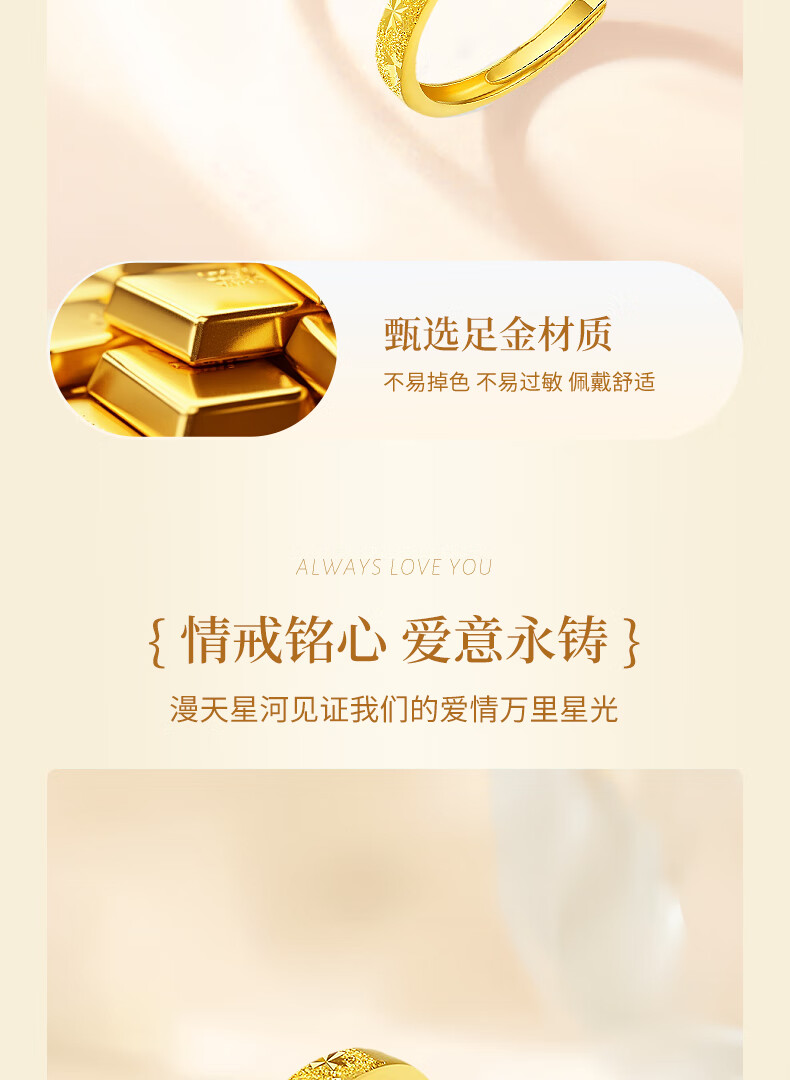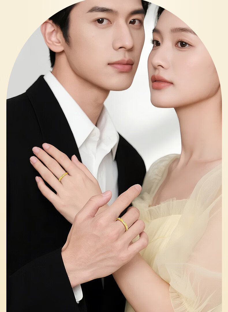 Chinese gold gypsophila gold ring for men and women, pure gold couple rings, a pair of birthday gifts for girlfriend and wife, pure gold gypsophila couple ring-female