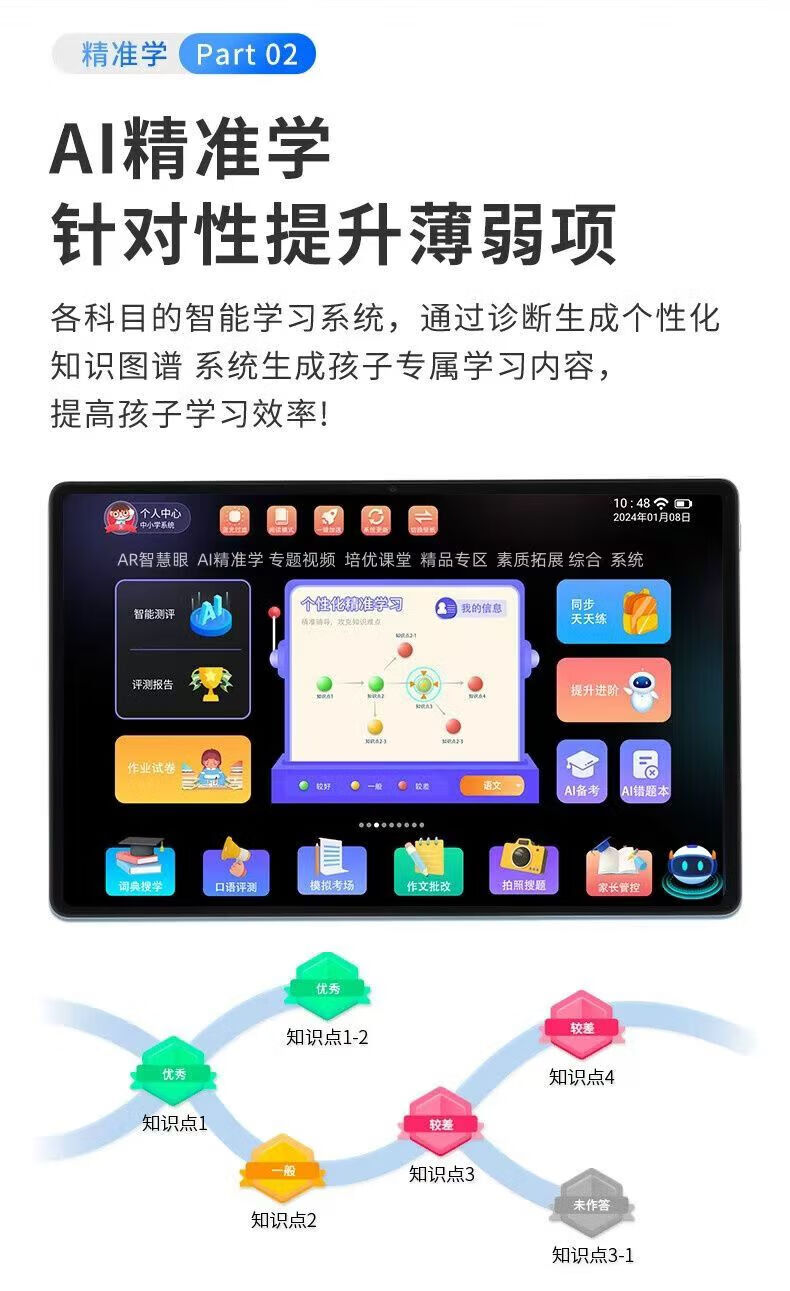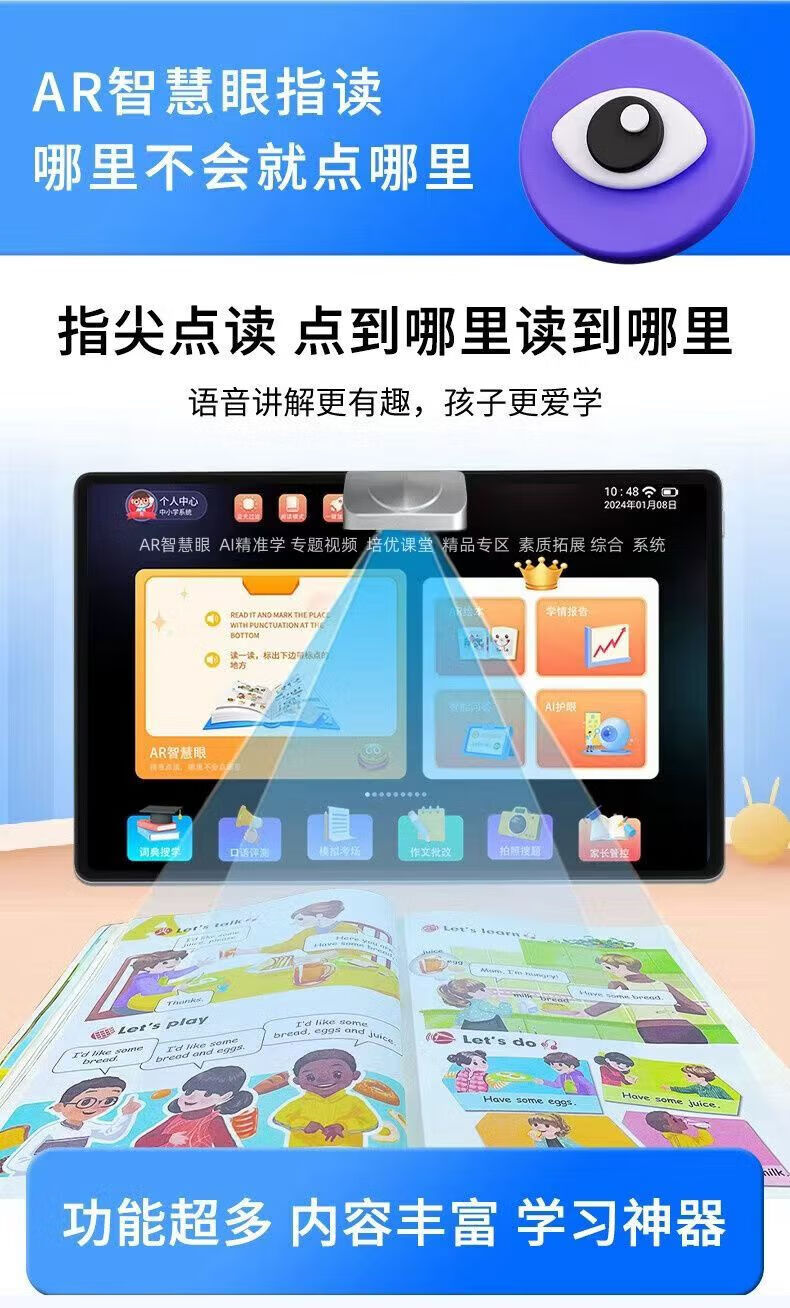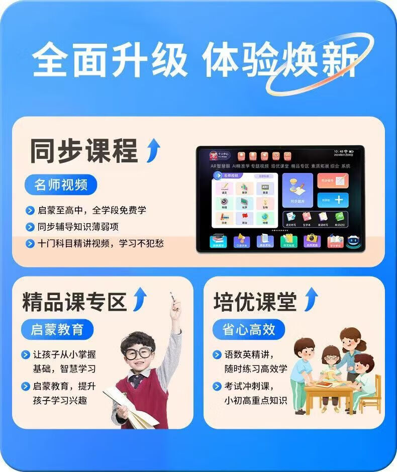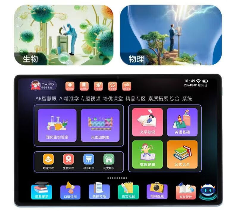 Little Ape Tutoring Little Ape AI Intelligent Learning Machine for First Grade to High School Students Tablet Synchronized Teaching Materials Tutoring Machine English Silver Little Ape Eye Protection Paper Screen + Famous Teacher’s Explanation 256GB x High-end Version Bluetooth Headset + Keyboard + Teaching Materials