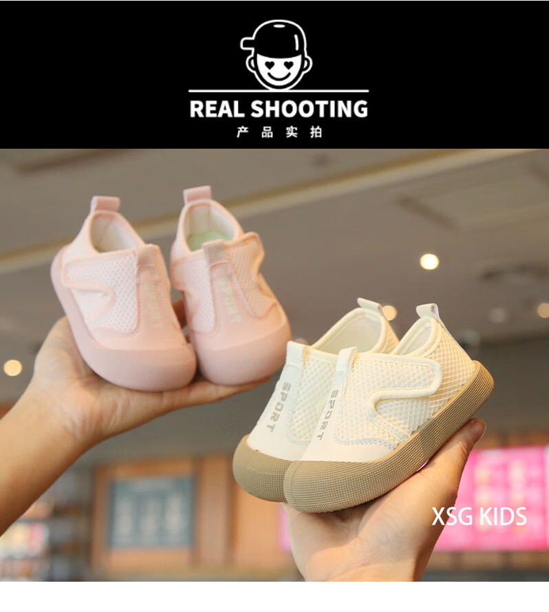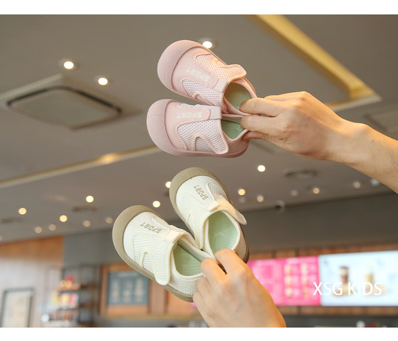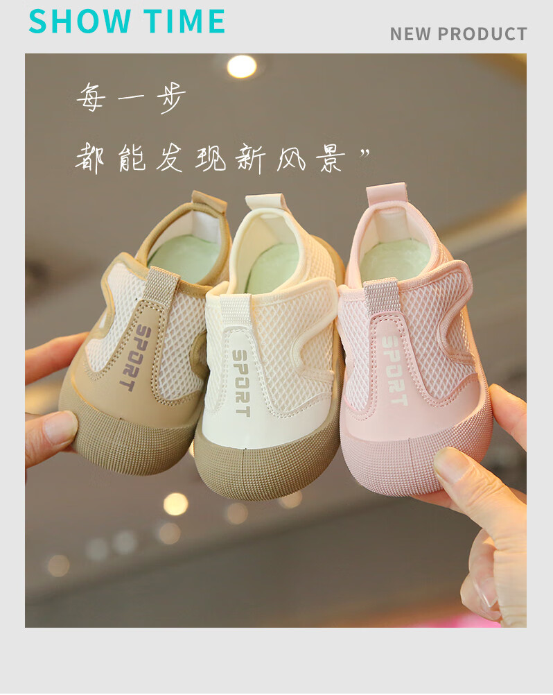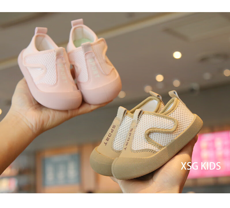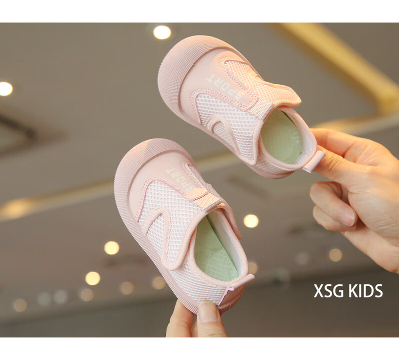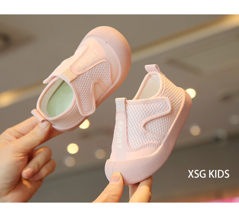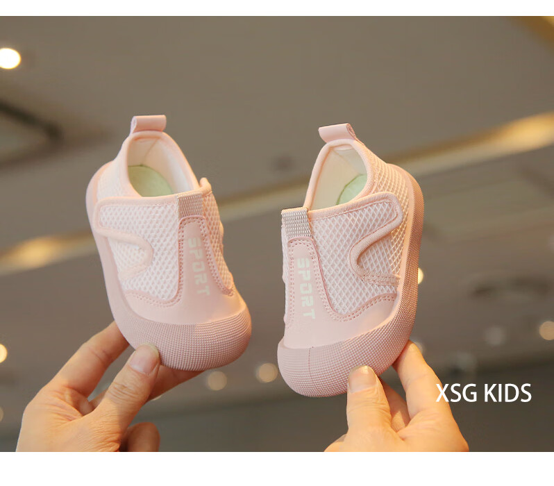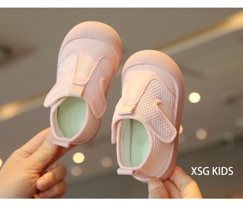Korean style baby cloth shoes spring and summer breathable mesh toddler shoes for boys and girls, anti-kick casual shoes, kindergarten indoor shoes, pink 23, inner length 14.5cm