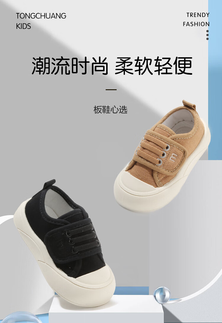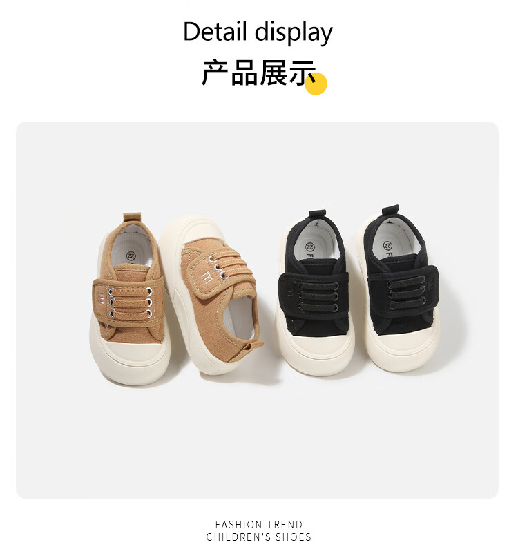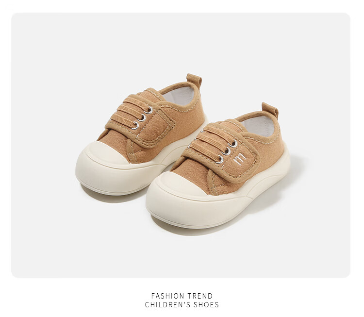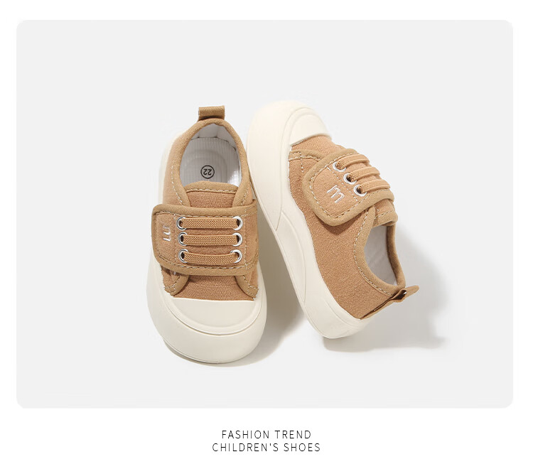 Spring and summer children's canvas shoes, baby versatile shoes, kindergarten indoor shoes, new boys' Velcro Korean style casual shoes, brown 23, inner length 15.5cm