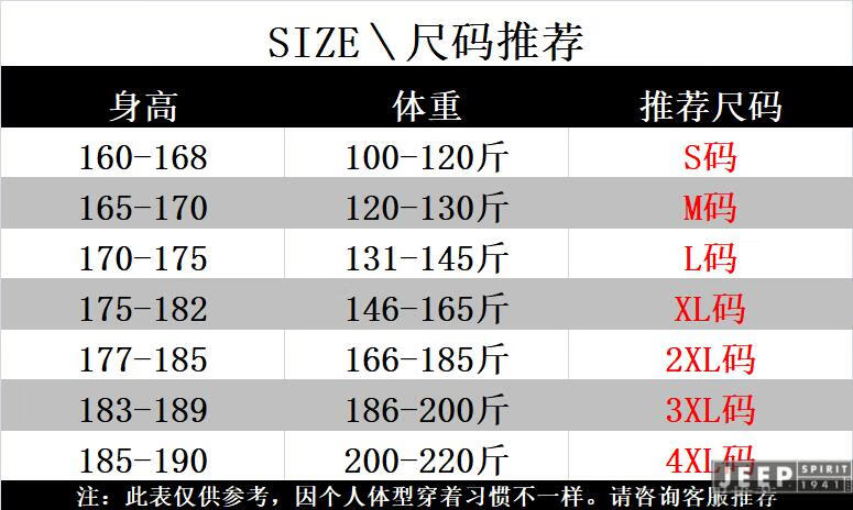 China (cm) 165 / 88-90 170 / 96-98 175 / 108-110 180 / 118-122 185 / 126-130