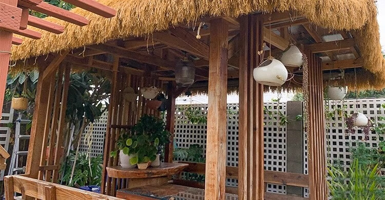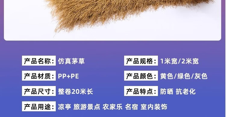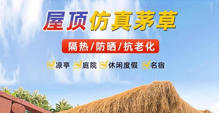 Simulated thatched roof, plastic fur straw eaves, artificial fake straw roof, scenic farmhouse pavilion villa decoration, ordinary encryption waterproof, straw yellow grass 0.5m*0.5m sample