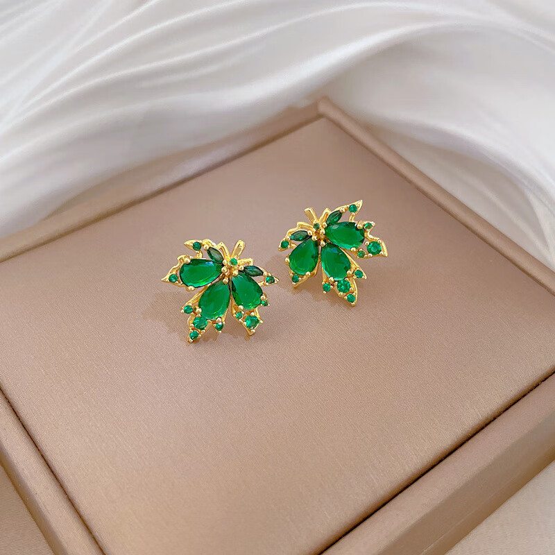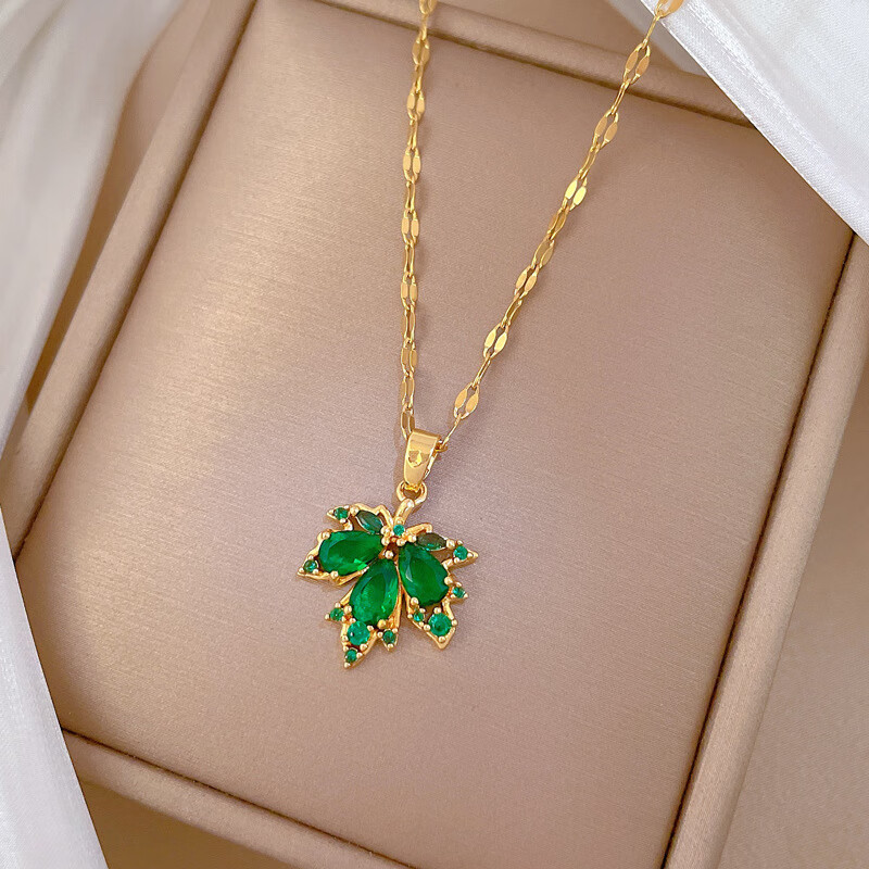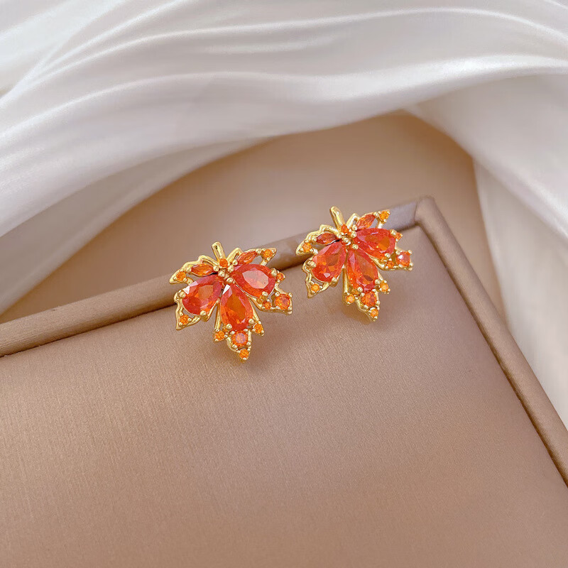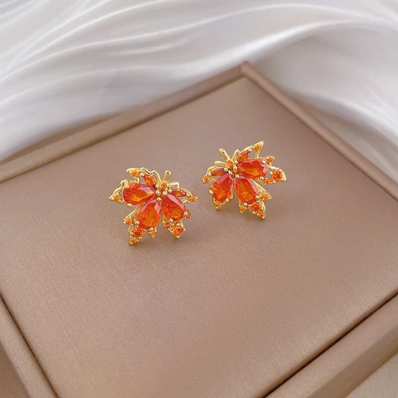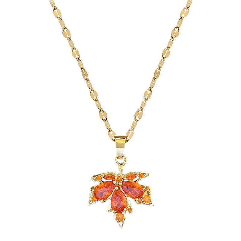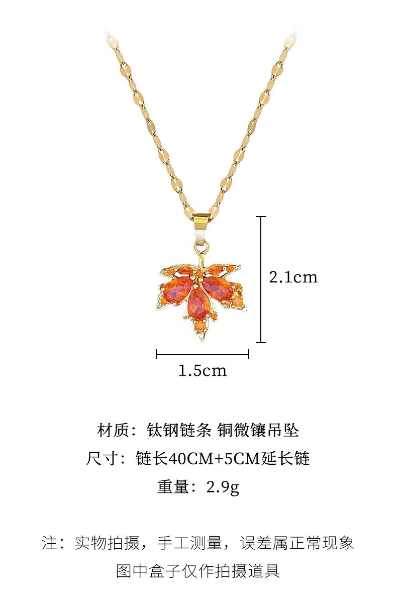 Colorful maple leaf necklace and earring set combination, light luxury, fashionable personality, versatile niche design clavicle chain, maple leaf necklace and earring set, orange, random gift box