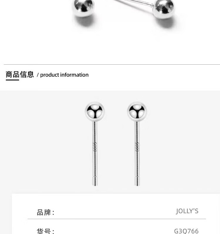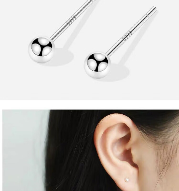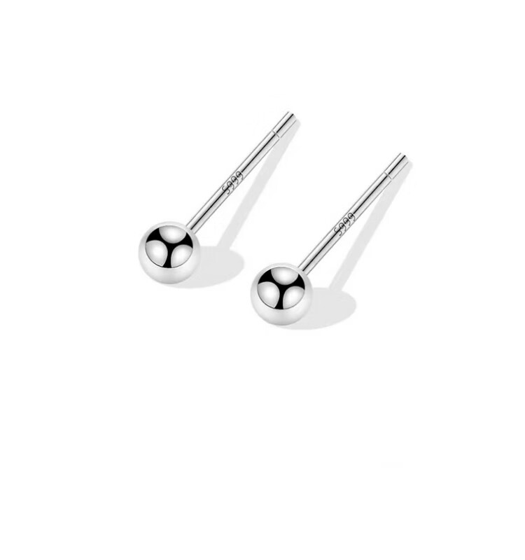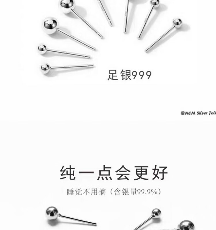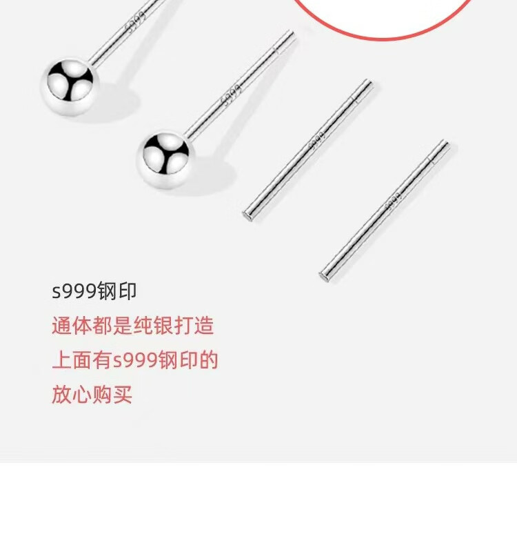 S999 sterling silver earrings for women, high-end niche, light luxury earrings, sterling silver ear piercing earrings gift box, 11mm double round head ear stick gift box packaging, S999 silver