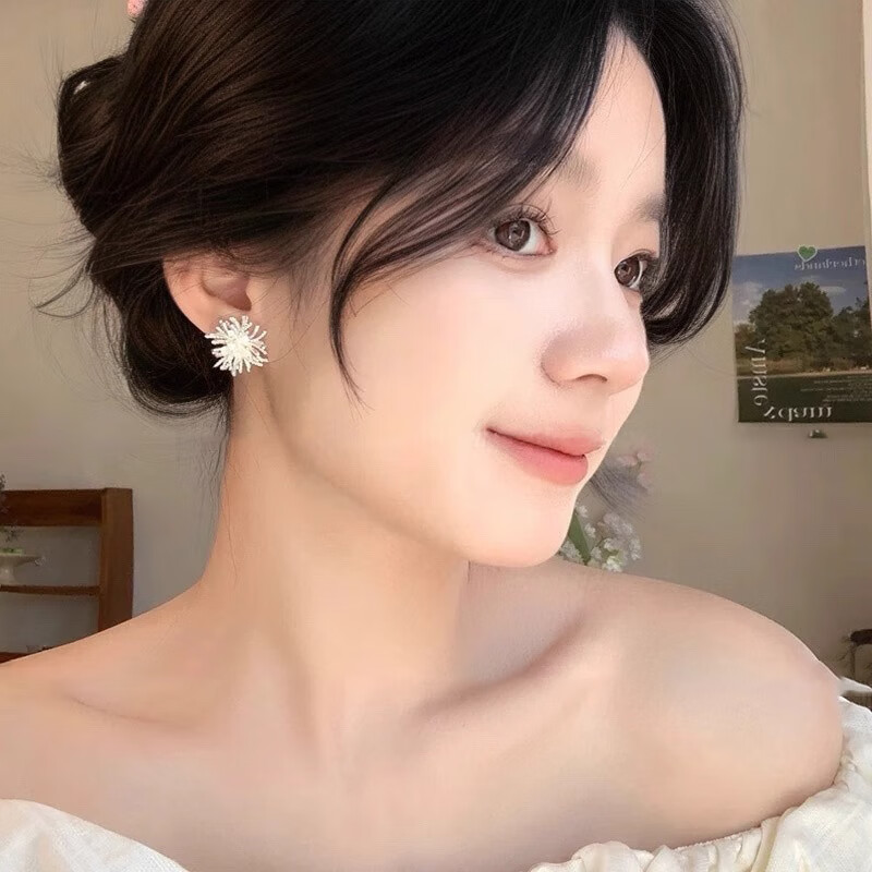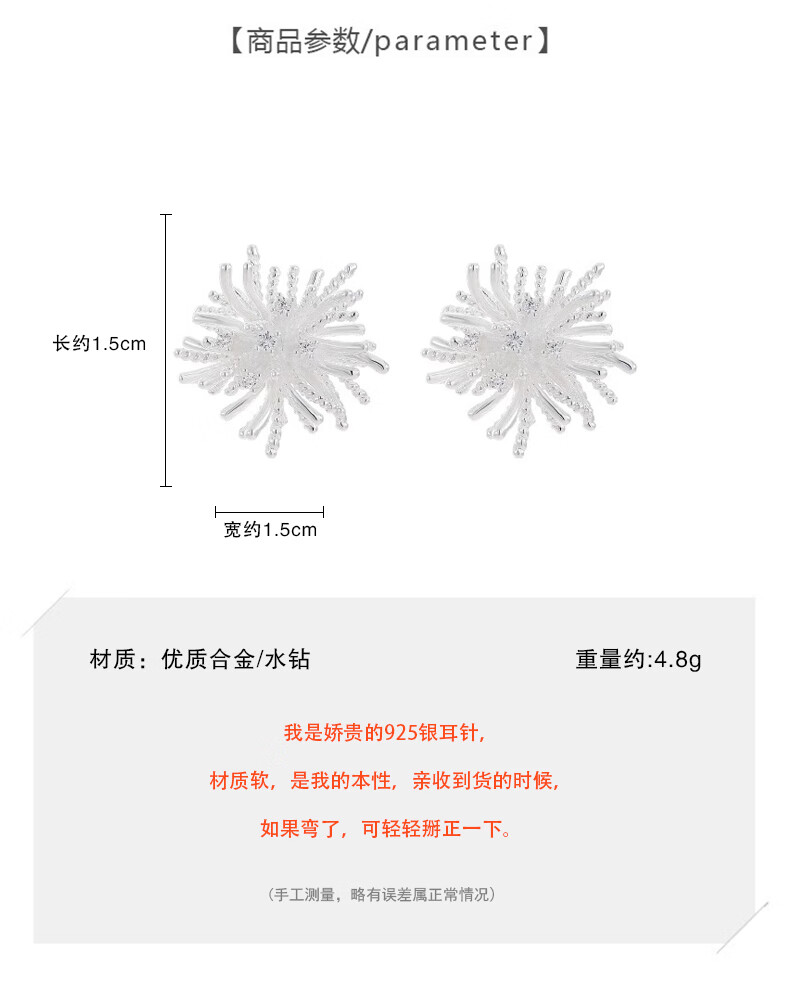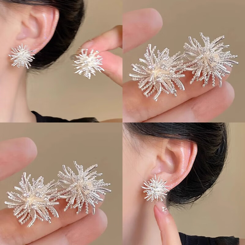 Dandelion Zircon Fireworks Earrings Niche High-end Exquisite Temperament Personalized Earrings 2025 New Ear Jewelry Dandelion Zircon Fireworks Earrings 1.5CM