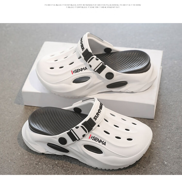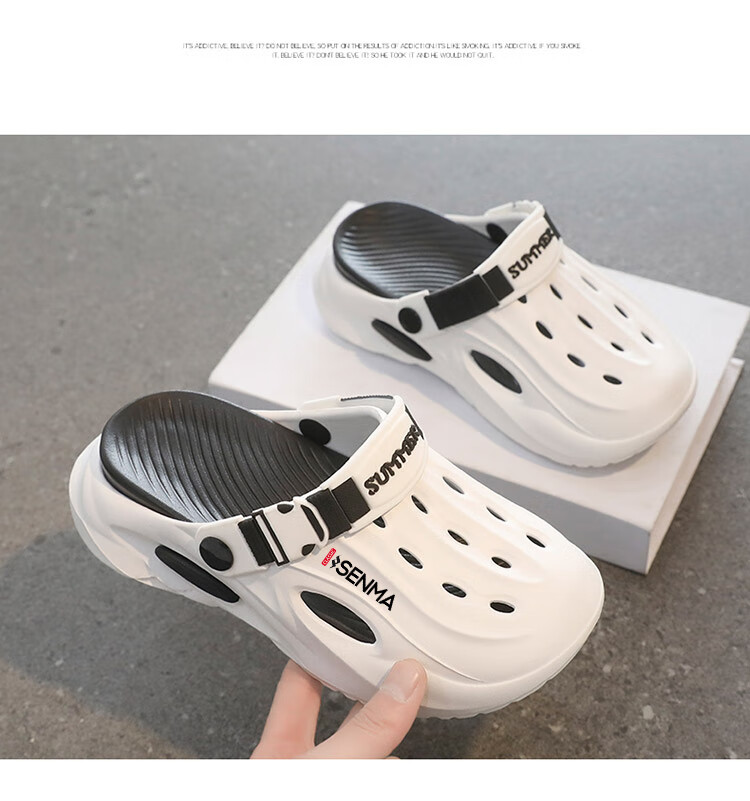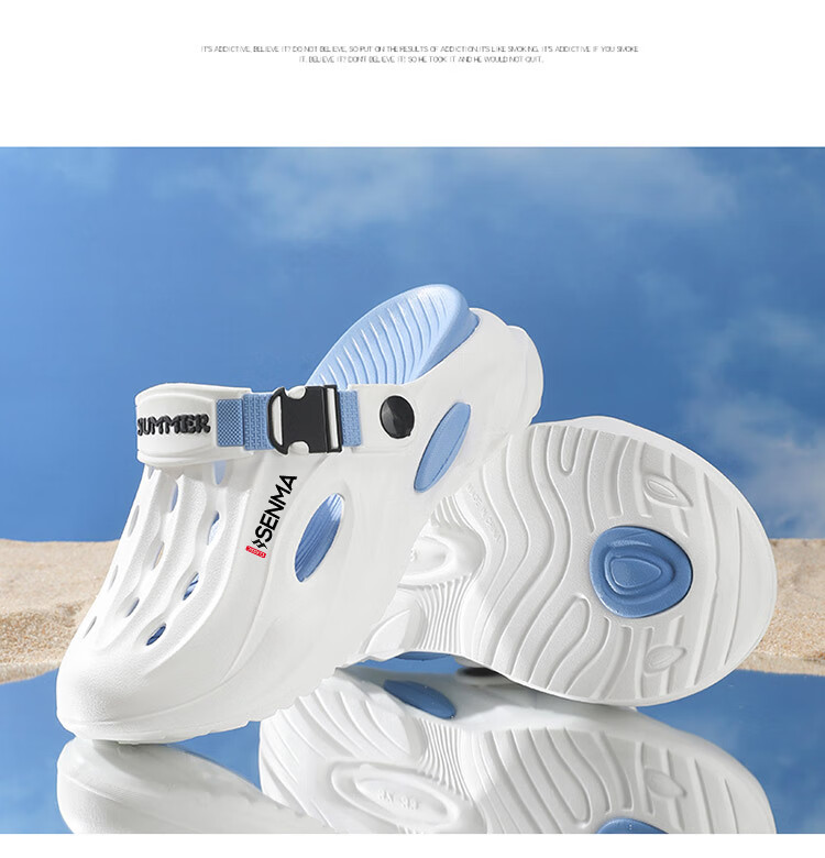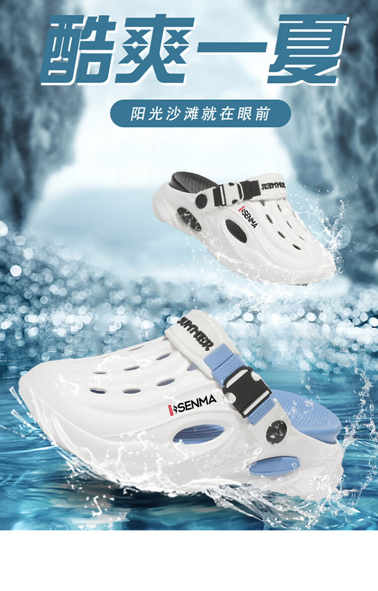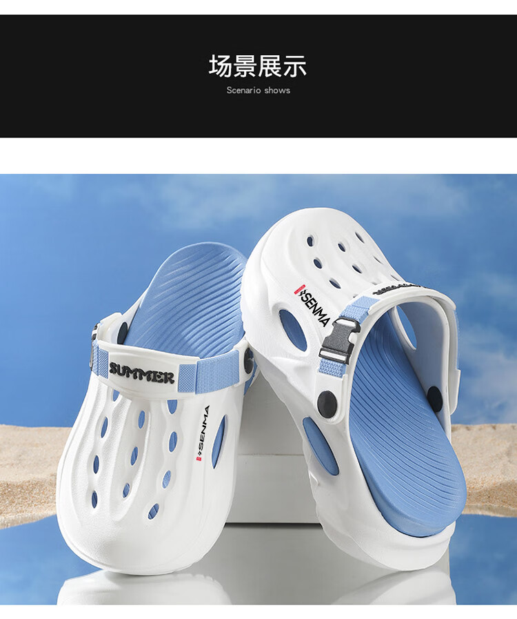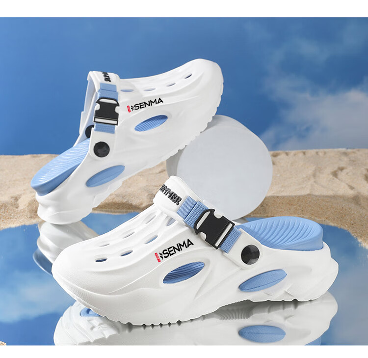 Semir children's slippers summer new outdoor parent-child leisure Baotou hole shoes soft sole non-slip beach sandals white blue flagship model 36 36-37 same size