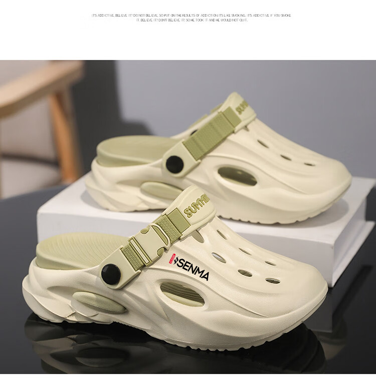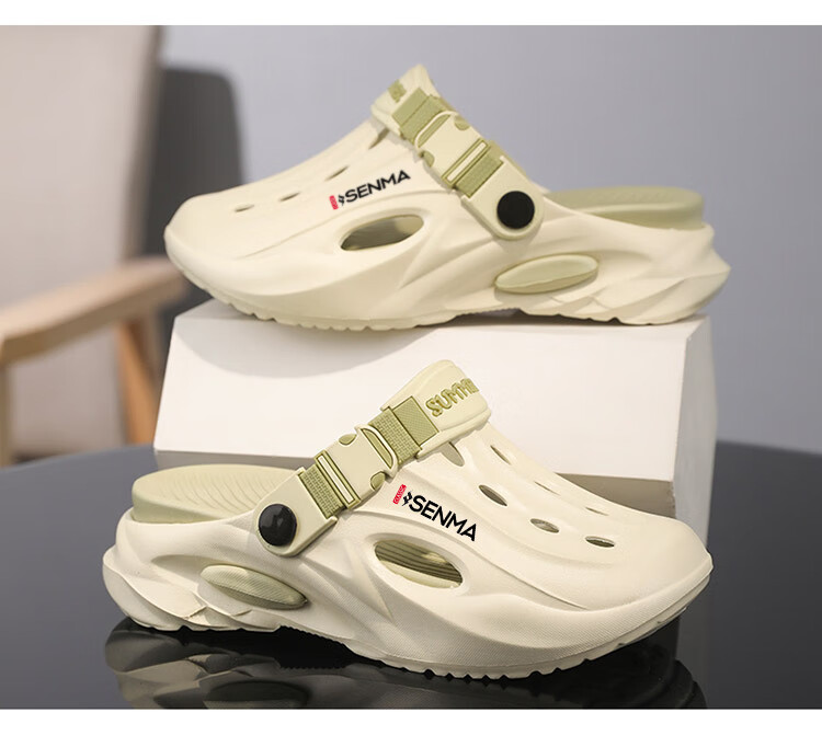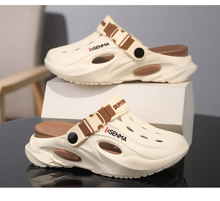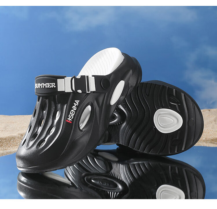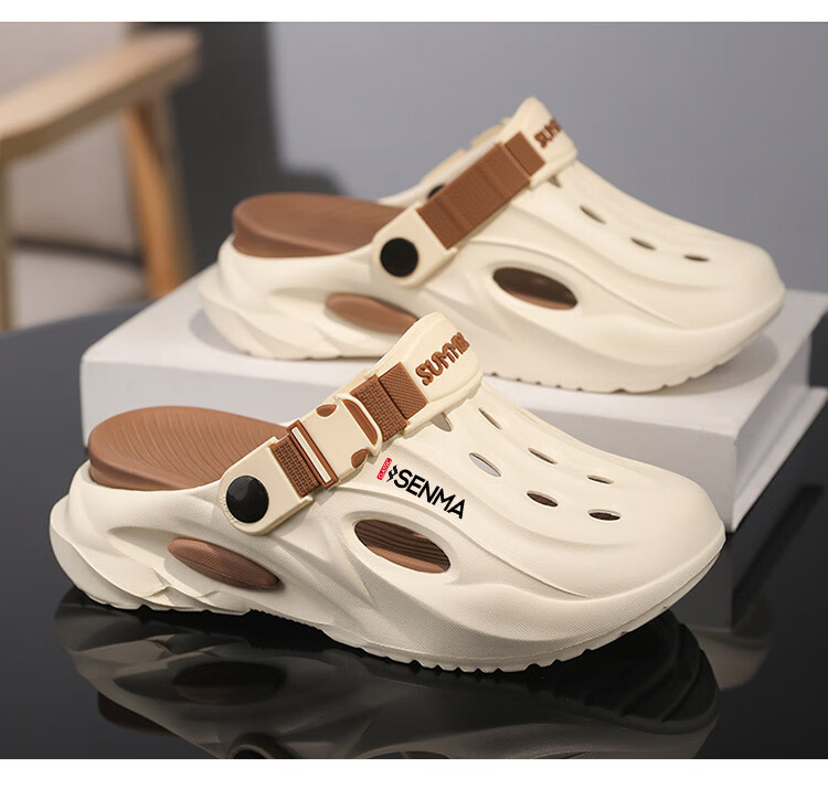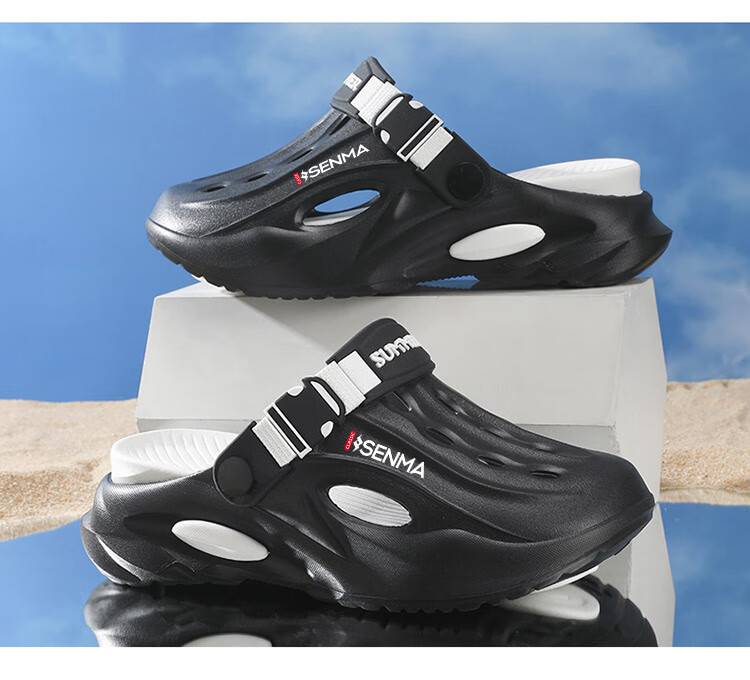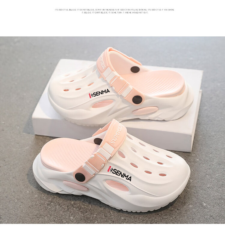 Semir children's slippers summer new outdoor parent-child leisure Baotou hole shoes soft sole non-slip beach sandals white blue flagship model 36 36-37 same size
