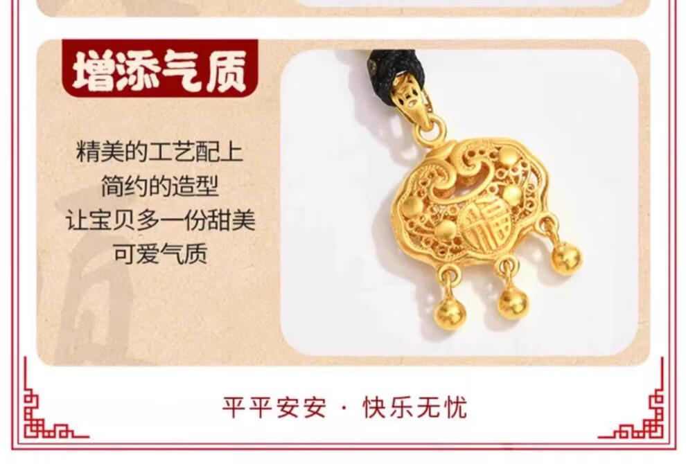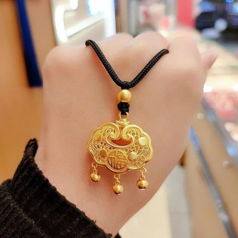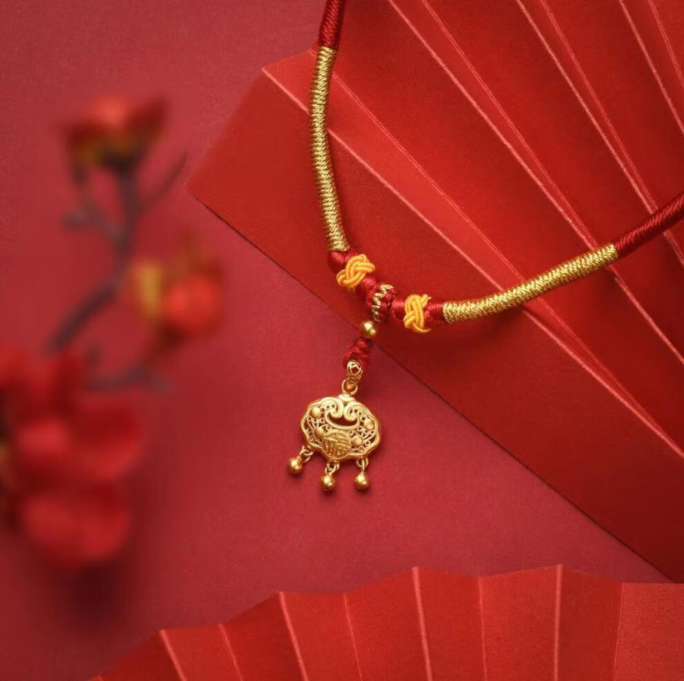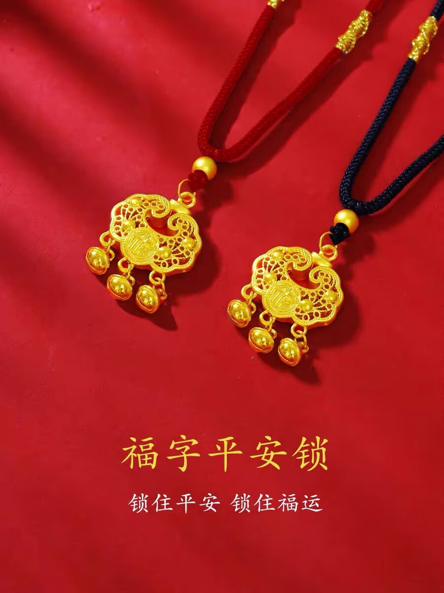 DL 1998 Fat Donglai same style 18K gold safe lock pendant old shop gold safe small gold lock gold 999 necklace long life lock free small gold lock + red rope + counter gift box / certificate 1.05g