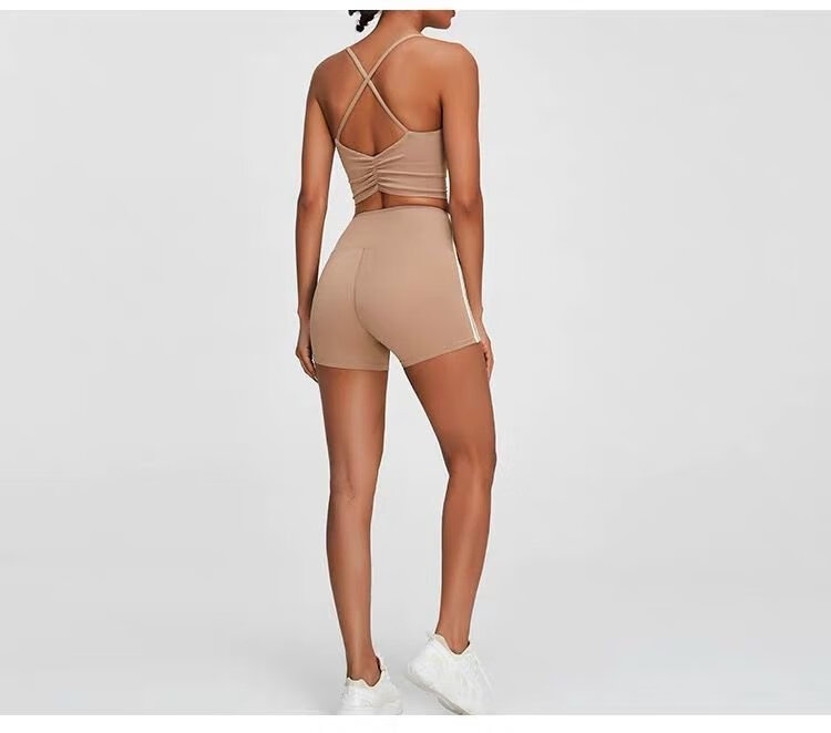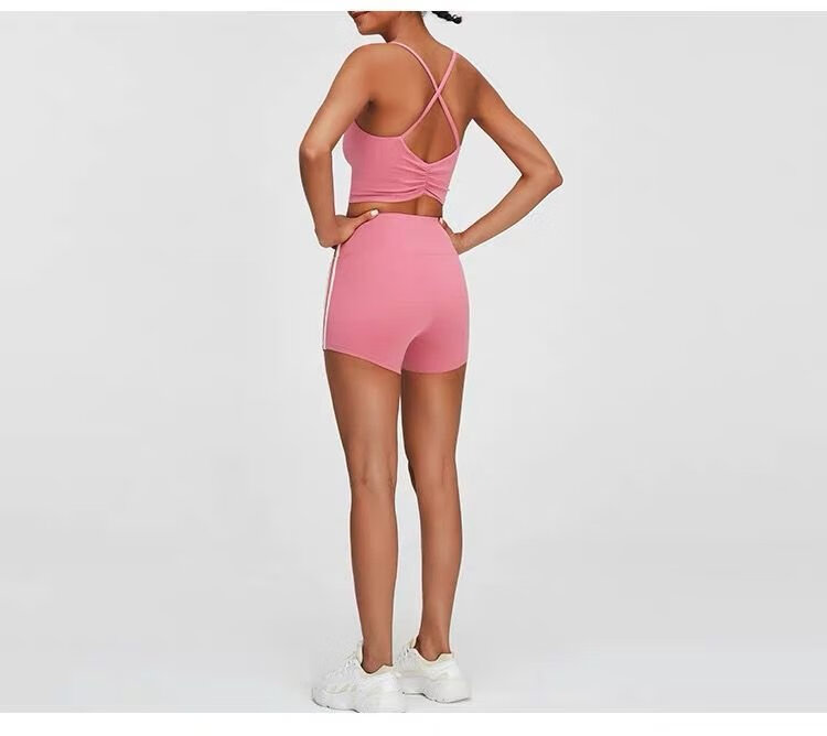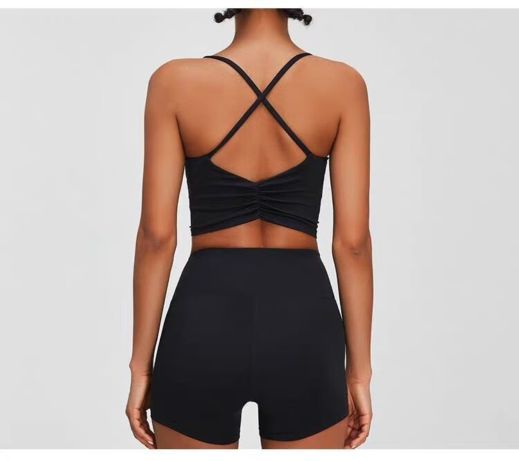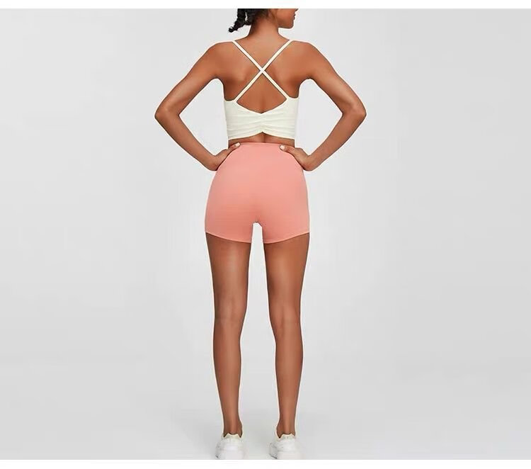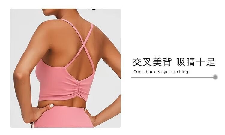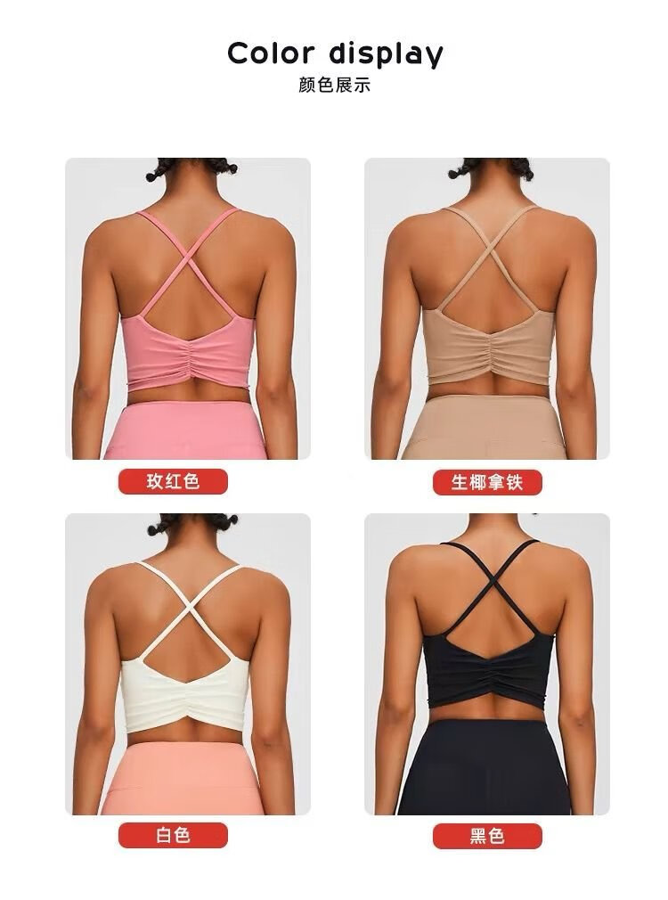 Yoga Pilates sports bra push-up yoga vest style with chest pad fitness suspender top women's bra off-white M
