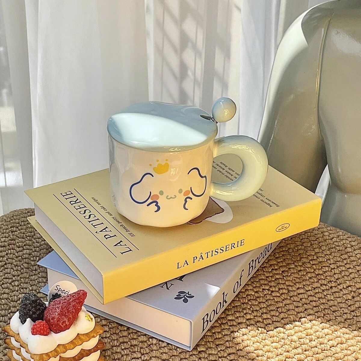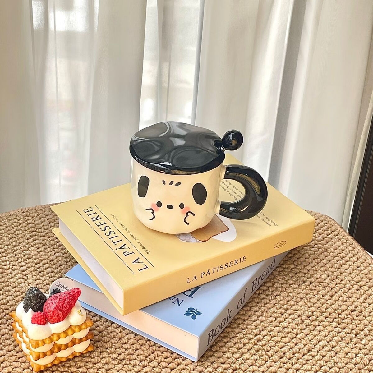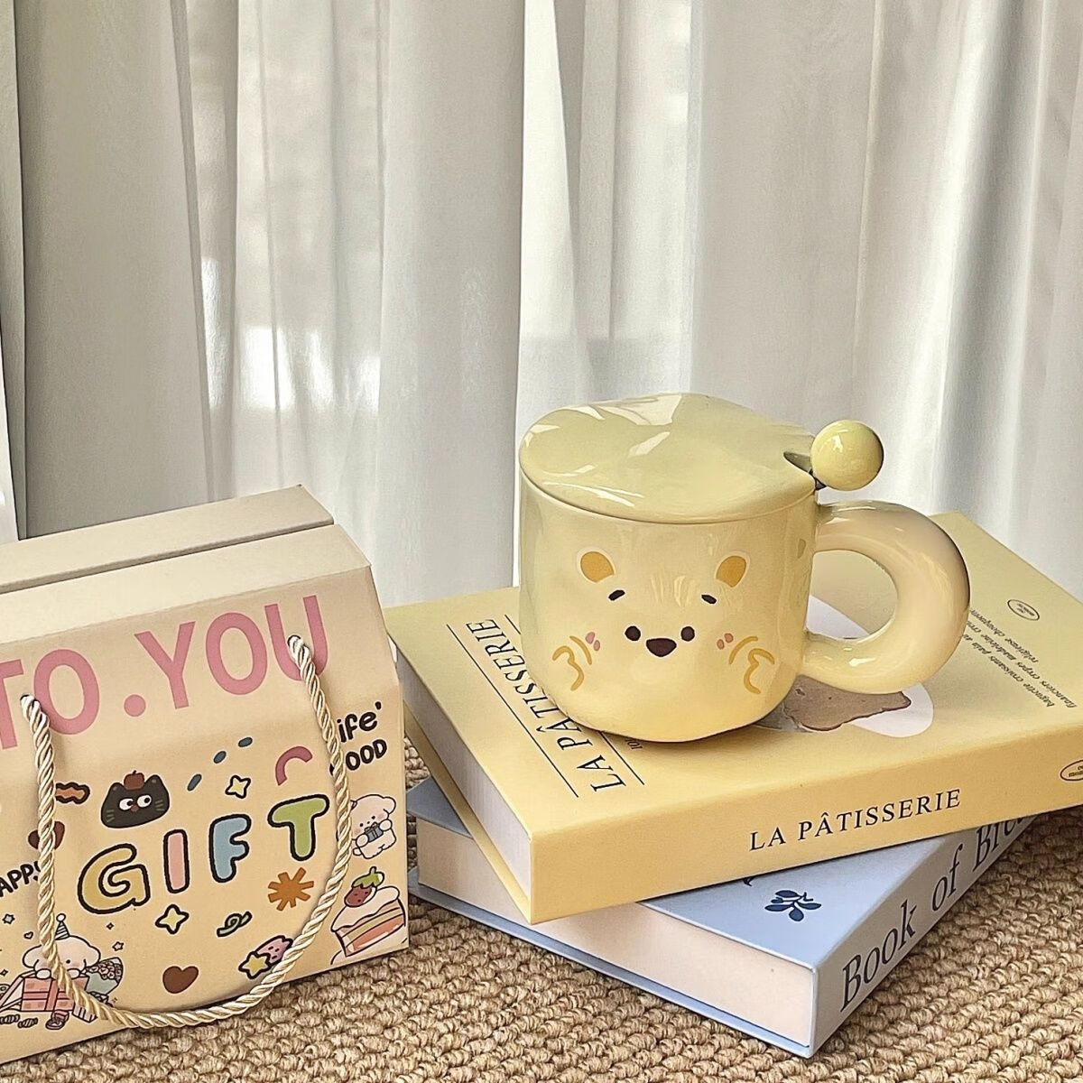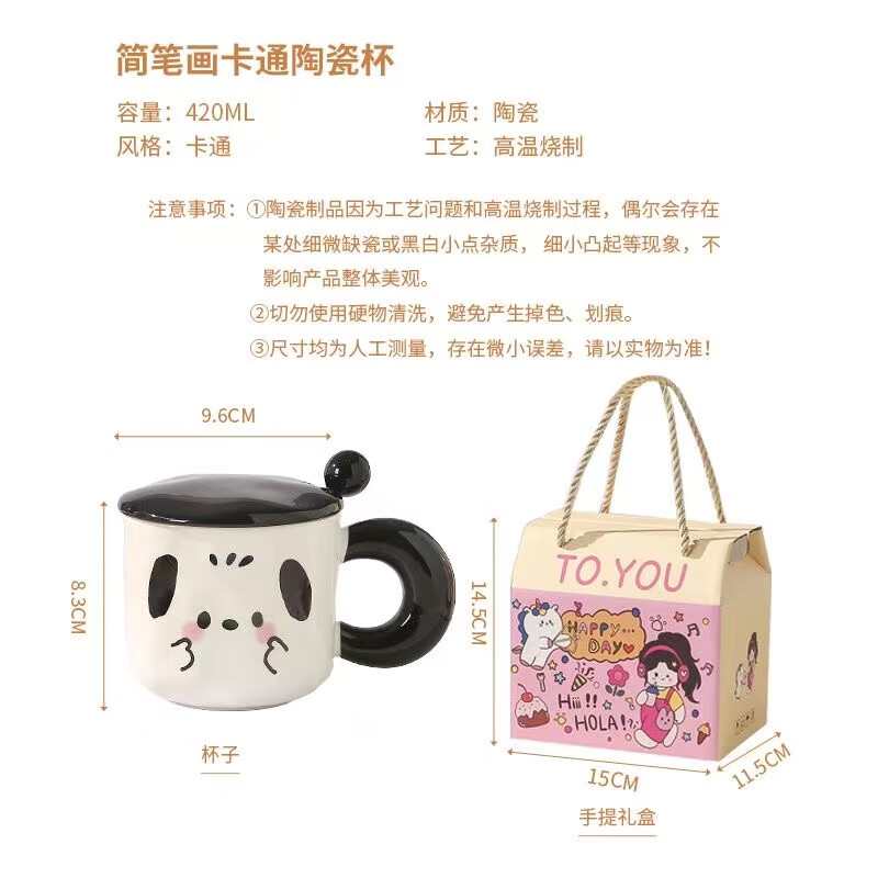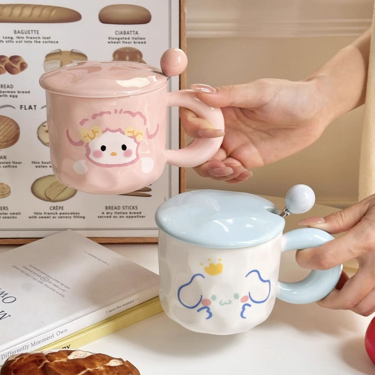 Ceramic mug with lid and spoon, good-looking cup as souvenir for women, household water cup, cute couple coffee breakfast cup, pink cute kitten, cup + lid + spoon