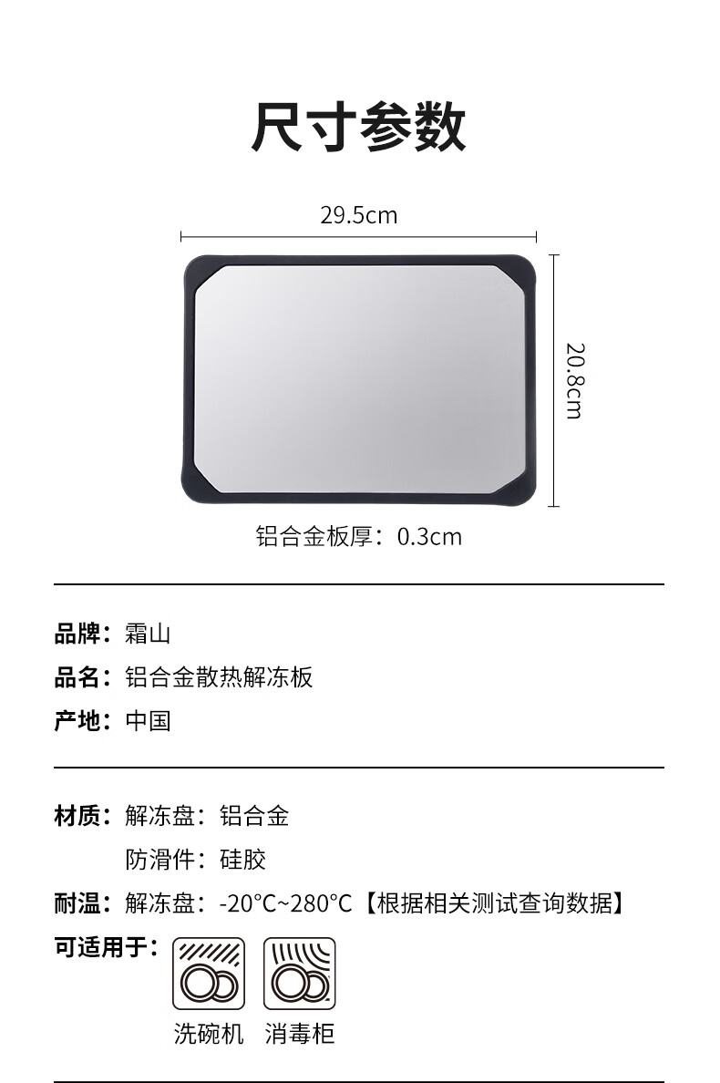 Shuangshan Aluminum Alloy Thawing Plate Steak Seafood Kitchen Thawing Ice Artifact Household Fast Cooling Plate Thermal Disk Fast Heat Dissipation - Length 29.5* Width 20.8* Thickness 0.3cm