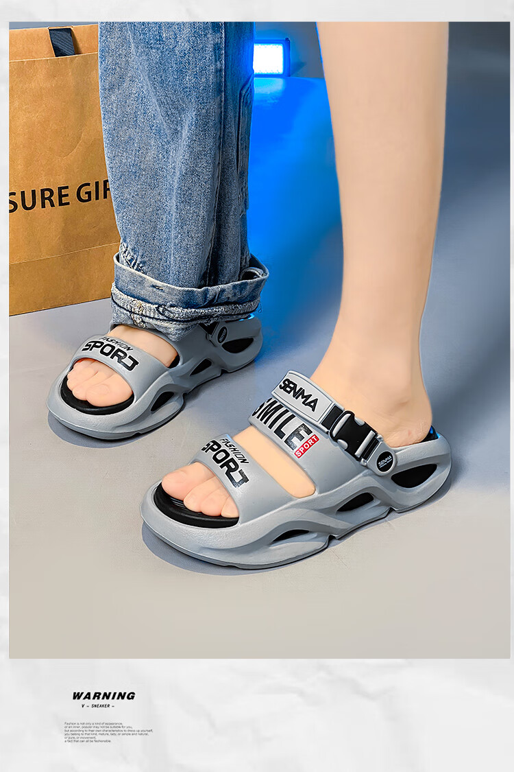Semir children's slippers, men's summer parent-child outer wear, casual beach sandals, soft soles, non-slip sports slippers, volcanic ash, 39, 38-39, same size