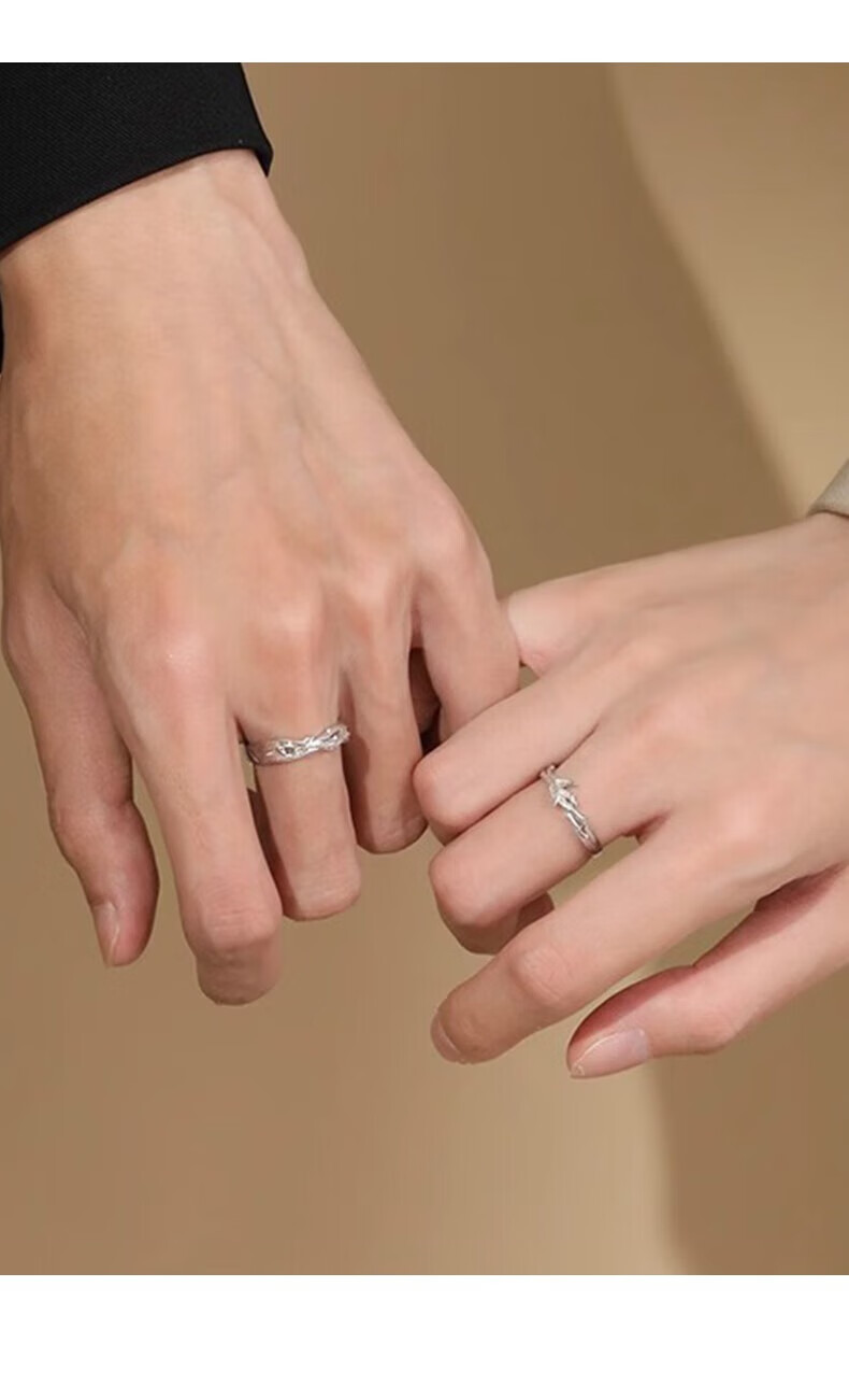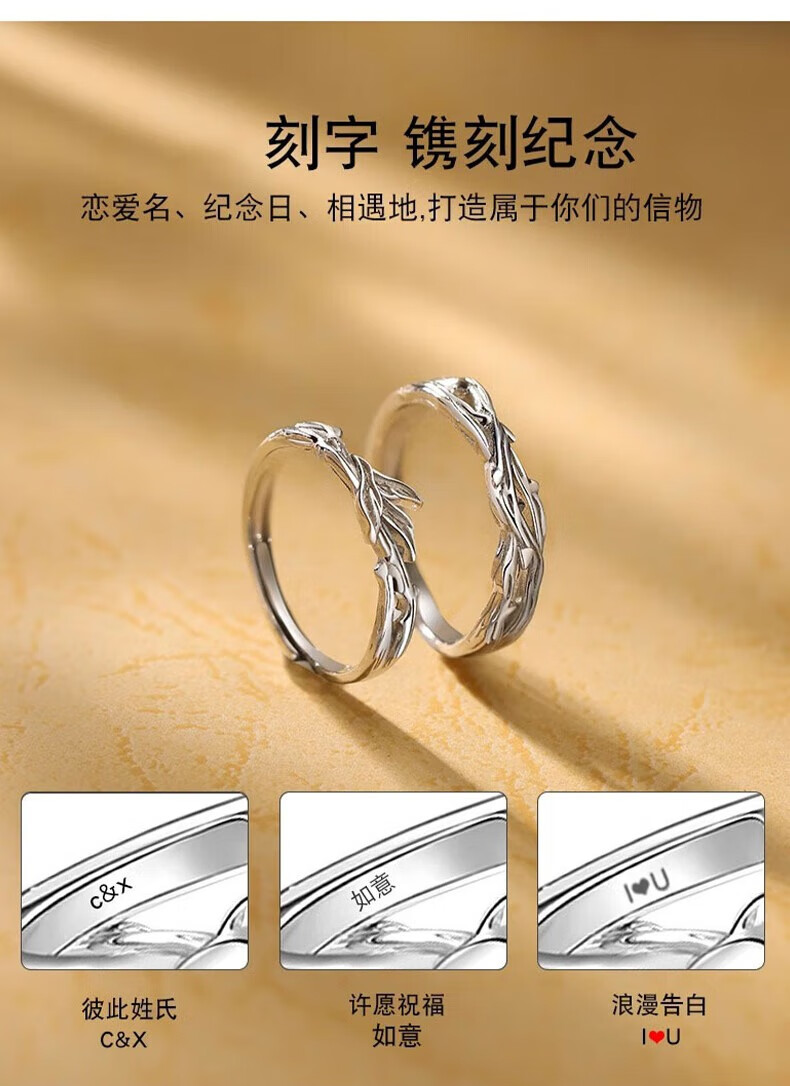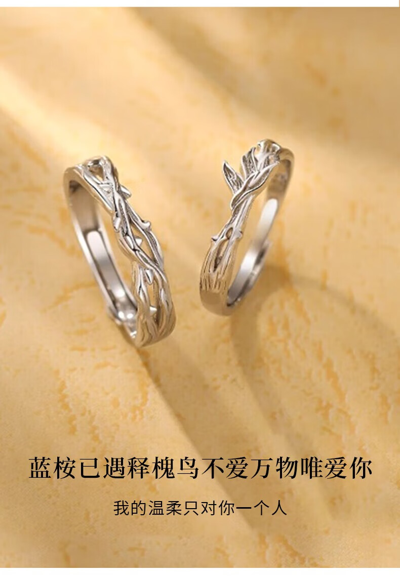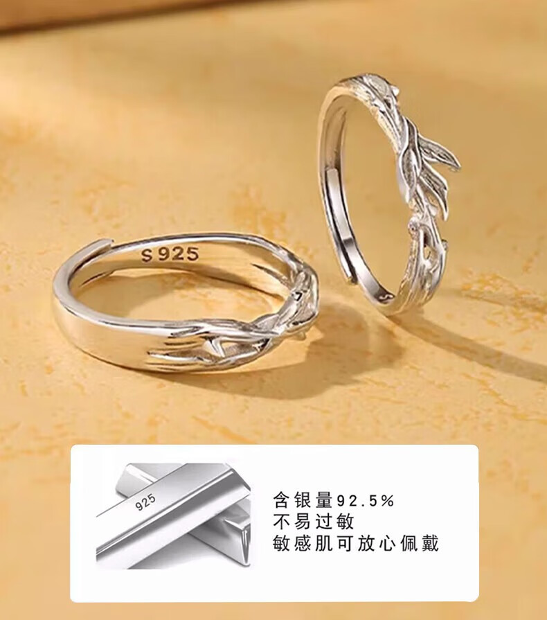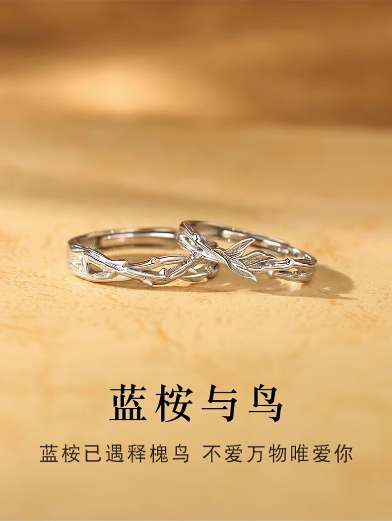 China Gold S925 Silver Eucalyptus globulus has met the Locust Bird Couple Ring Men and Women Rings Wedding Anniversary Gift for Girlfriend Classic Red Gift Box *Shipment from Bakura* Same time/Next Day Delivery Eucalyptus Globulus has met the Locust Bird Couple Ring - Couple Style