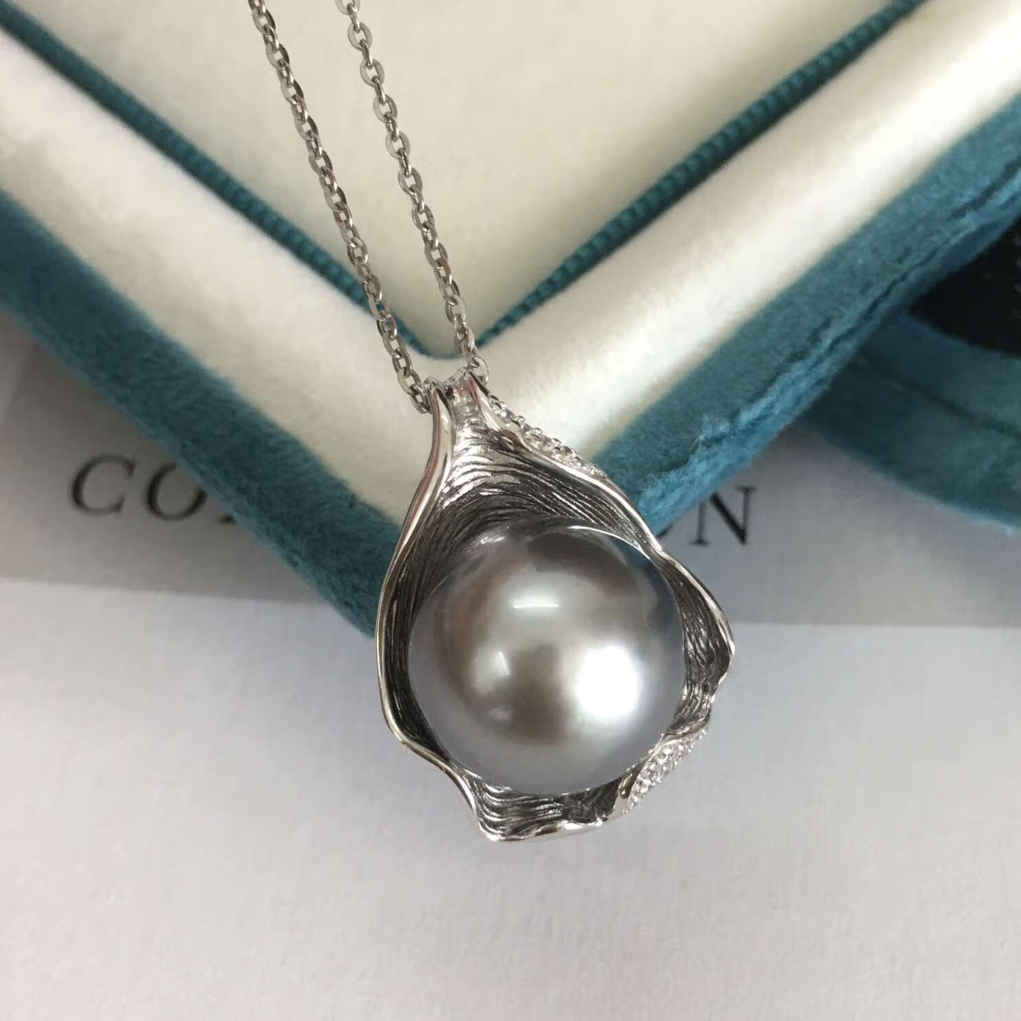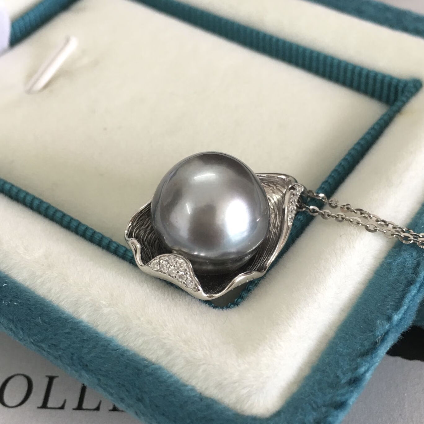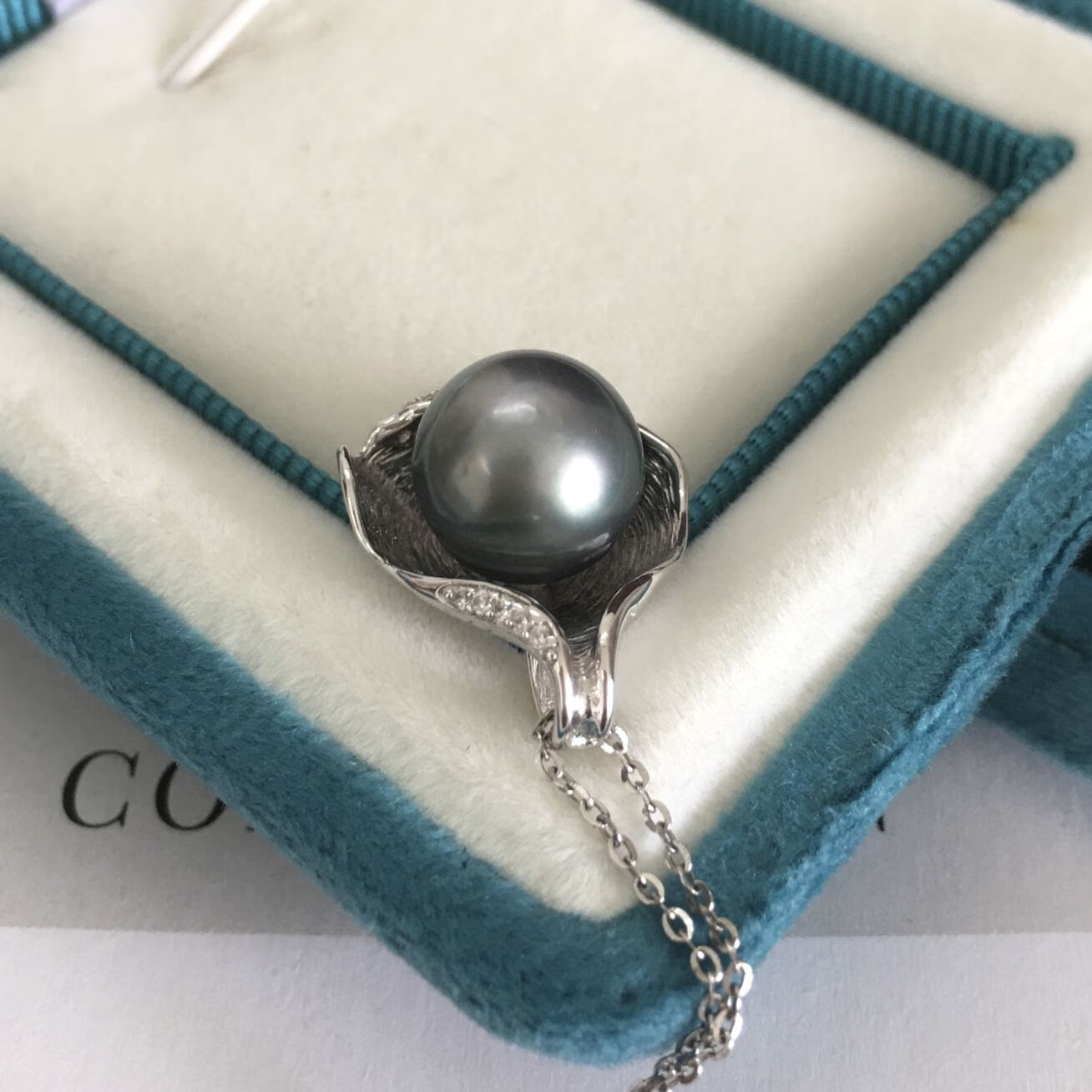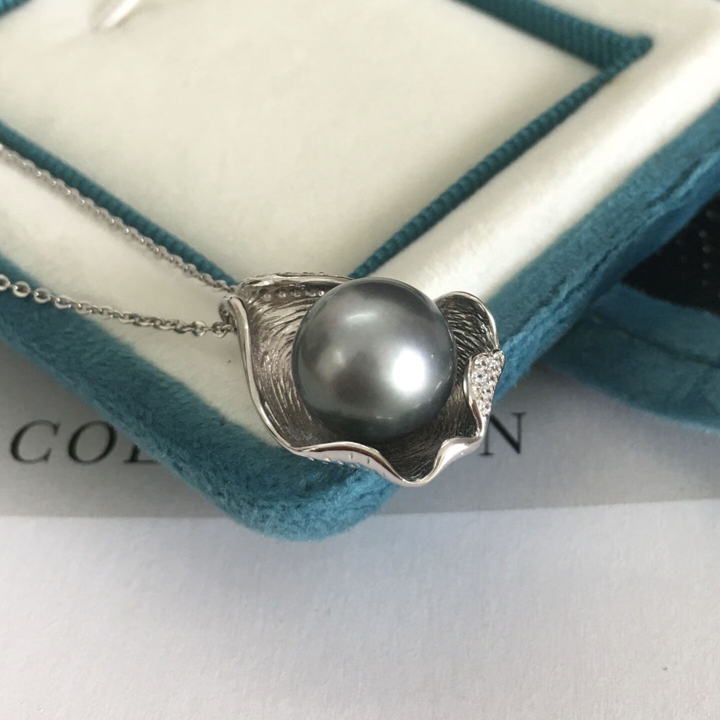Hao Chuang MIFEI/Shuoguo Platinum Gray Tahitian Black Pearl Pendant Strong Light Natural Color Seawater Pearl 925 Silver 11-12mm (One)