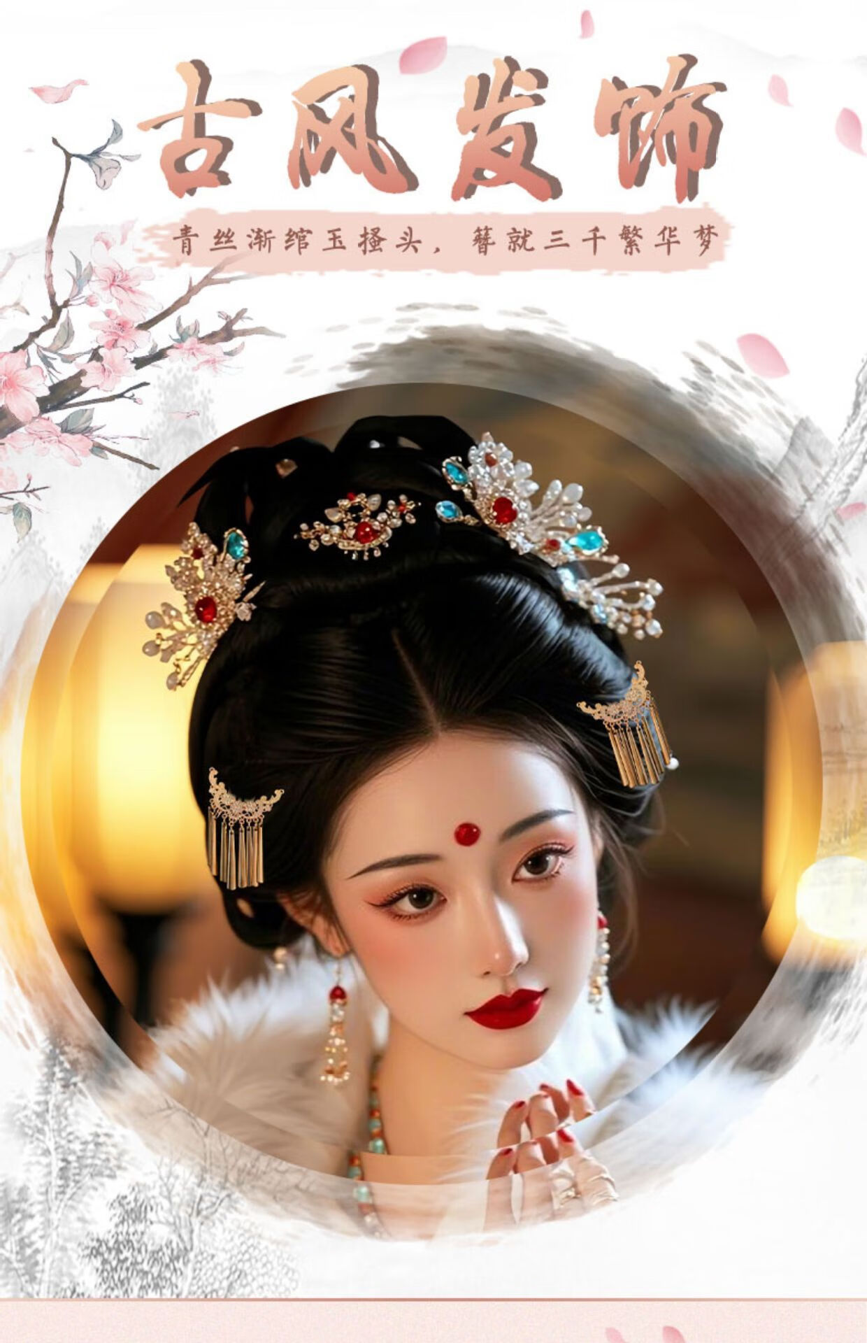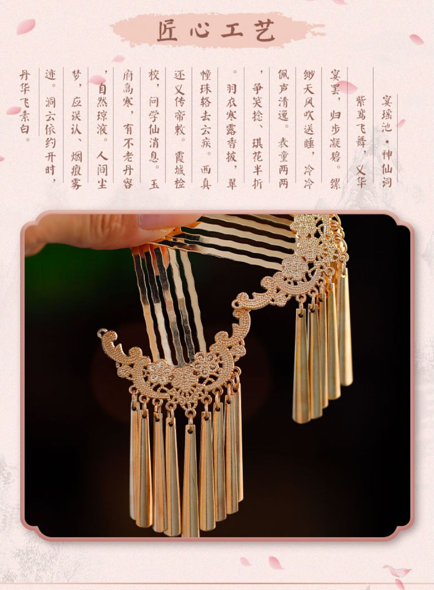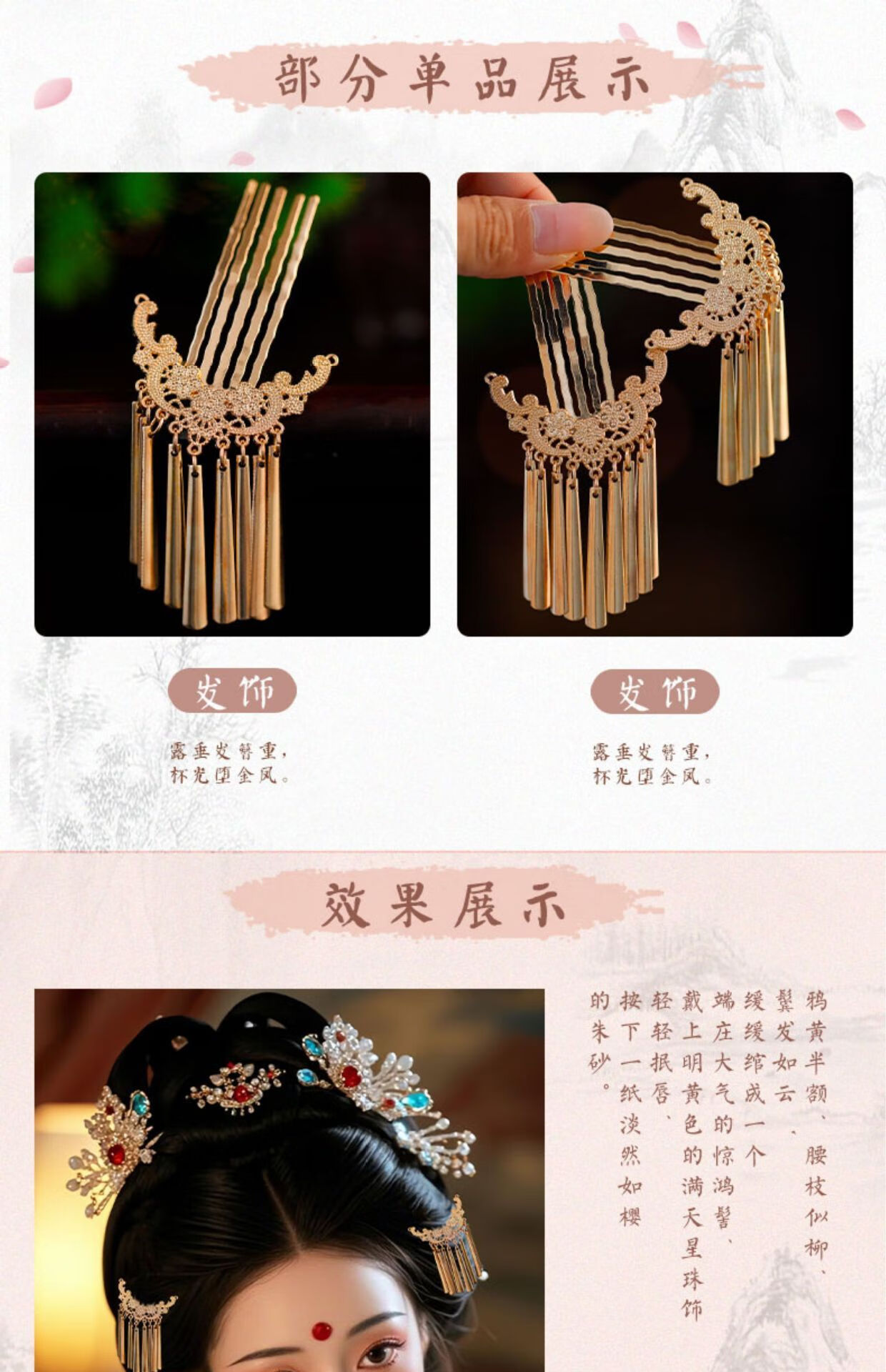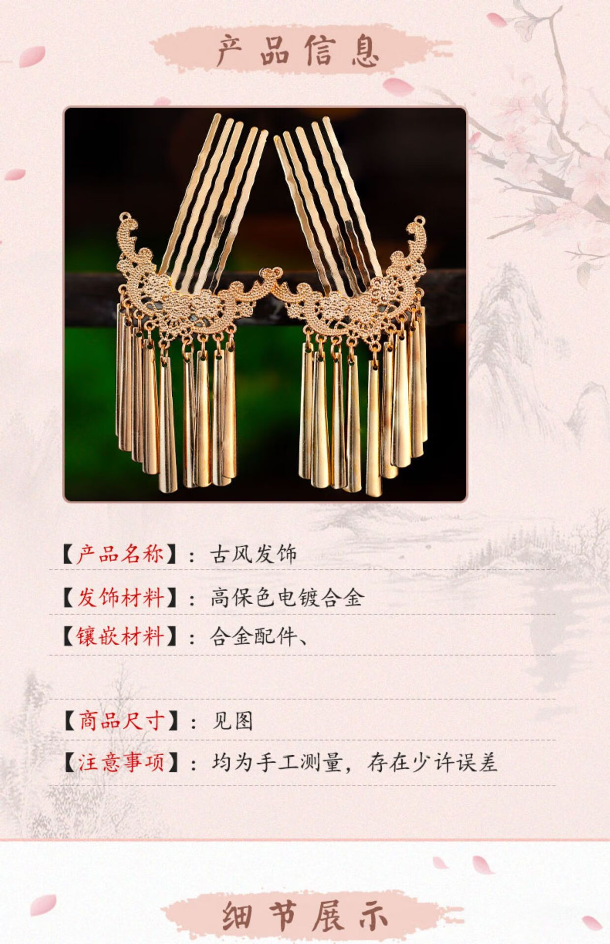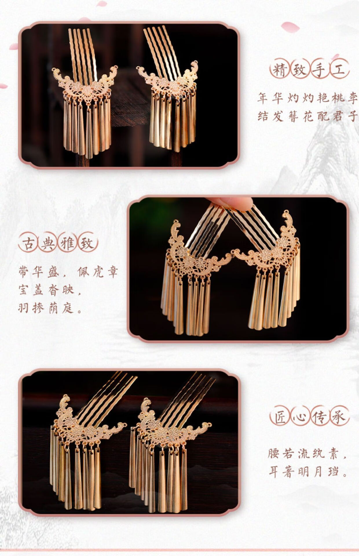 Yinmi (ENRMIIV) Tang style Hanfu rich carved patterns versatile hairpin hair comb comb ancient style shooting style temperament headdress accessories 1 pair Mengxi
