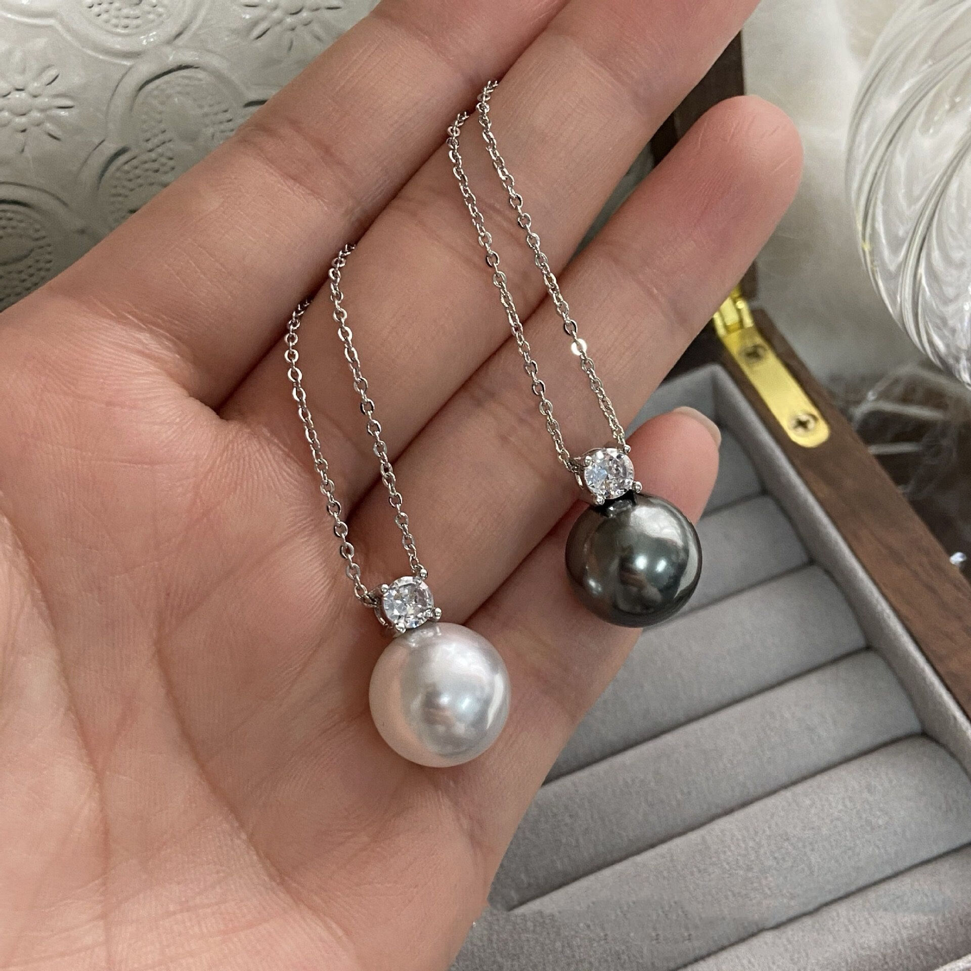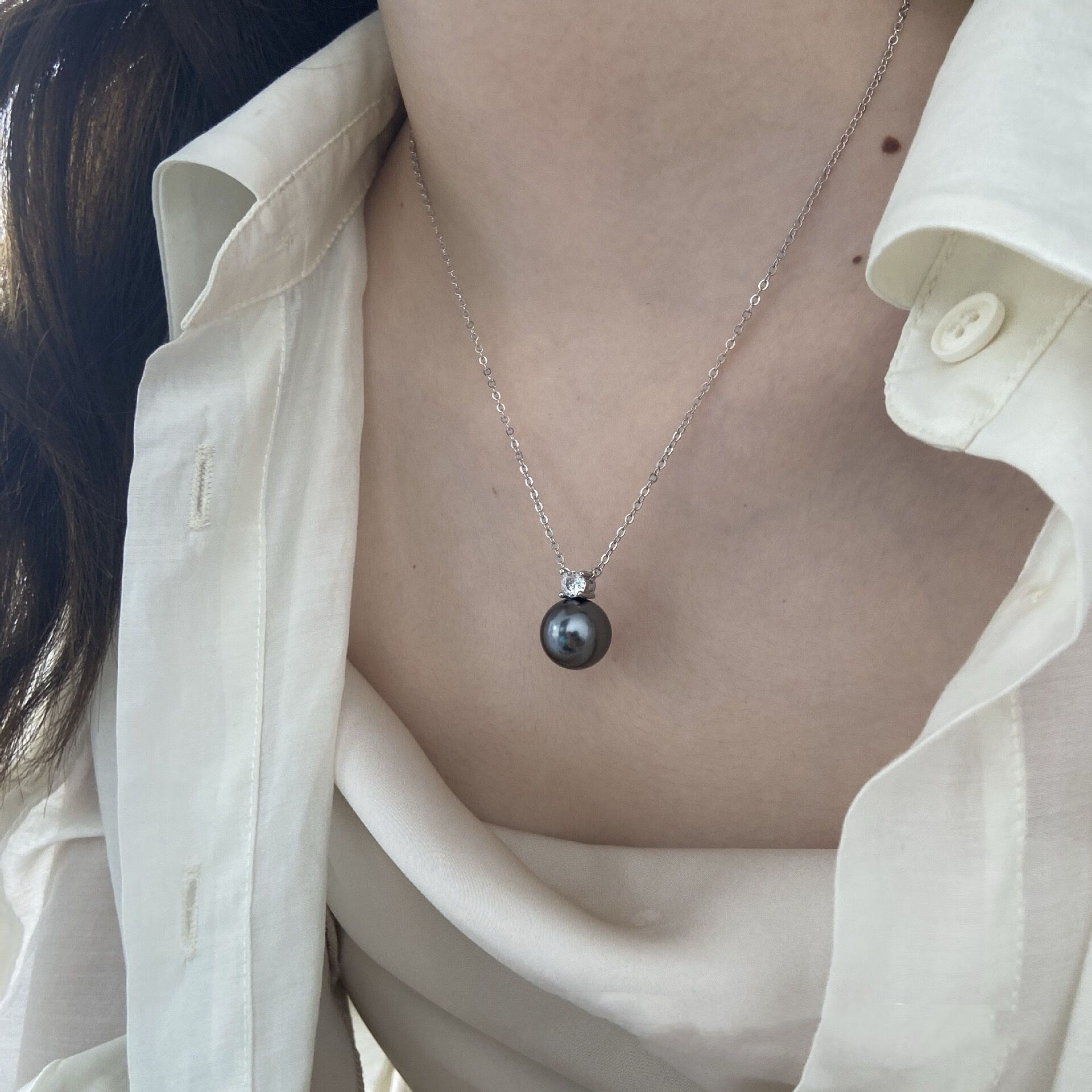 Hao Chuang single imitation ins Tahitian black pearl necklace women's French light luxury gray pearl pendant versatile commuter clavicle chain Australian white