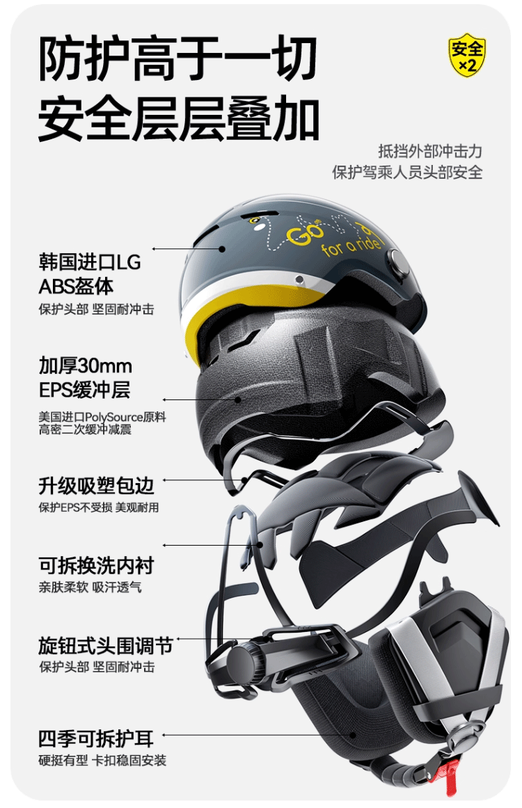 Two Little Bees 3C Certified Motorcycle Helmet for Men and Women Battery Electric Vehicle Half Helmet for All Seasons Winter Antifreeze Safety Hat Four Seasons Dark Blue Internal and External Double Mirrors Class A 3C