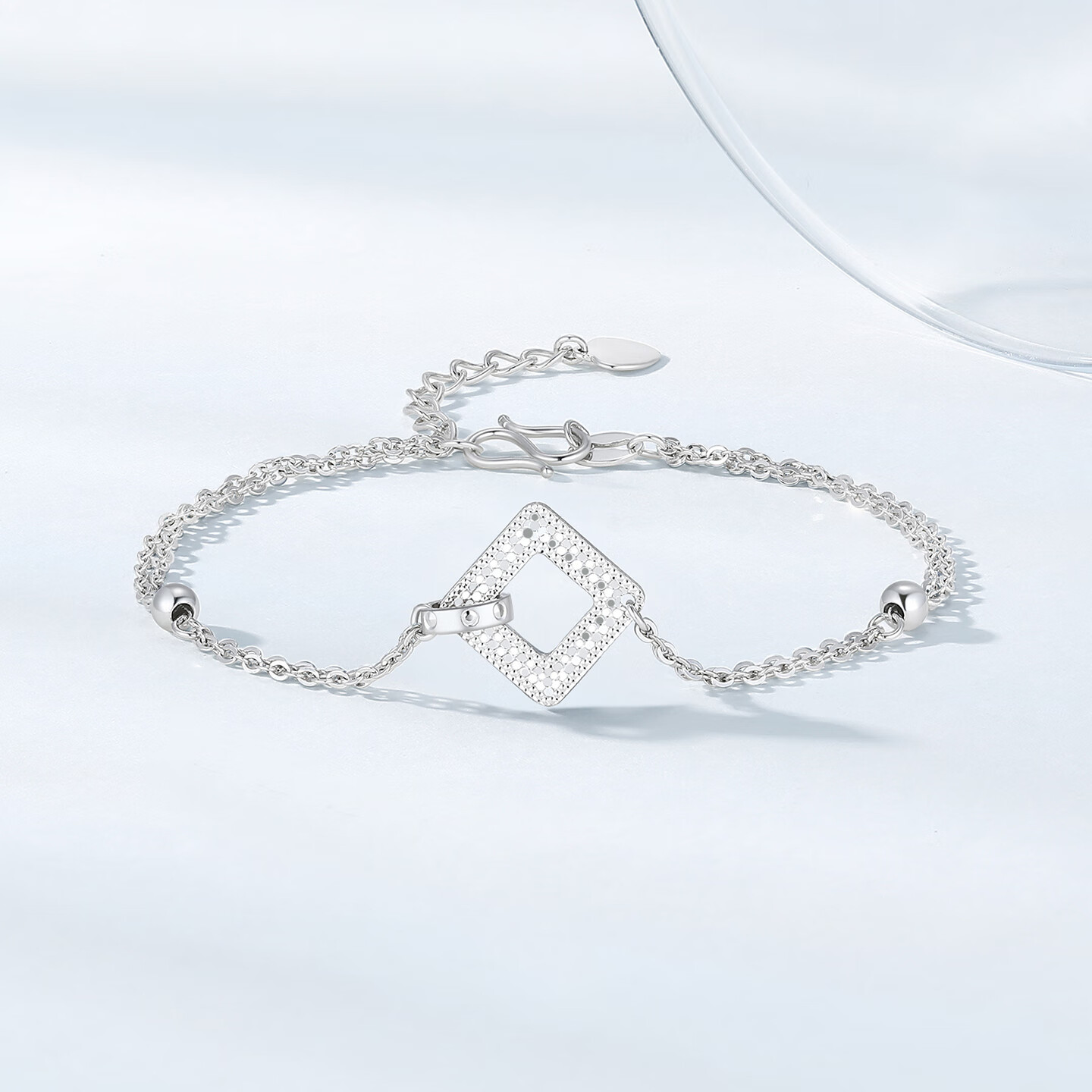 Chao Acer Interlocking Platinum Bracelet for Women PT950 Hand Jewelry Stacked Squares as a Gift for Girlfriend Priced at RMB 450, 4.3g, Chain Length Approximately 16cm + Tail Chain