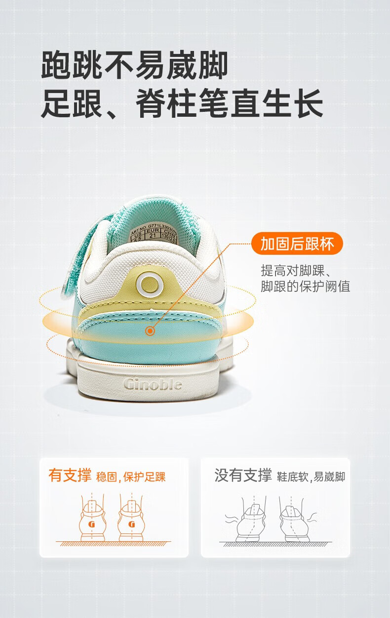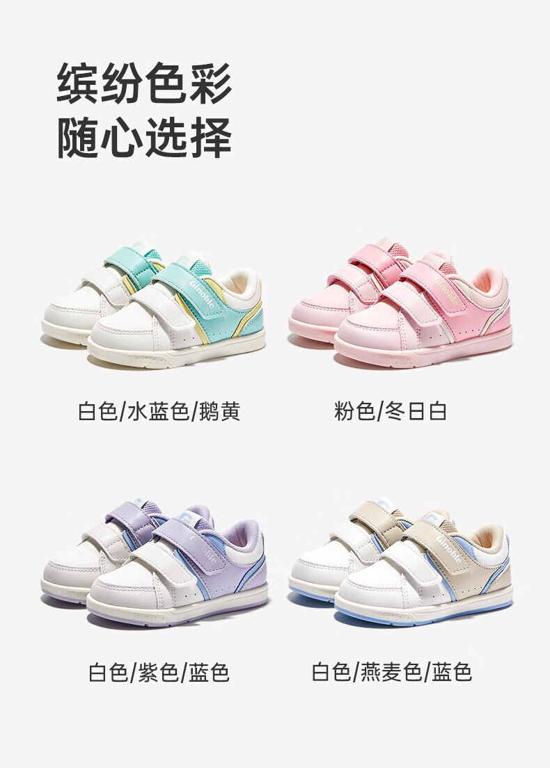 Jinopu toddler shoes spring and autumn soft sole 1-5 year old baby sneakers functional shoes Macaron series GW1287 pink/winter white 21 130mm suitable for foot length 130-135mm