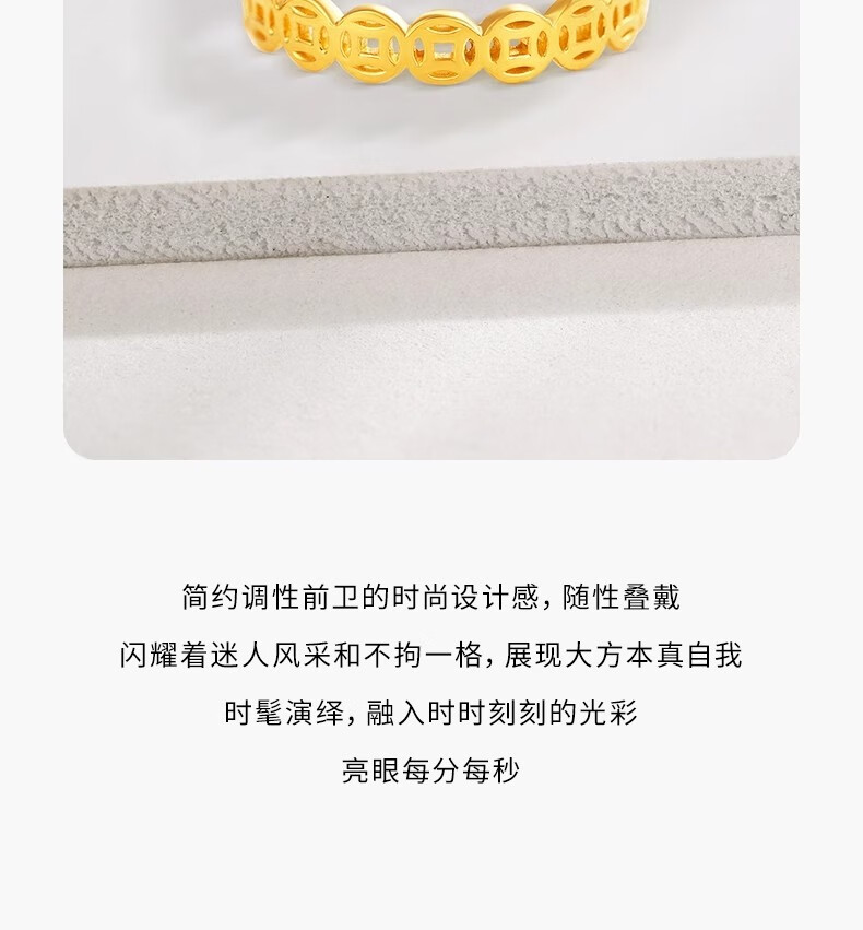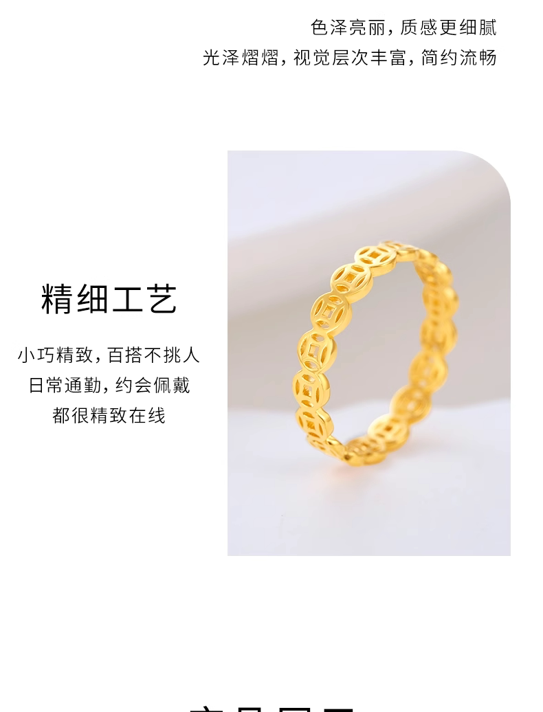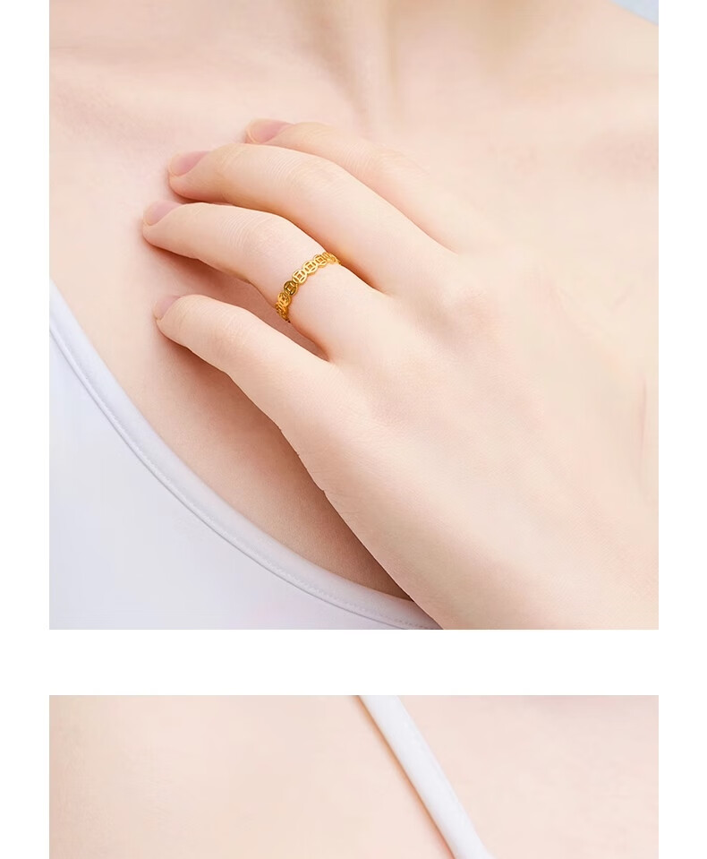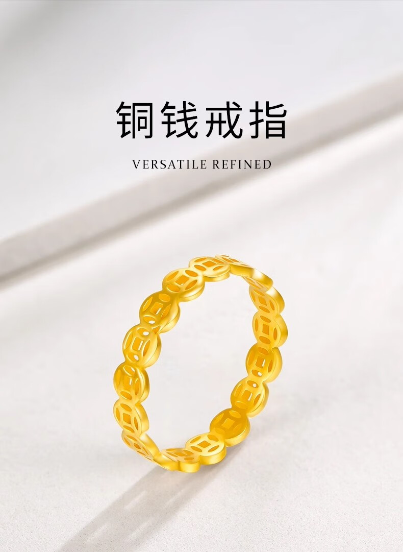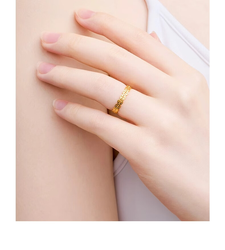 KUXA Shenzhen Shuibei Gold Lucky Copper Coin Ring 999 Pure Gold Ancient Method Ring for Men and Women Couples Gifts for Girlfriends Rose Gift Box Consult Online Customer Service to Place an Order No. 14