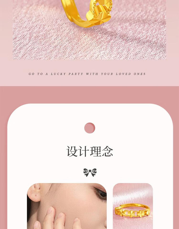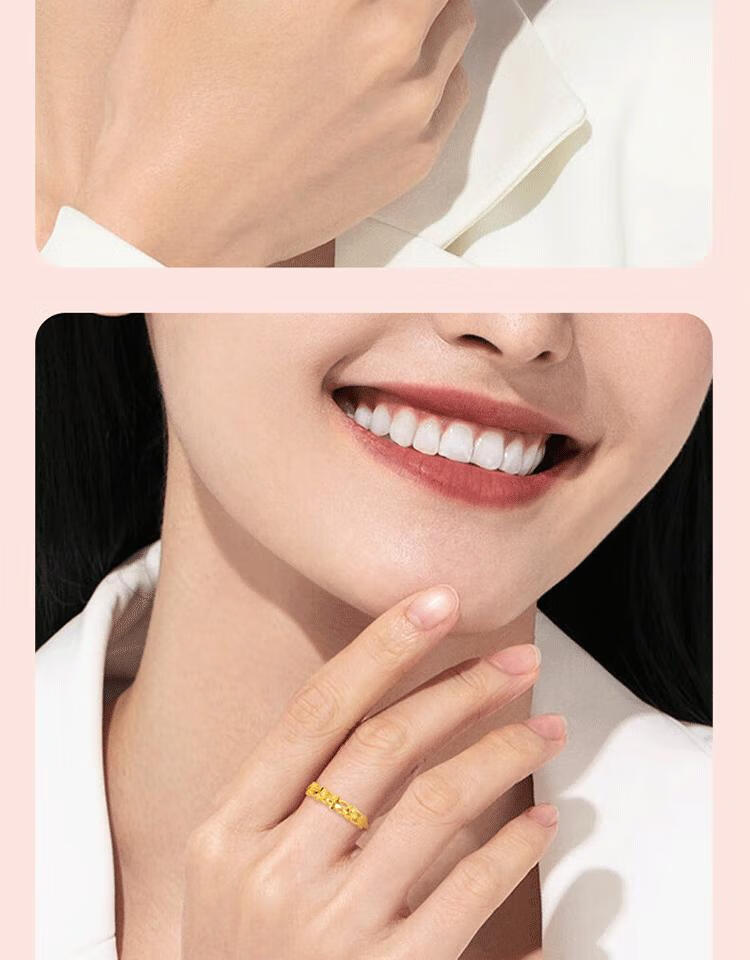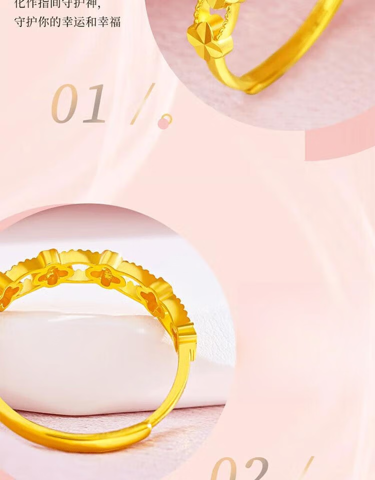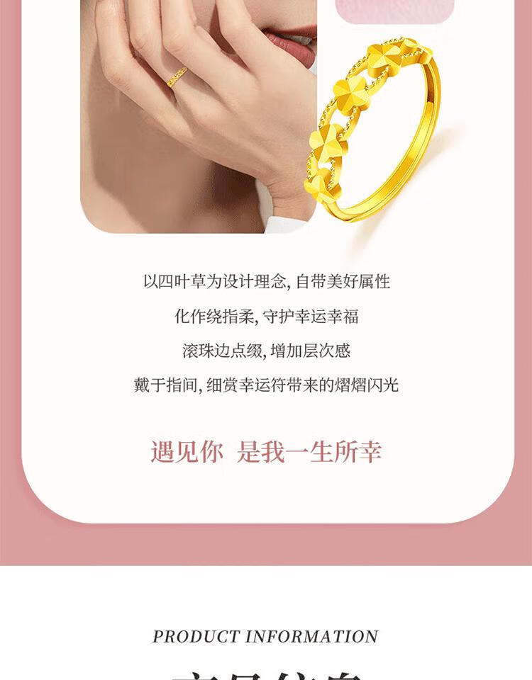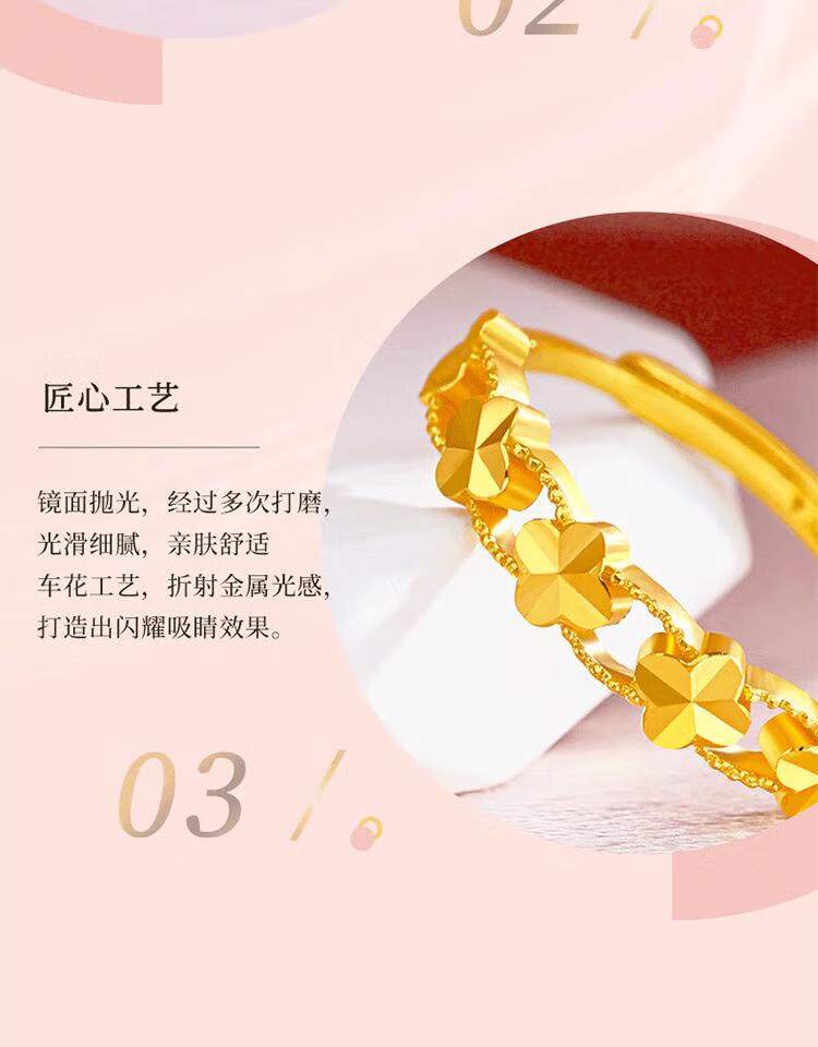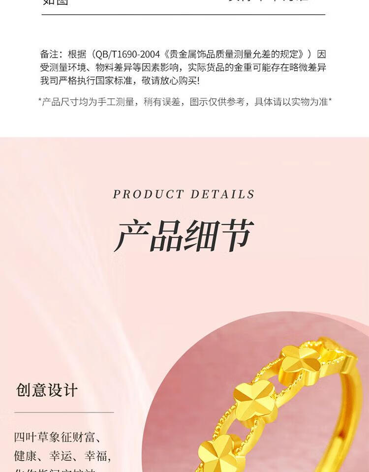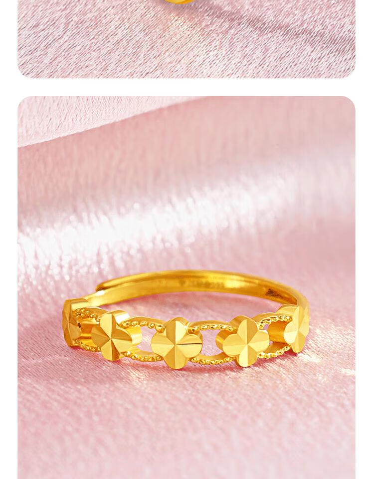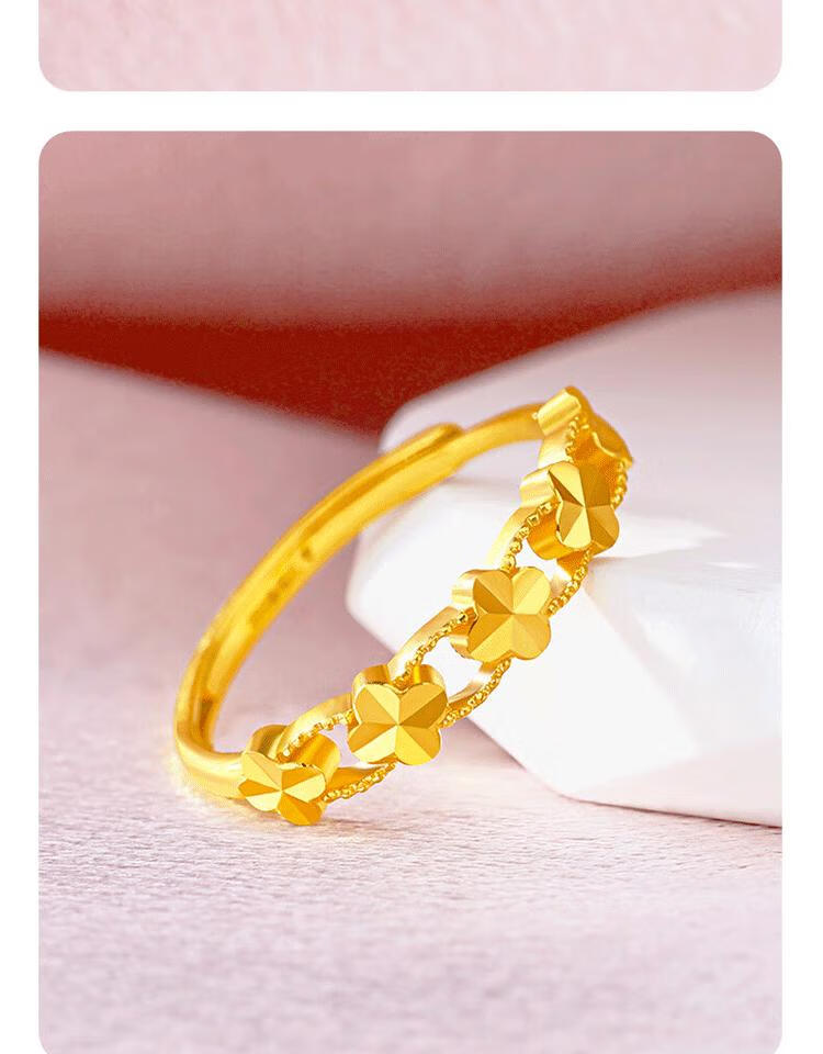 KUXA gold lucky four-leaf clover ring women's pure gold 999 plain ring ring with adjustable opening for girlfriend holiday gift four-leaf clover ring 0.6 g (opening adjustable)