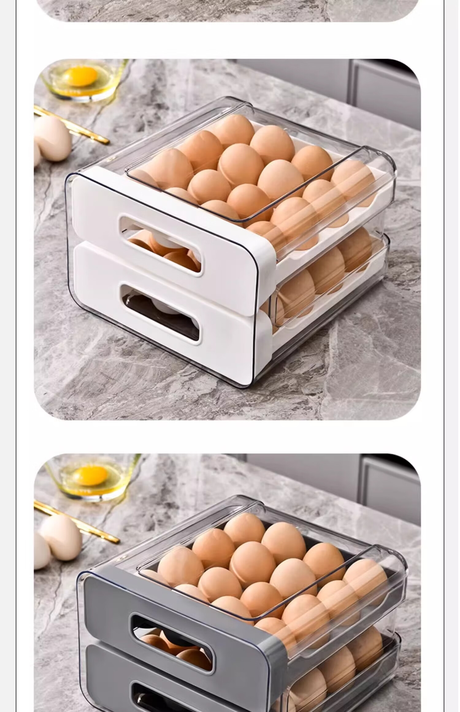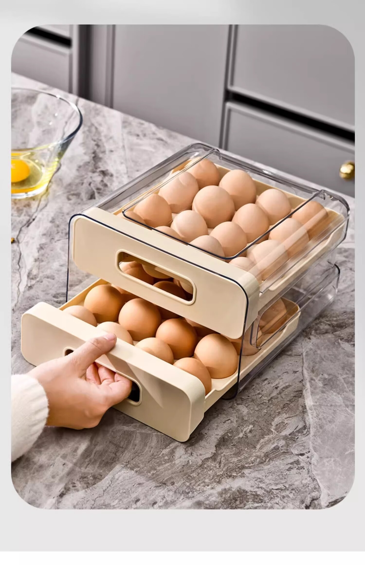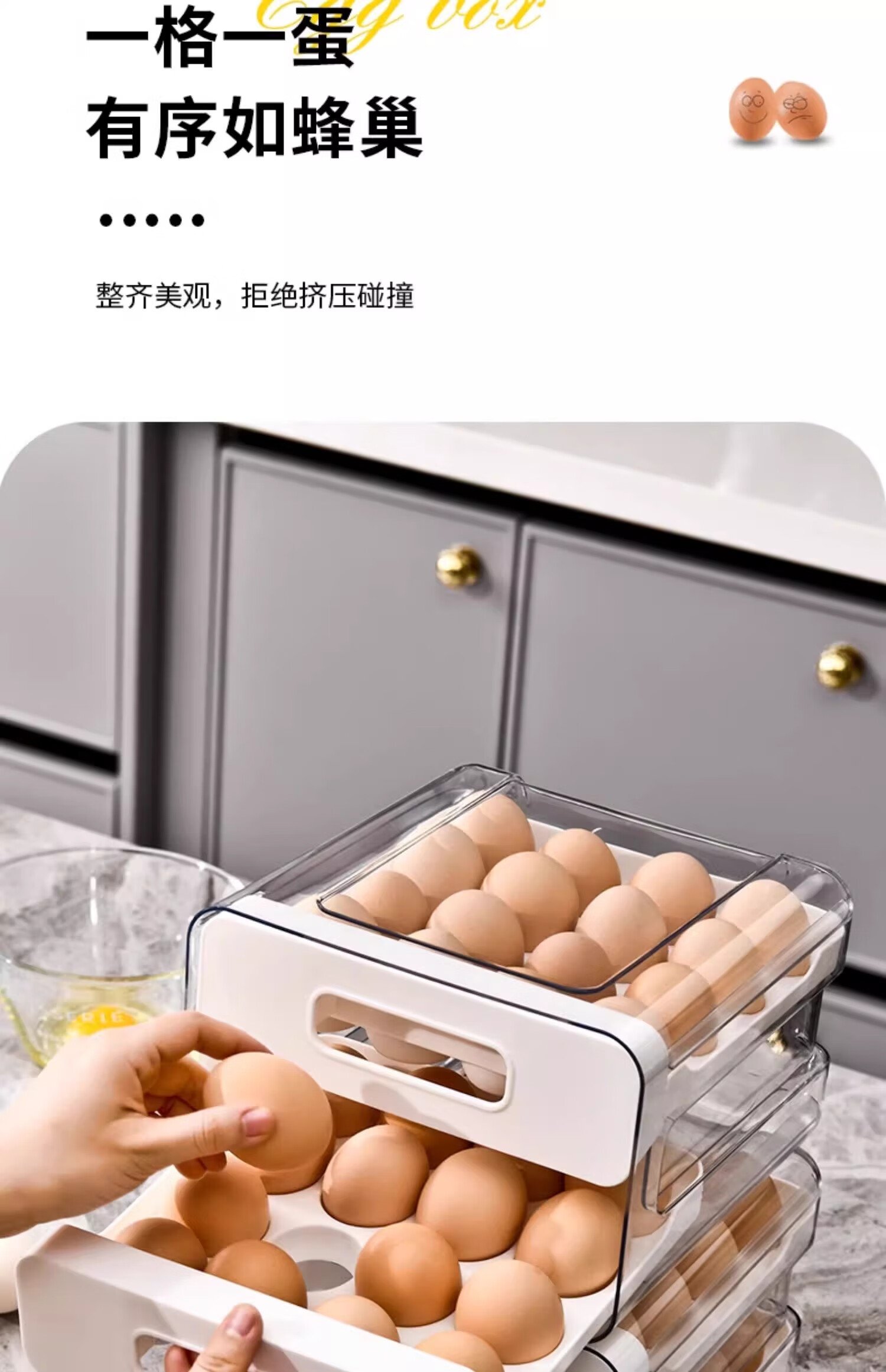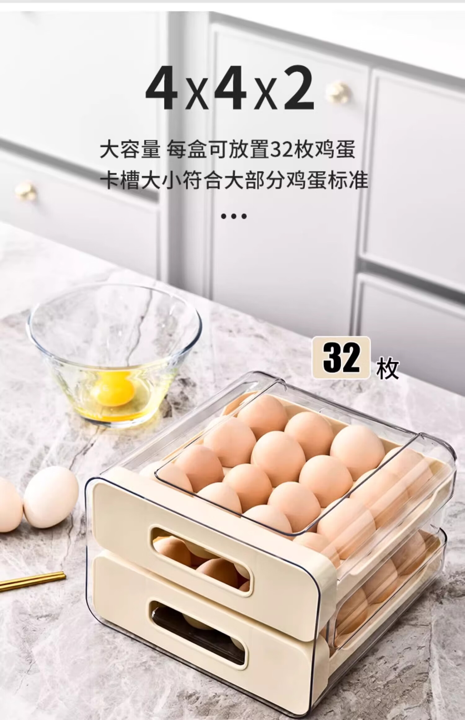 Axco egg storage box, refrigerator-specific drawer-type fresh-keeping food-grade organizing artifact, egg tray egg tray box, ivory white, one pack/can hold 32 pieces