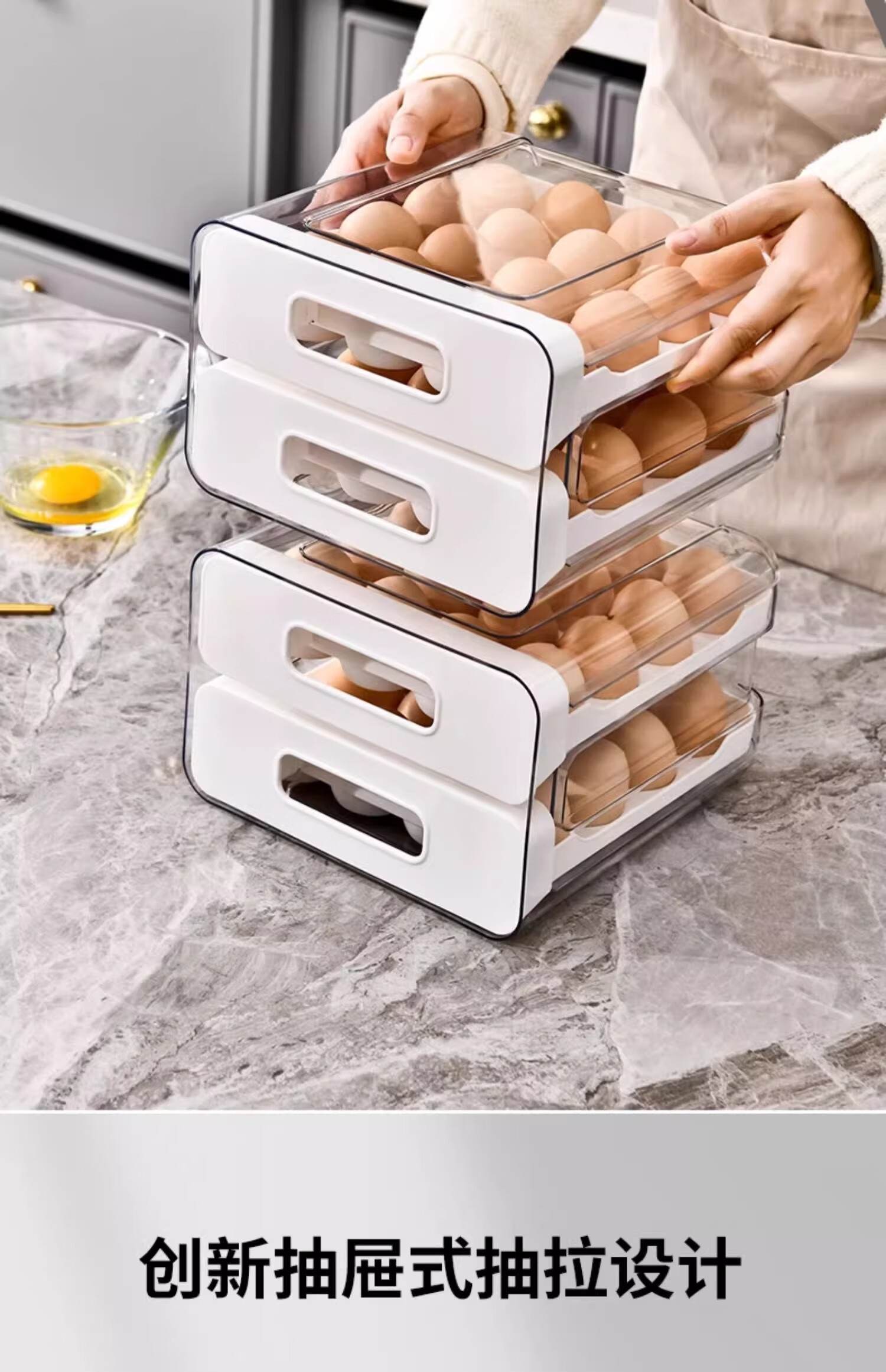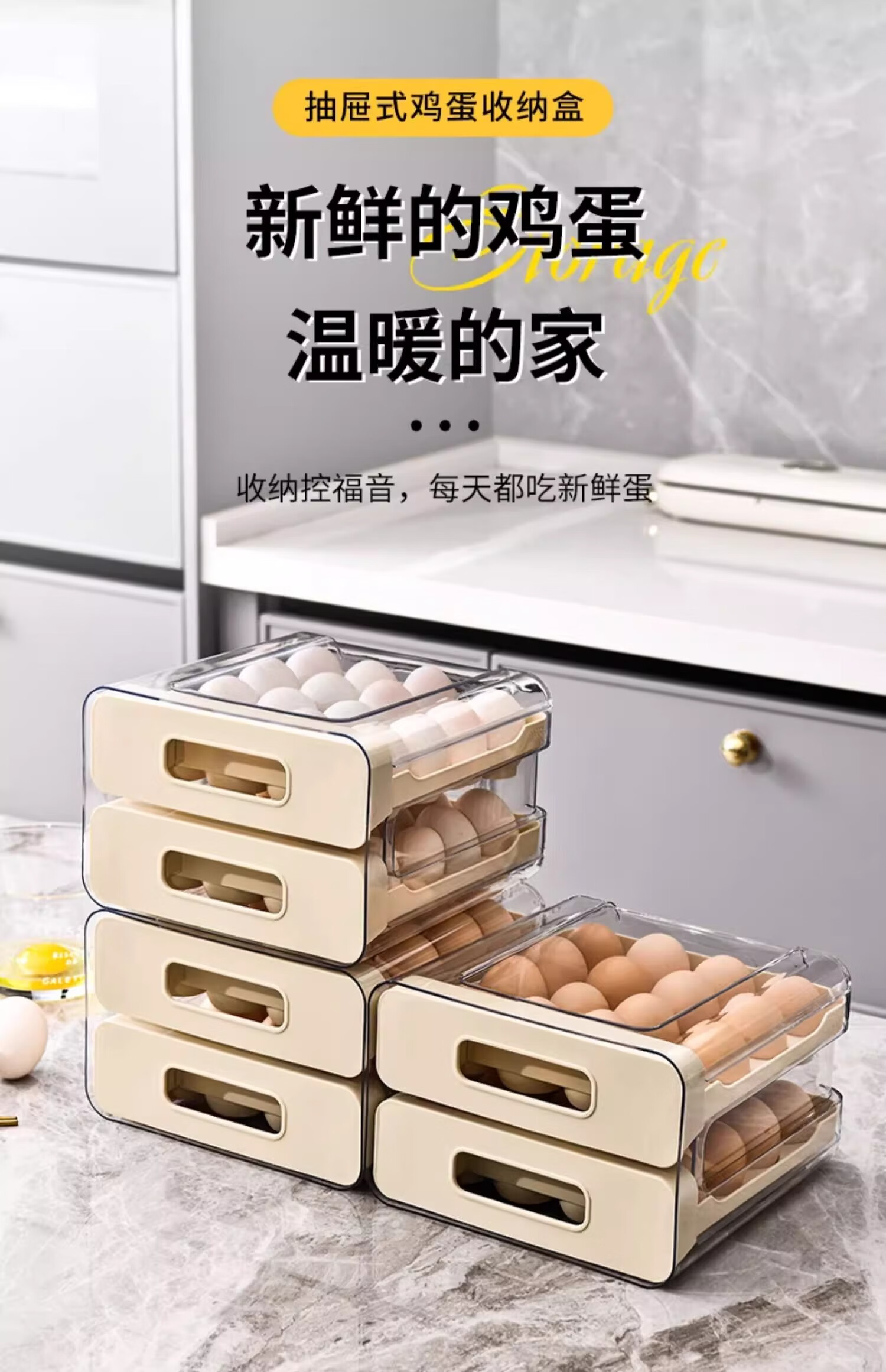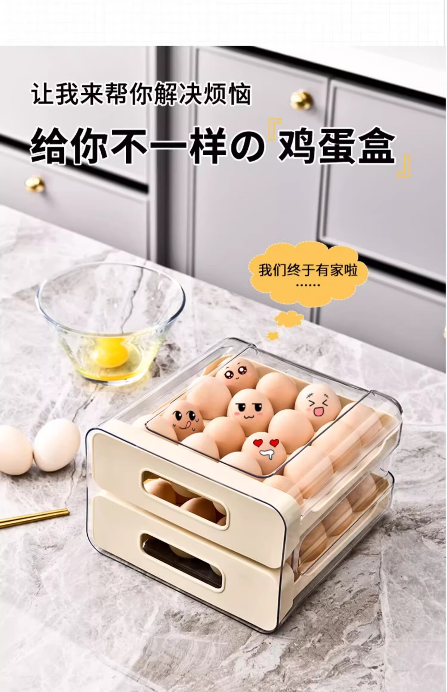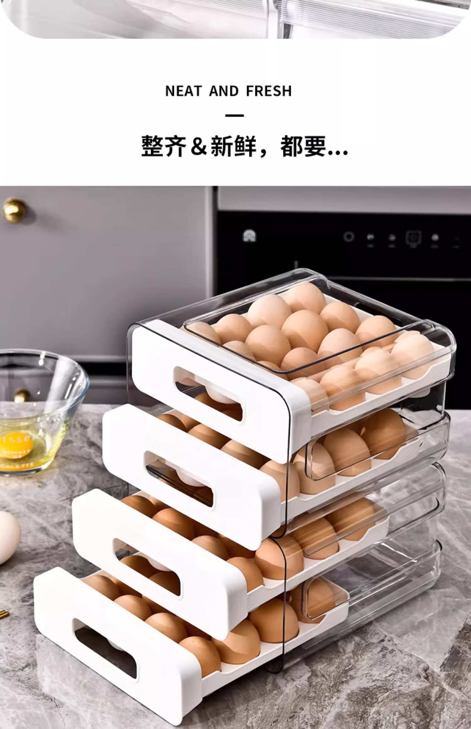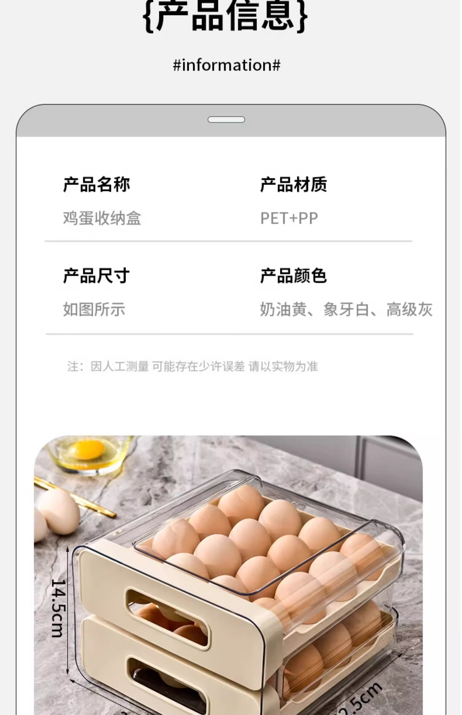 Axco egg storage box, refrigerator-specific drawer-type fresh-keeping food-grade organizing artifact, egg tray egg tray box, ivory white, one pack/can hold 32 pieces