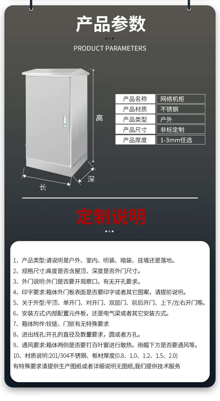 Aoyanlai outdoor stainless steel distribution box network cabinet 6u9u24u42u monitoring equipment box outdoor 1400*600*600