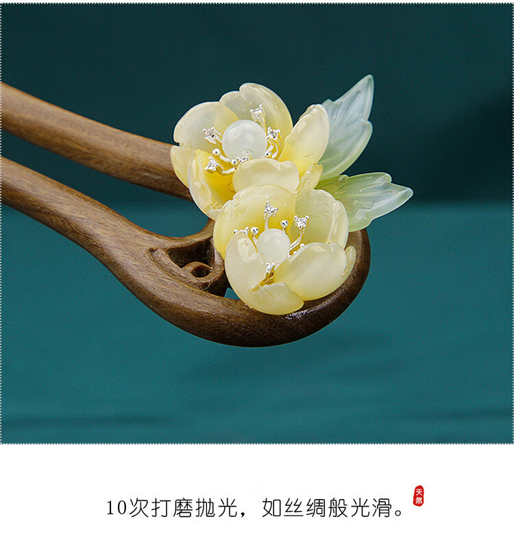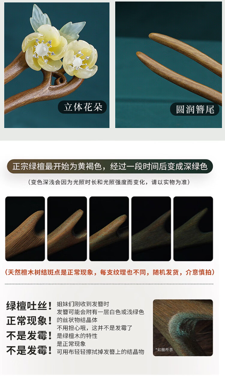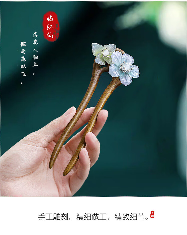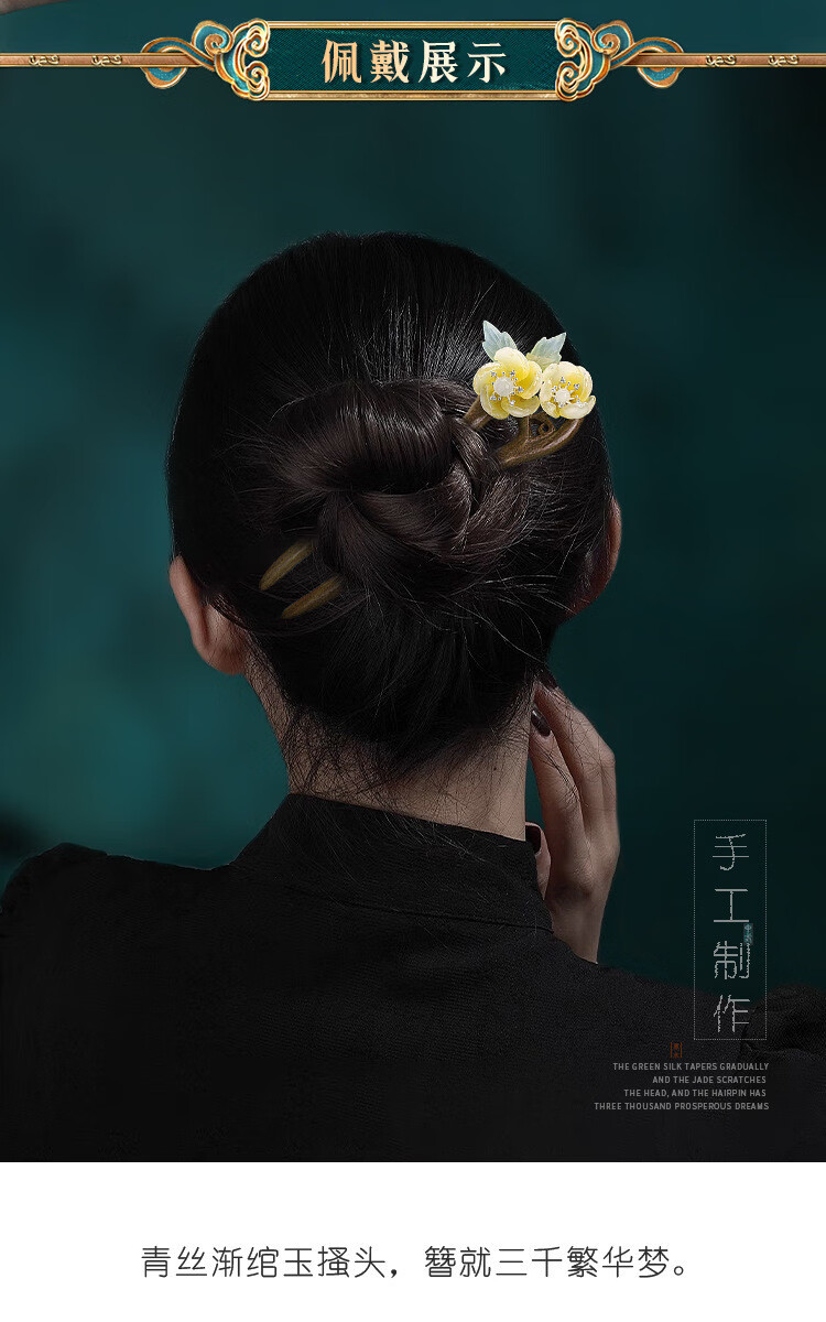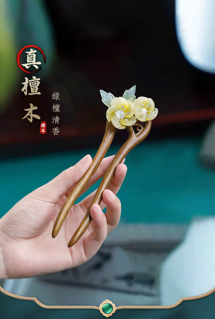 Mengjunchen green sandalwood handmade tassel U-shaped hairpin elegant ancient style cool hairpin female new Chinese style hair accessories advanced updo handmade hairpin beautiful as jade