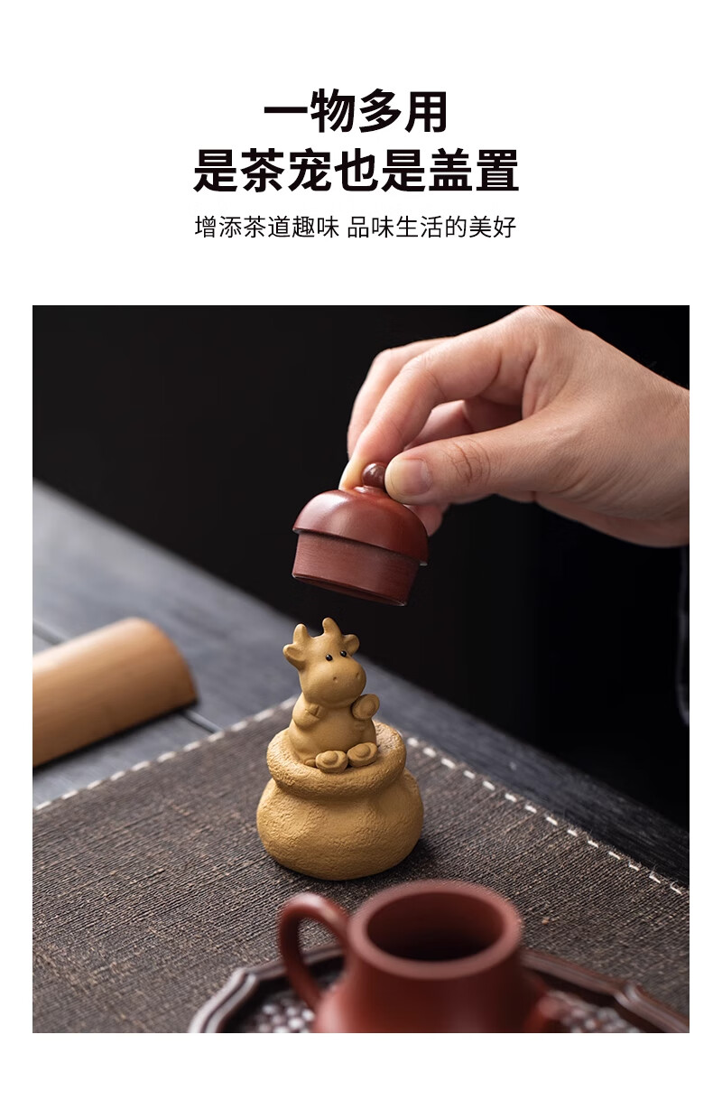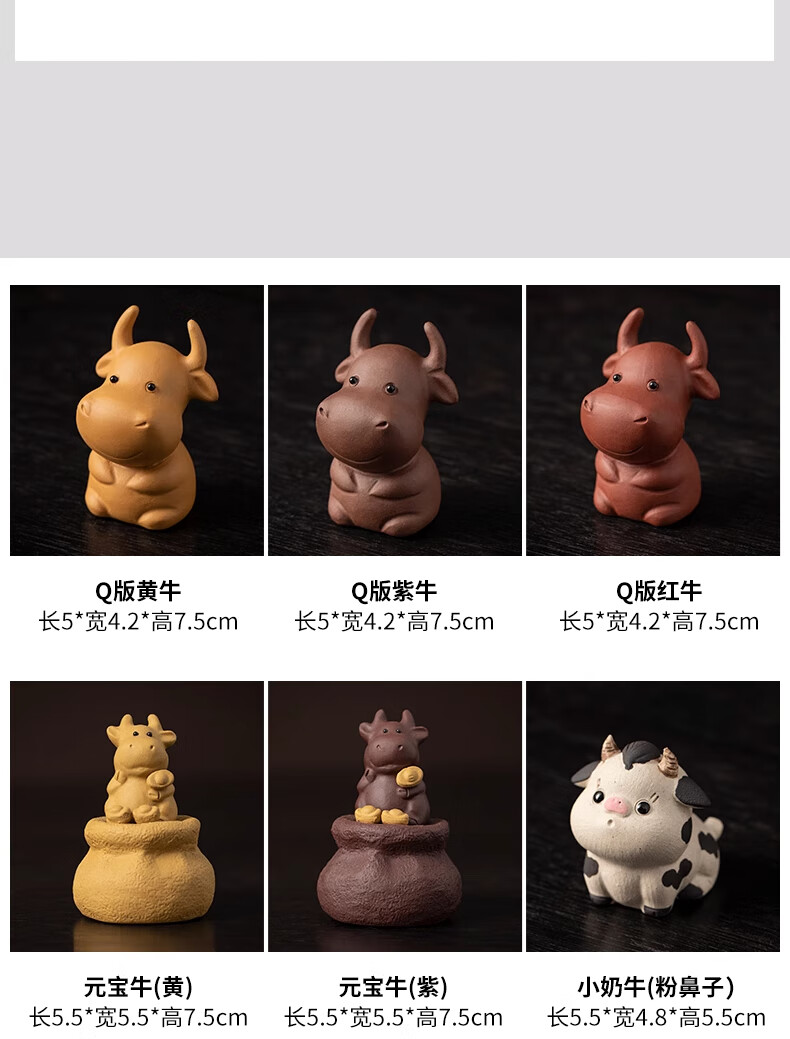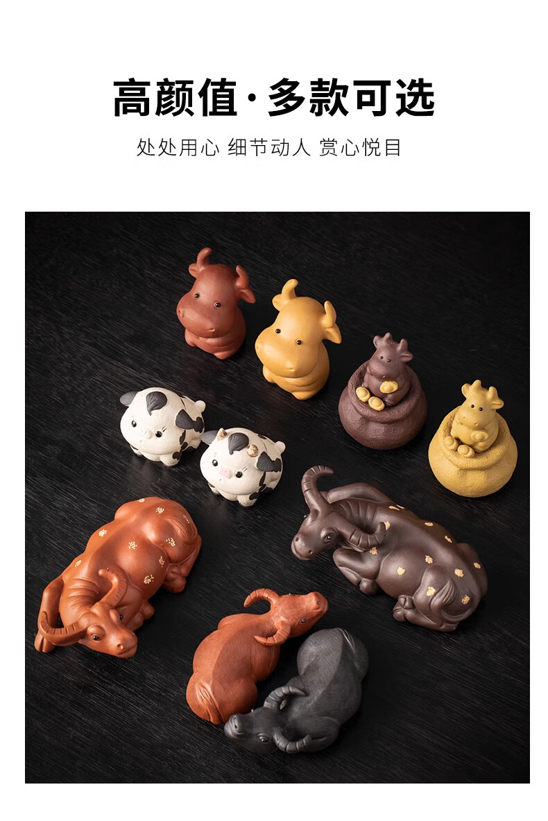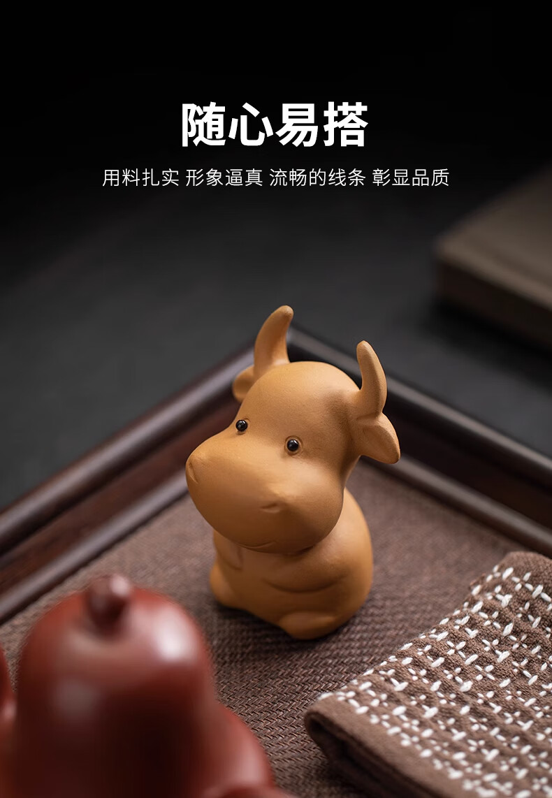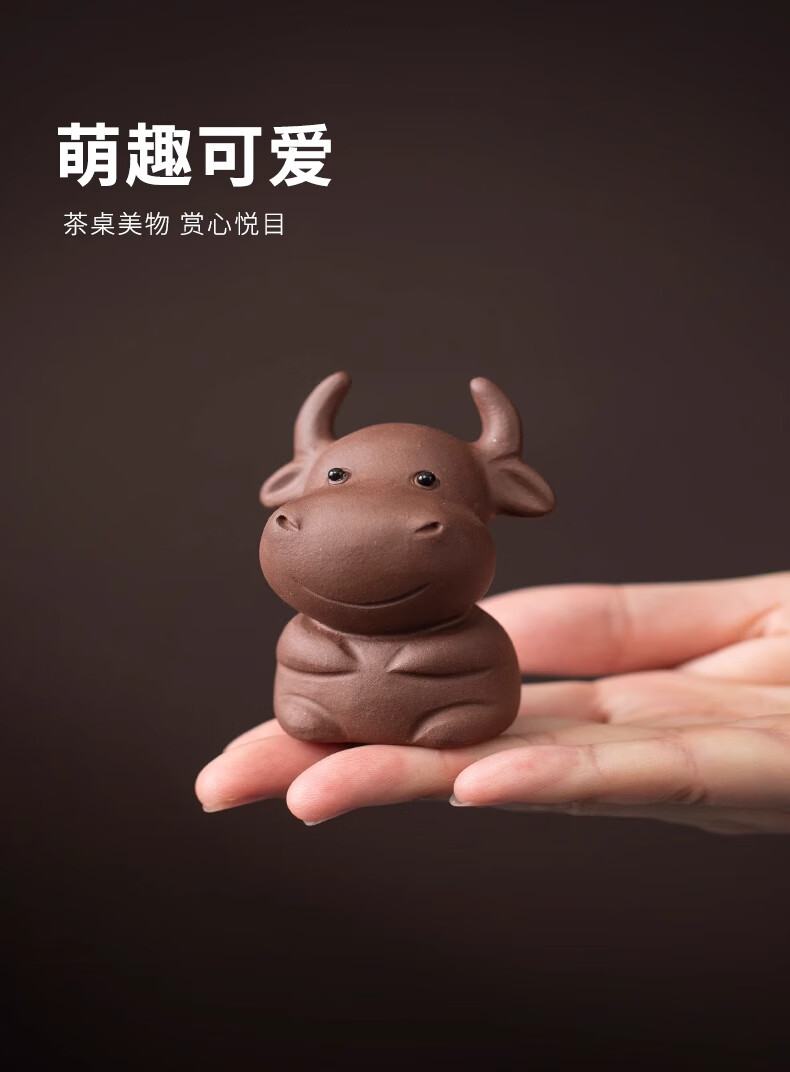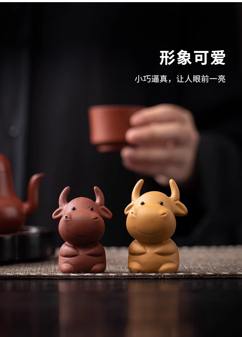 Sanxing Handmade Yixing Purple Clay Tea Pet Cow Turns the World Art Ornaments Can Raise Tea Sets Tea Table Small Tea Play Ornaments Oxen Luck (Pair)