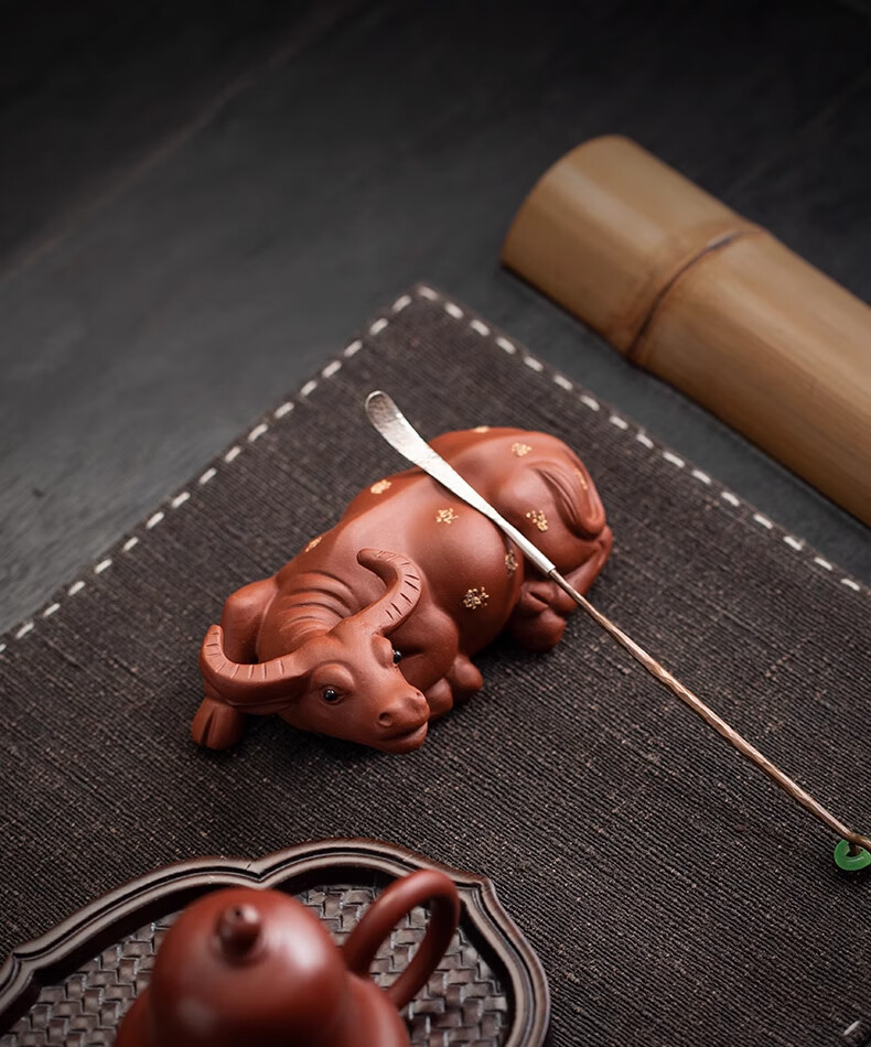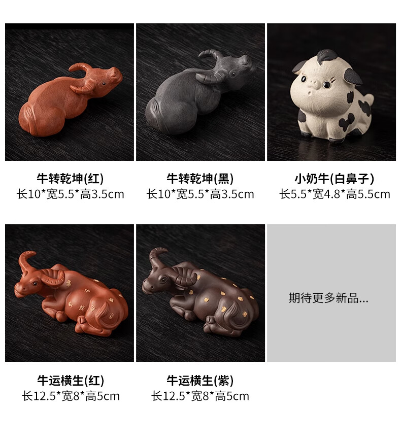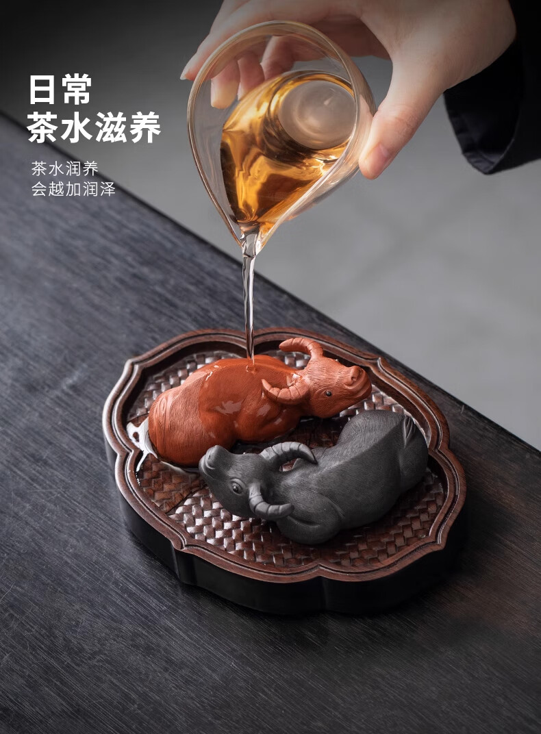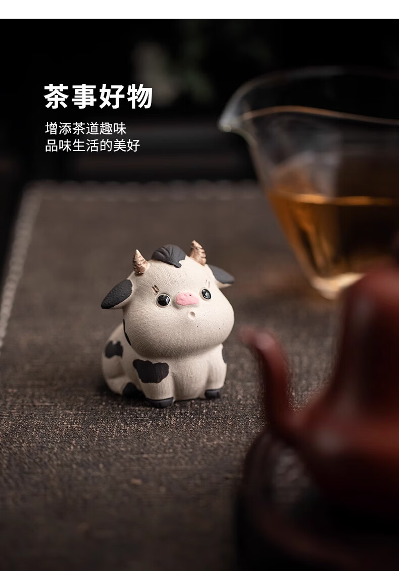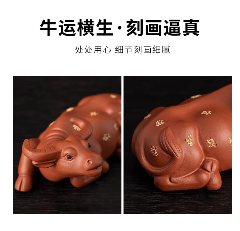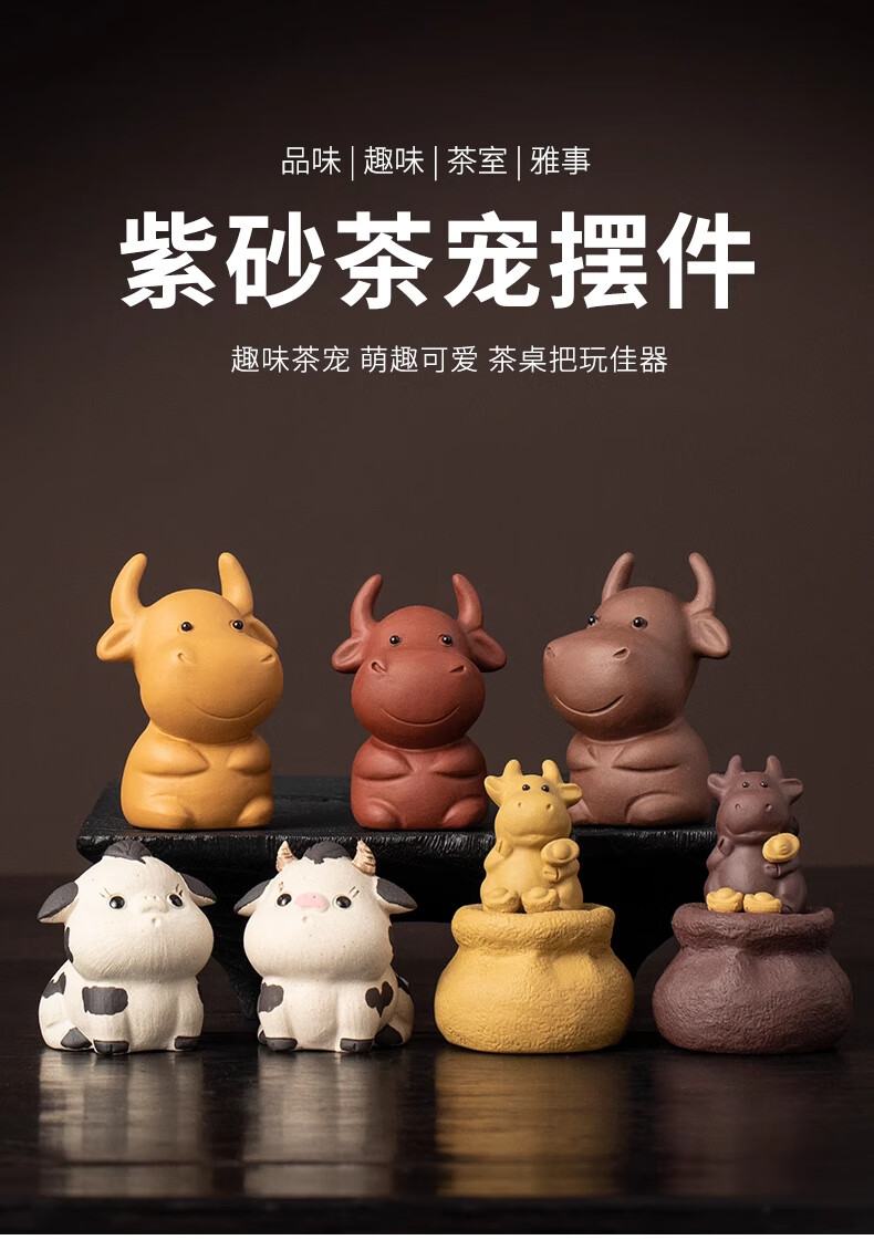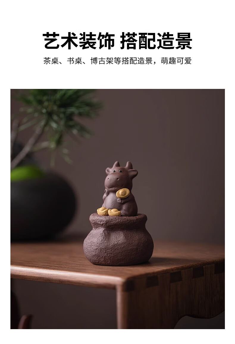 Sanxing Handmade Yixing Purple Clay Tea Pet Cow Turns the World Art Ornaments Can Raise Tea Sets Tea Table Small Tea Play Ornaments Oxen Luck (Pair)