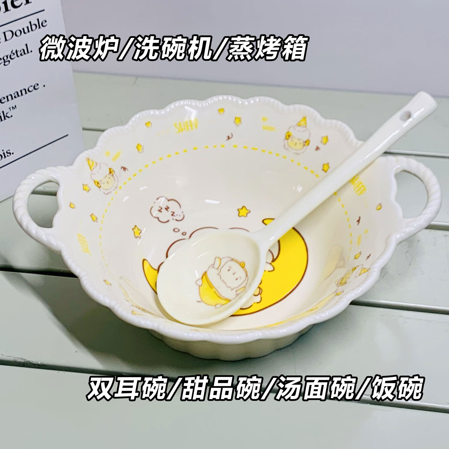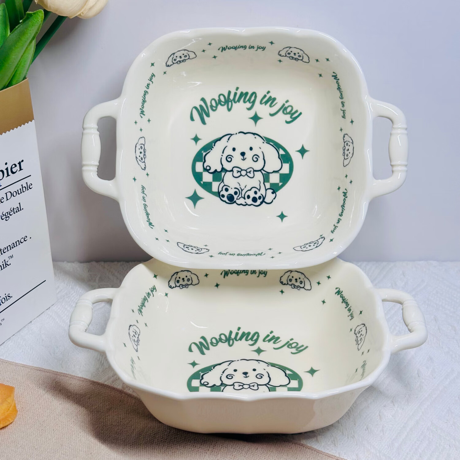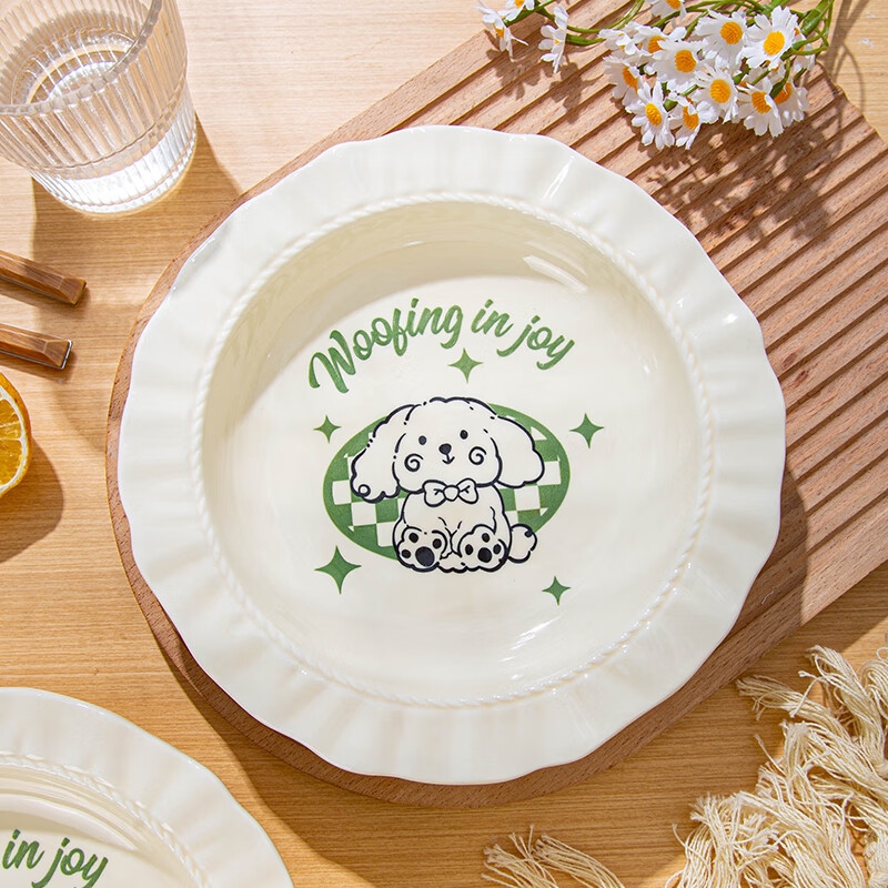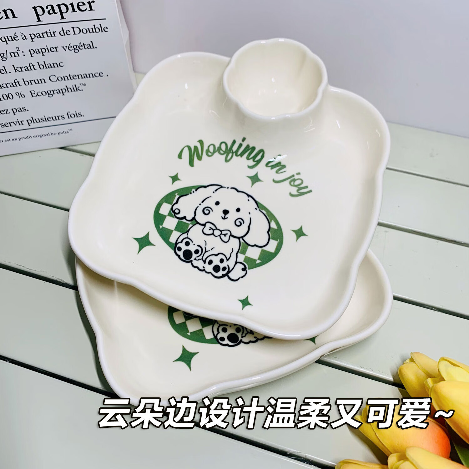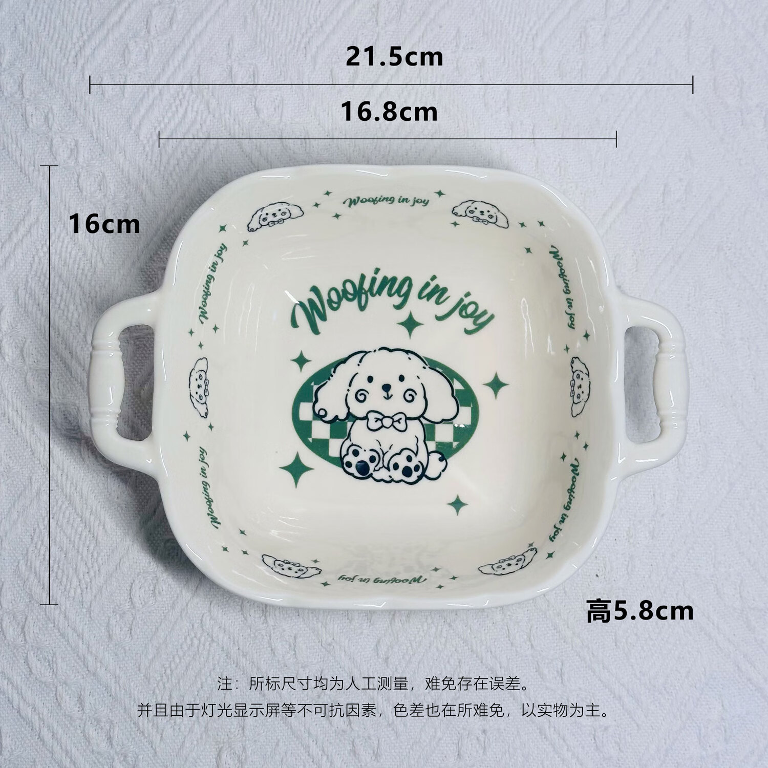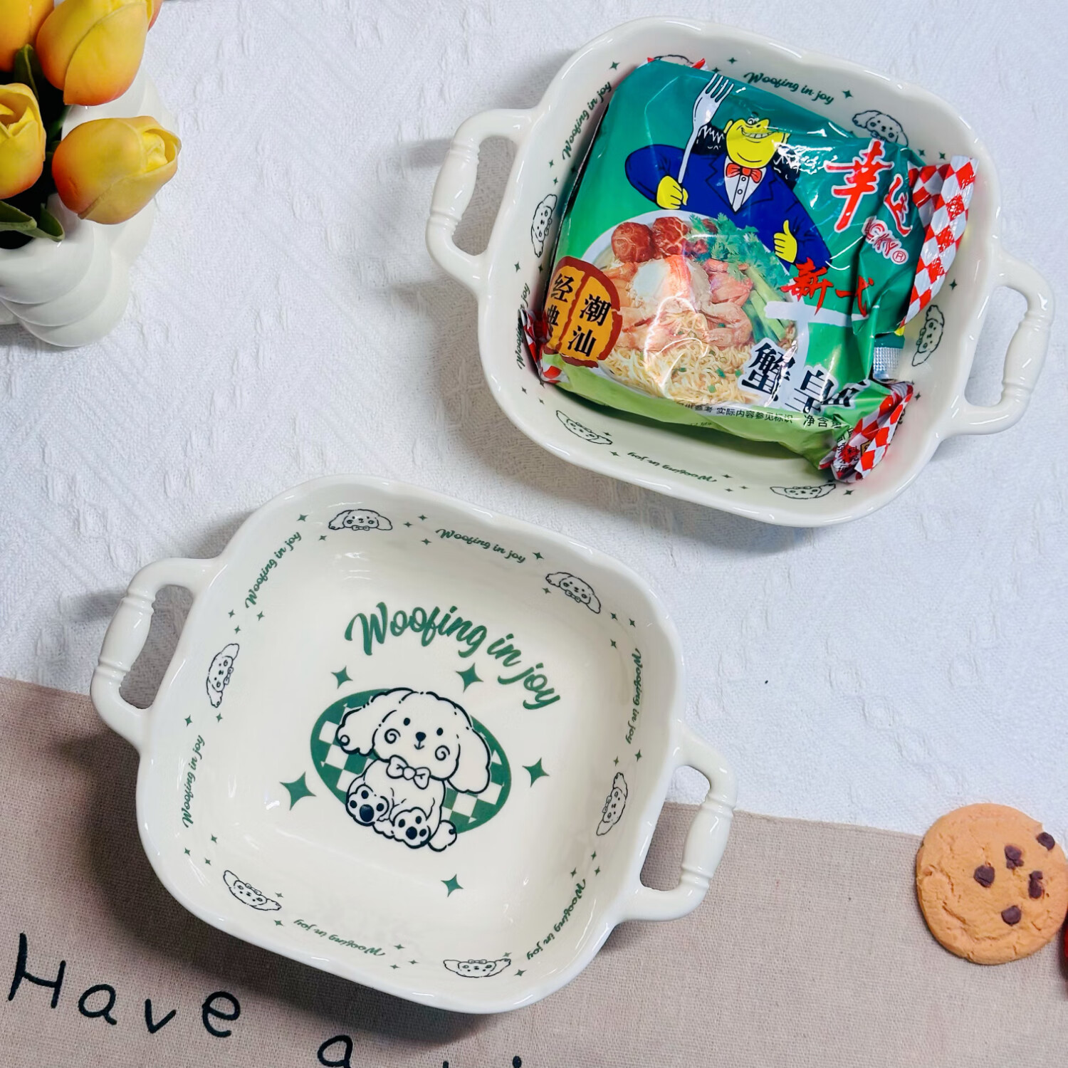 Milk fufu bowl and plate tableware set underglaze color ceramic bowl home ins high-looking plate dinner plate double-eared soup bowl 1 pack cream puppy flower basket bowl