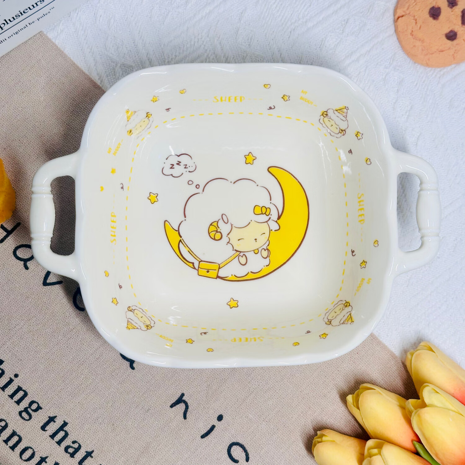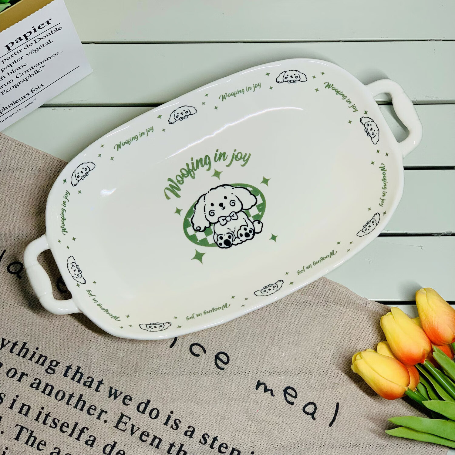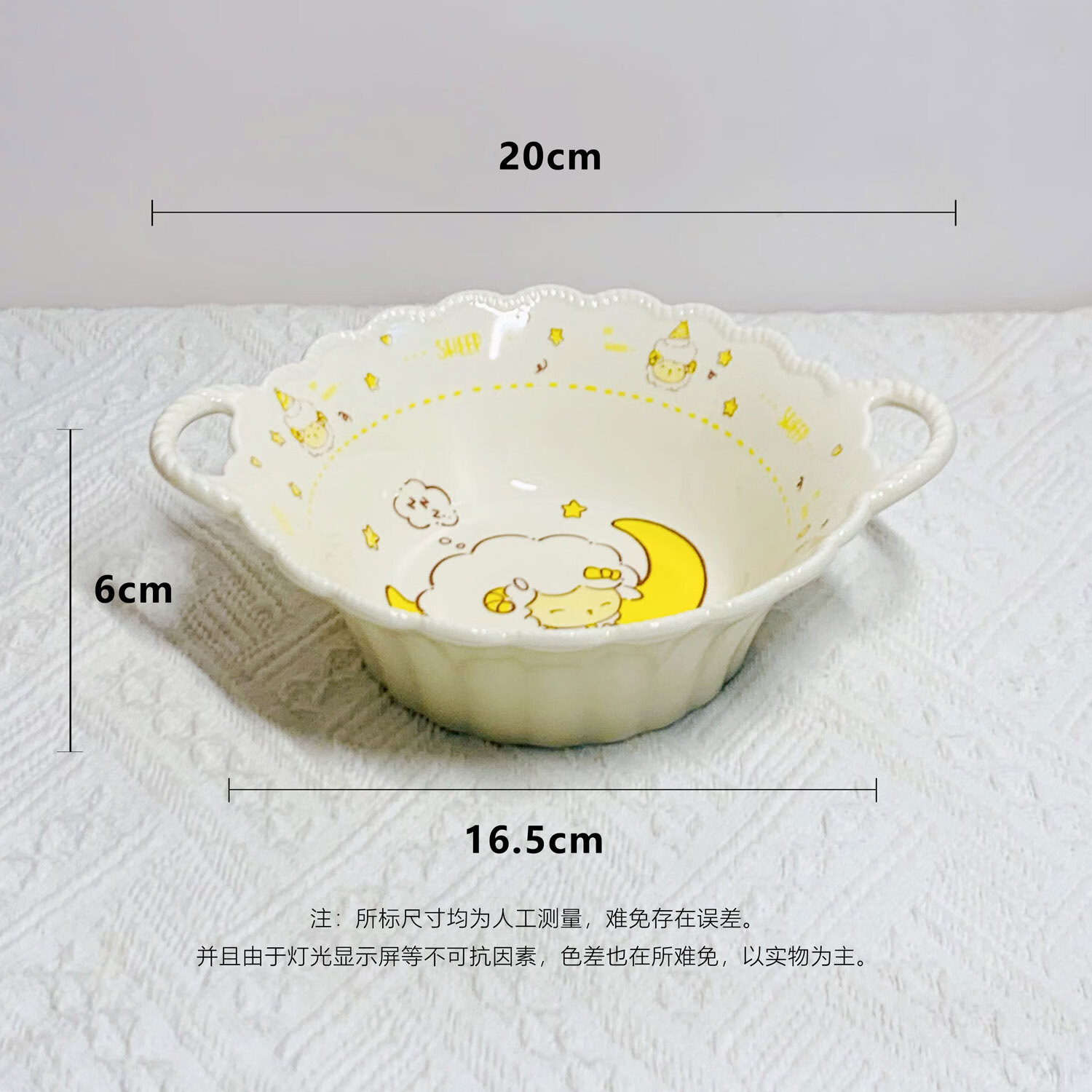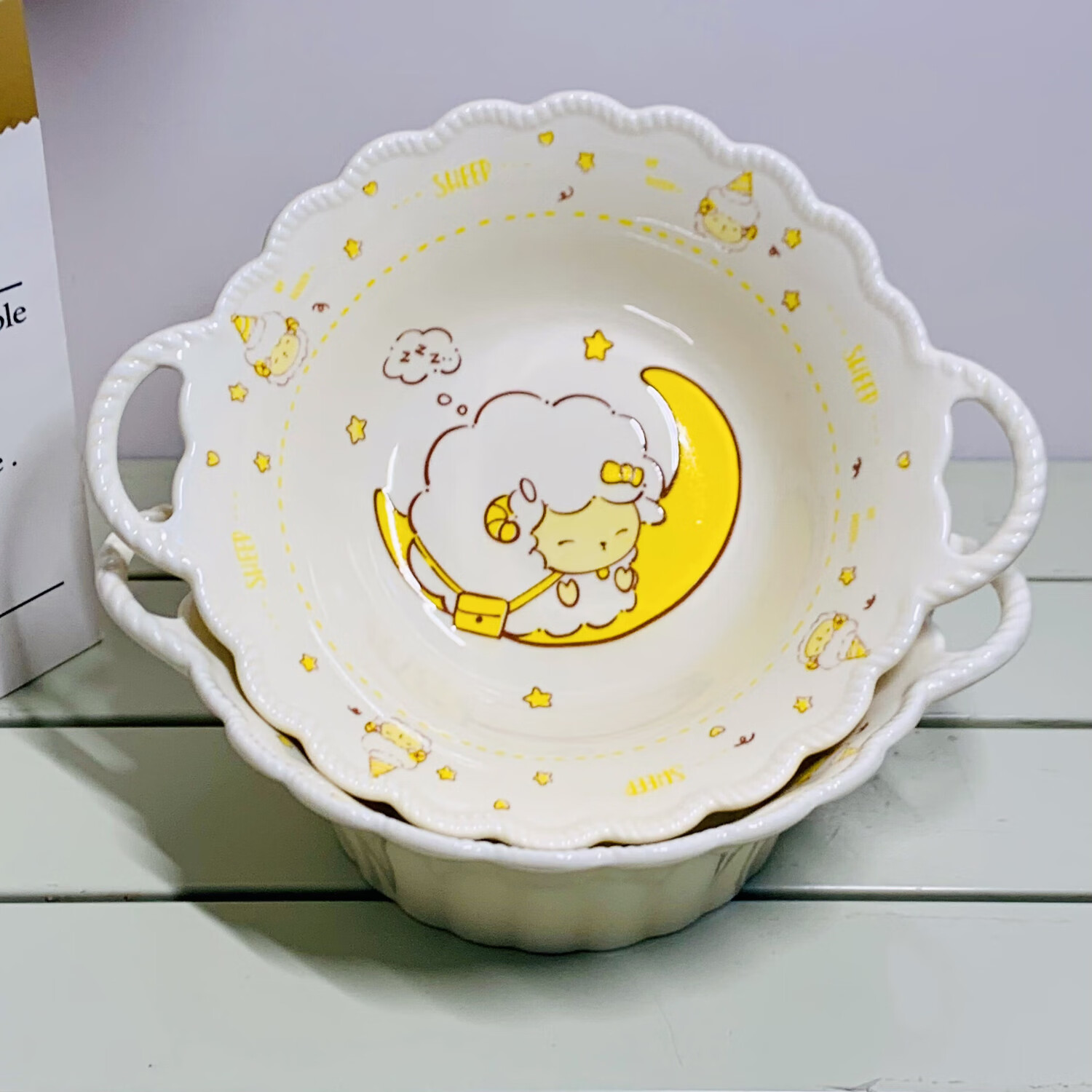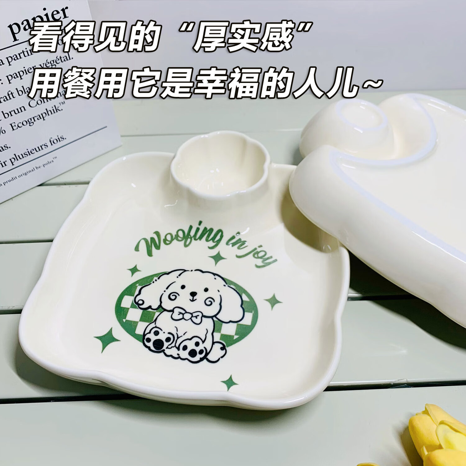 Milk fufu bowl and plate tableware set underglaze color ceramic bowl home ins high-looking plate dinner plate double-eared soup bowl 1 pack cream puppy flower basket bowl