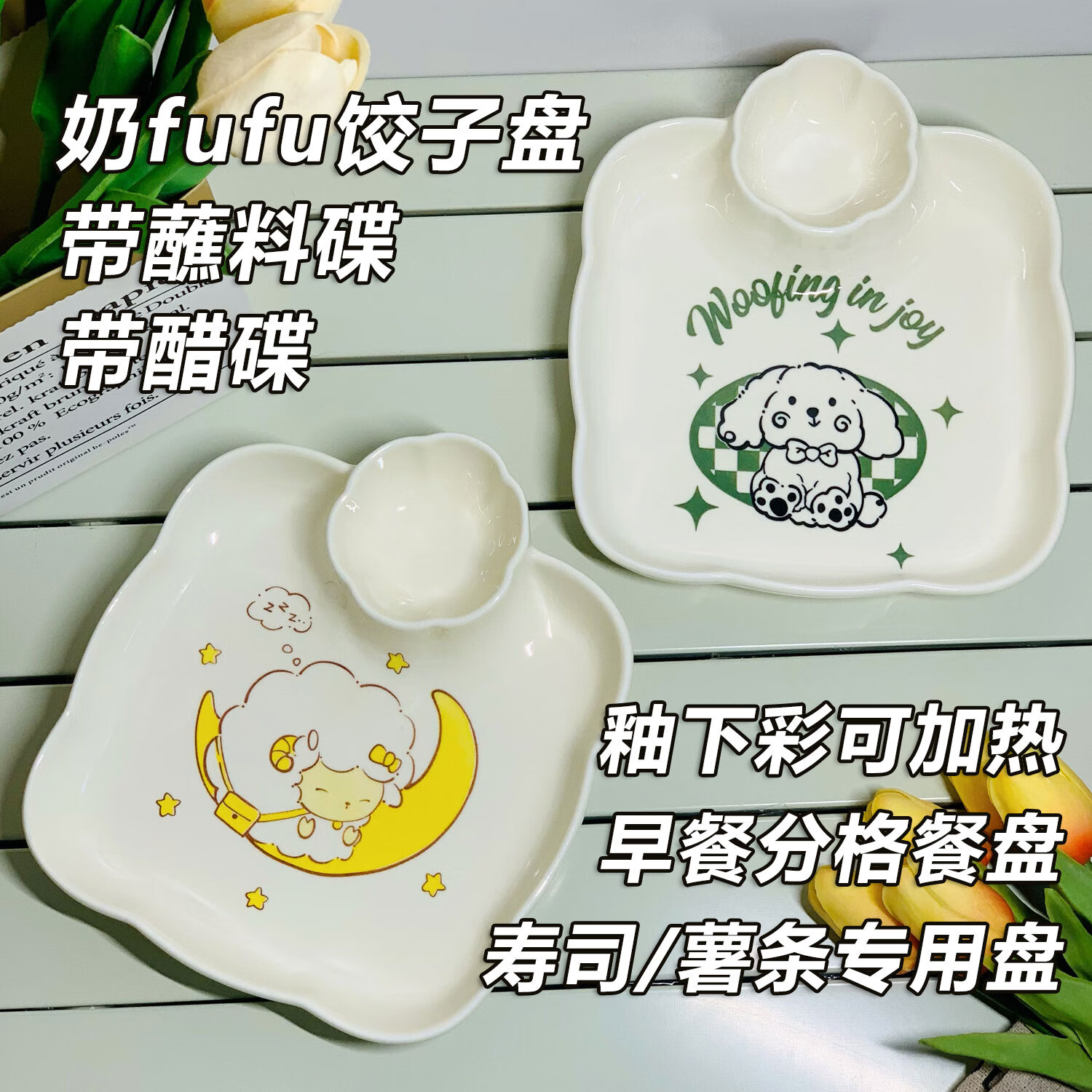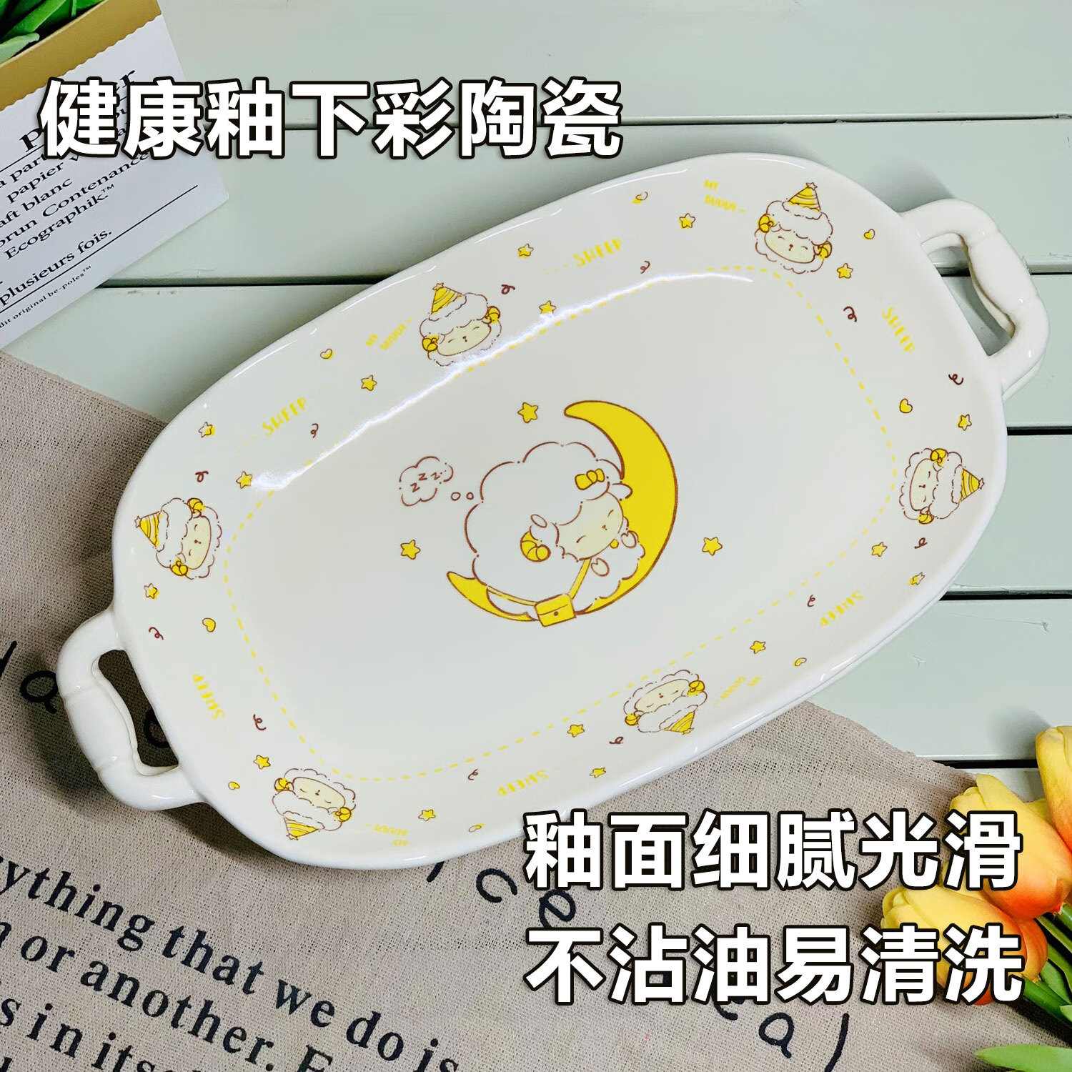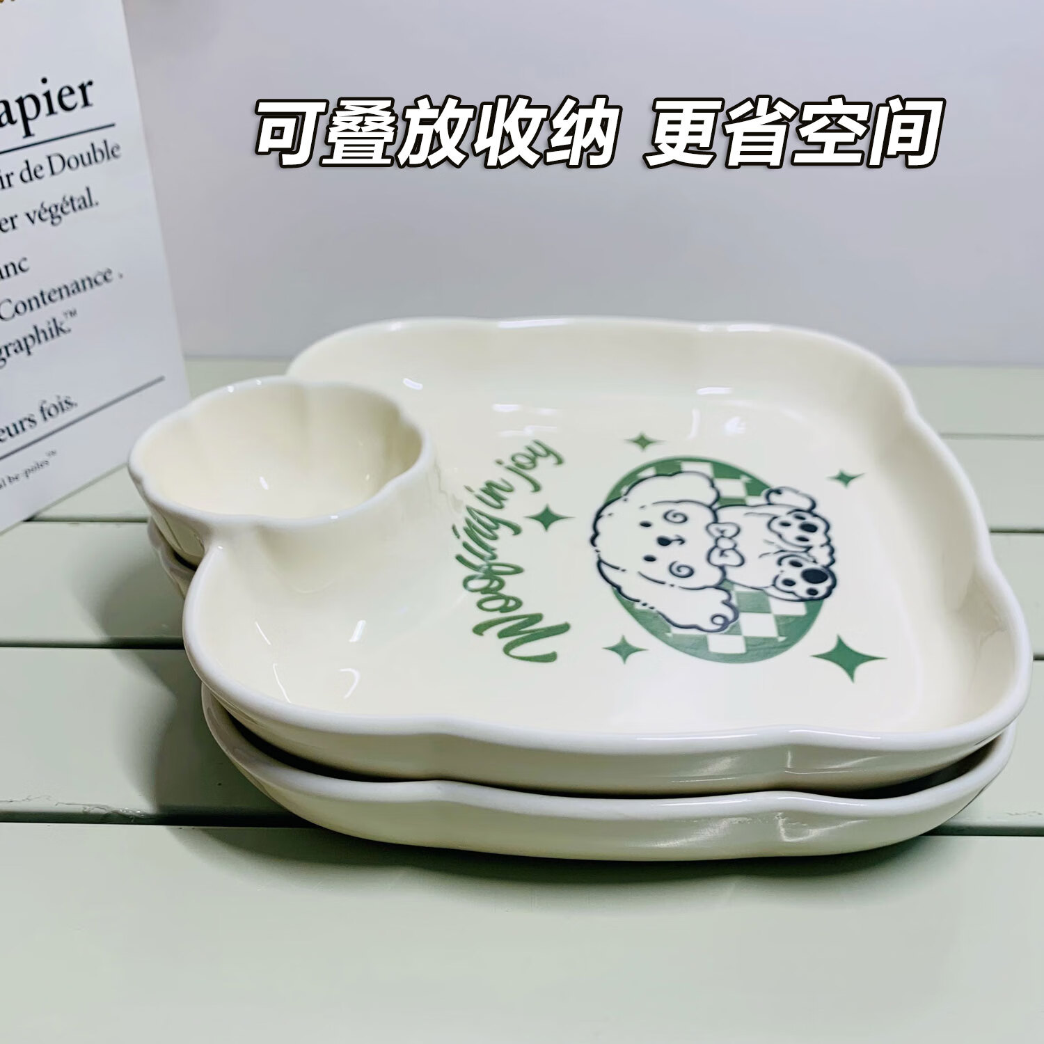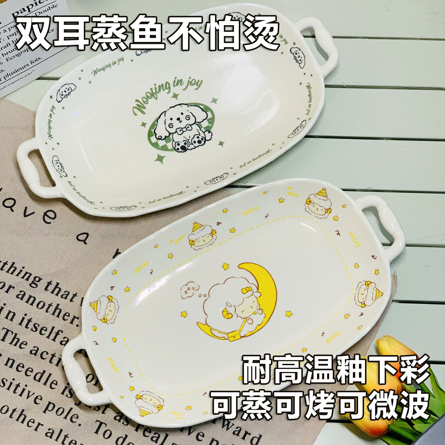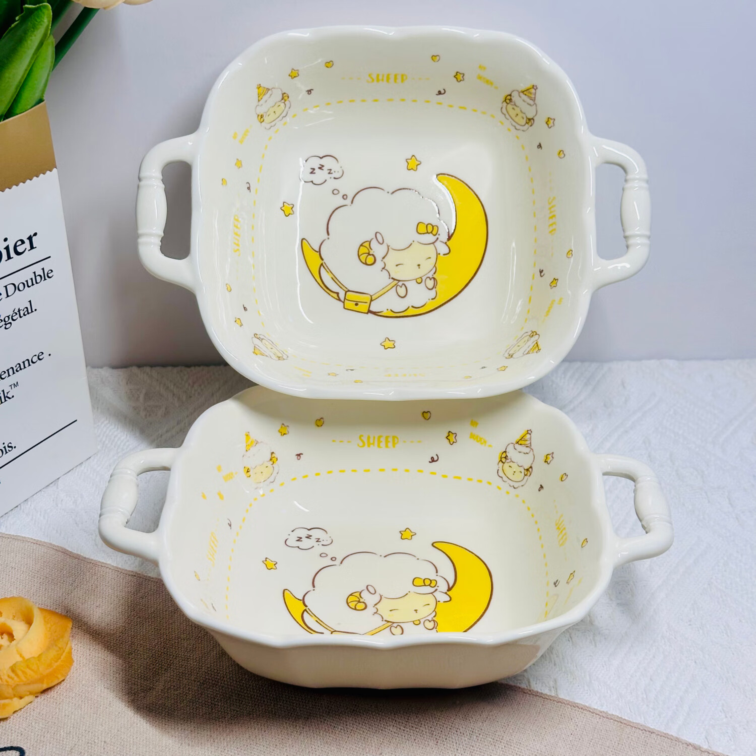 Milk fufu bowl and plate tableware set underglaze color ceramic bowl home ins high-looking plate dinner plate double-eared soup bowl 1 pack cream puppy flower basket bowl