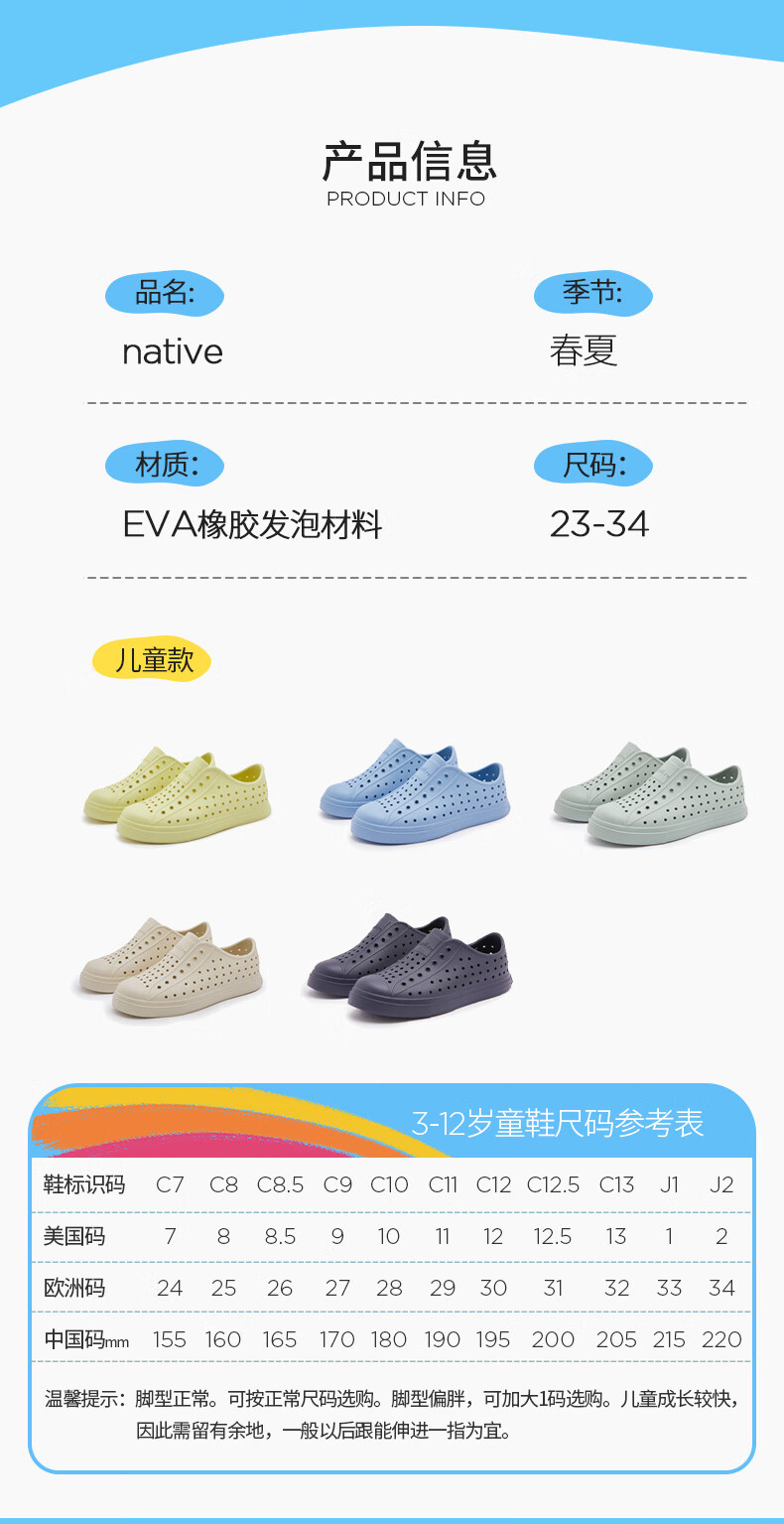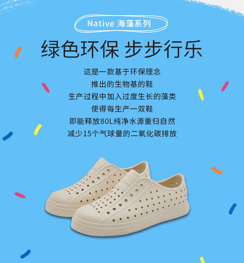 Native Spring and Summer New Bloom Seaweed Environmentally Friendly Series Children's Crocs Shoes for Boys and Girls Off-White_Off-White 32_Shoe Inner Length 20.5cm