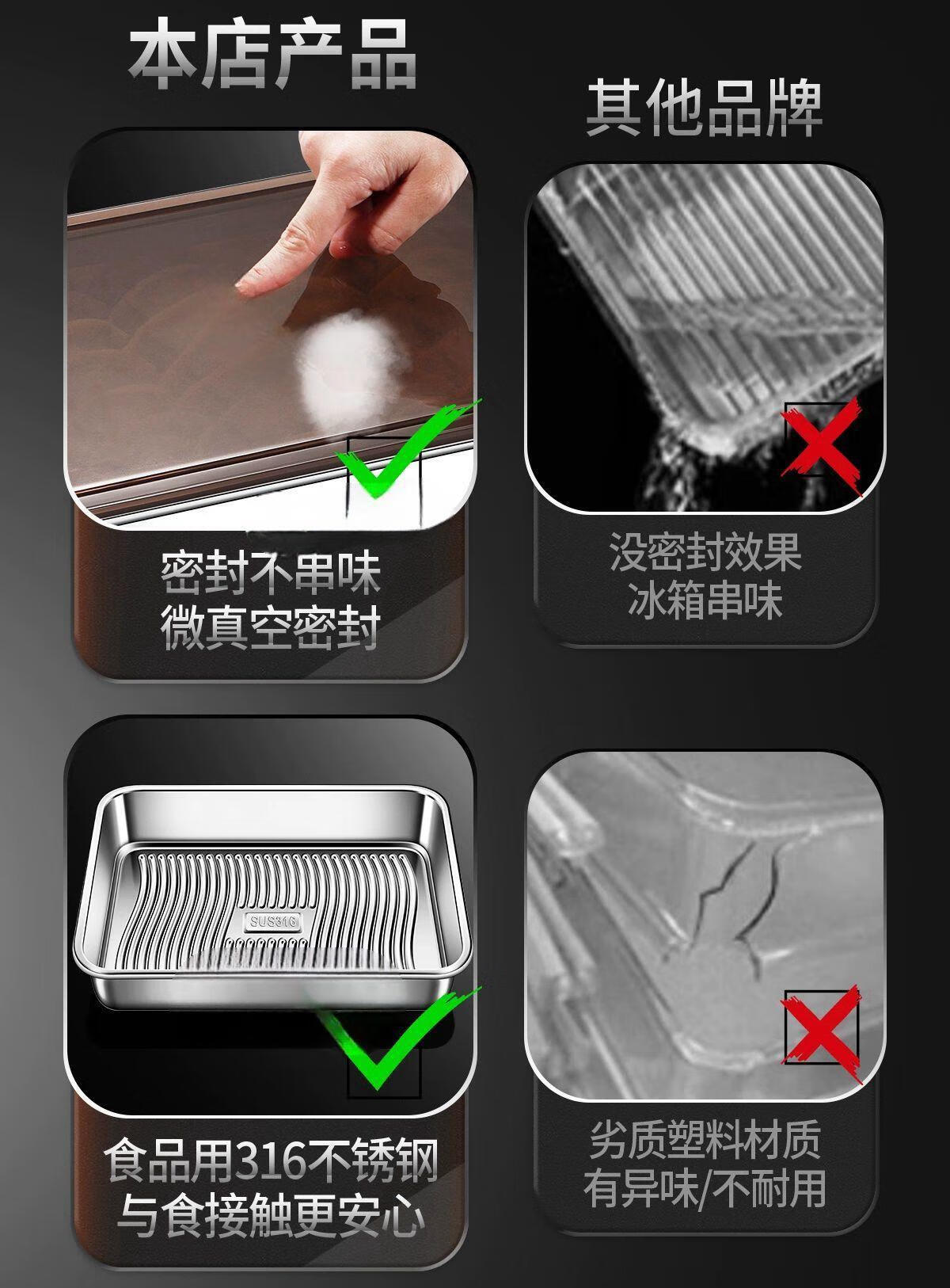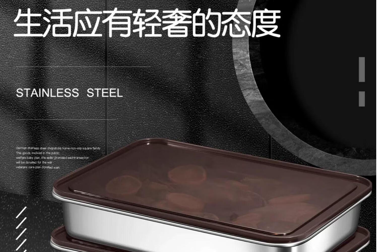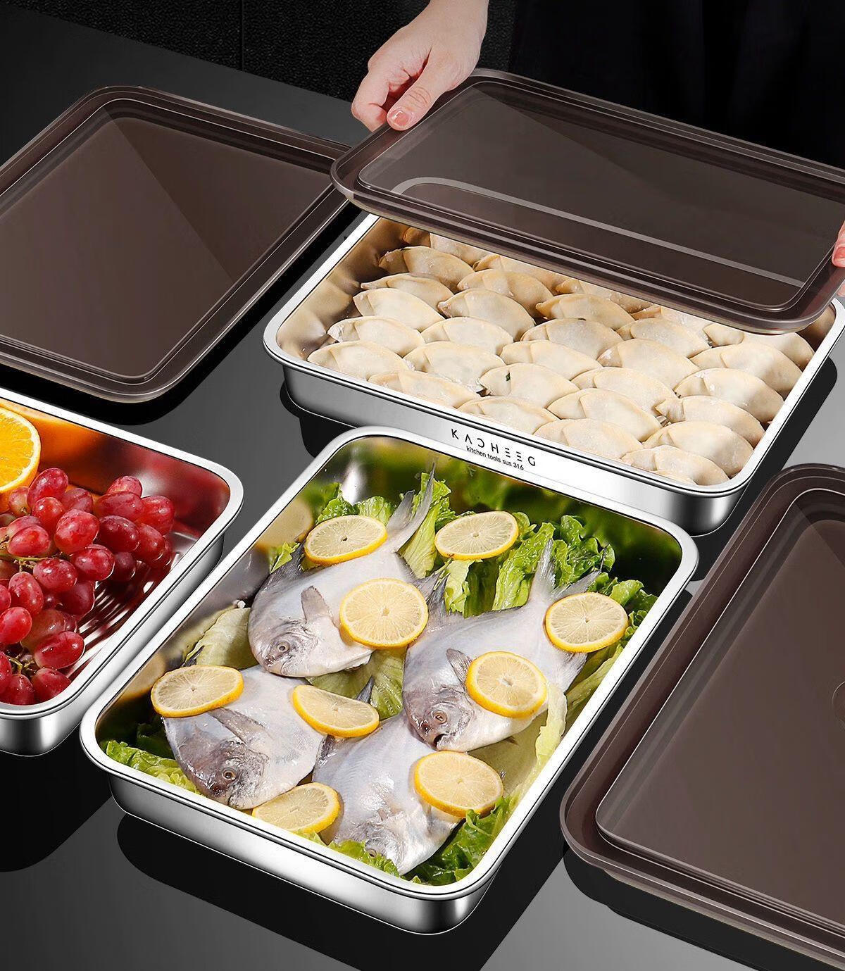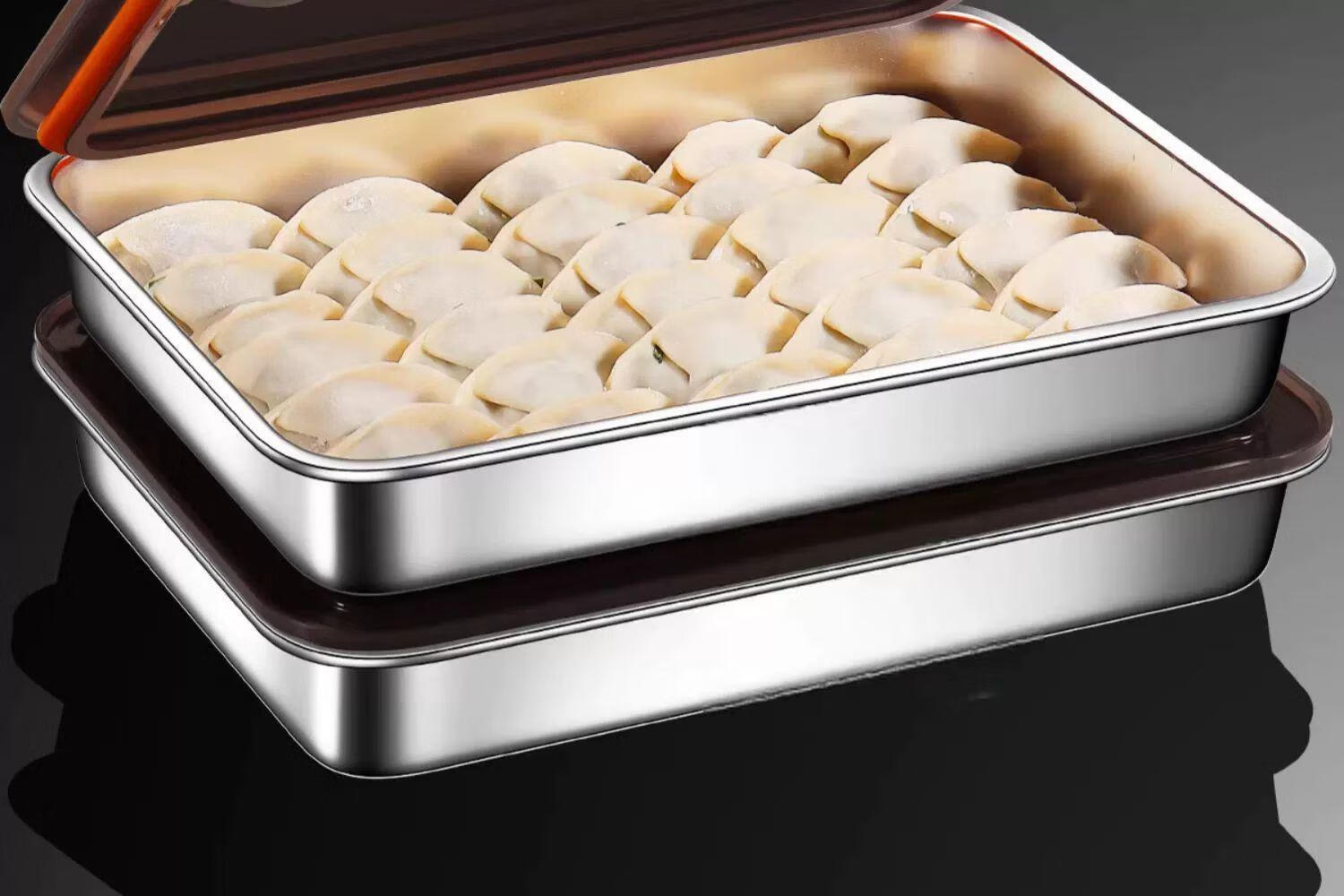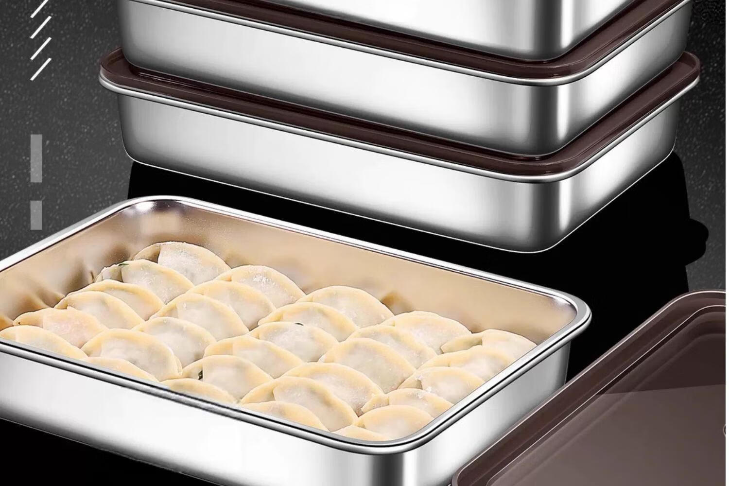Zhewei German Seiko quality 316 stainless steel dumpling box frozen special tray crisper food grade dumpling wonton 1 pack thickened and deepened with PP cover 30x25*5cm