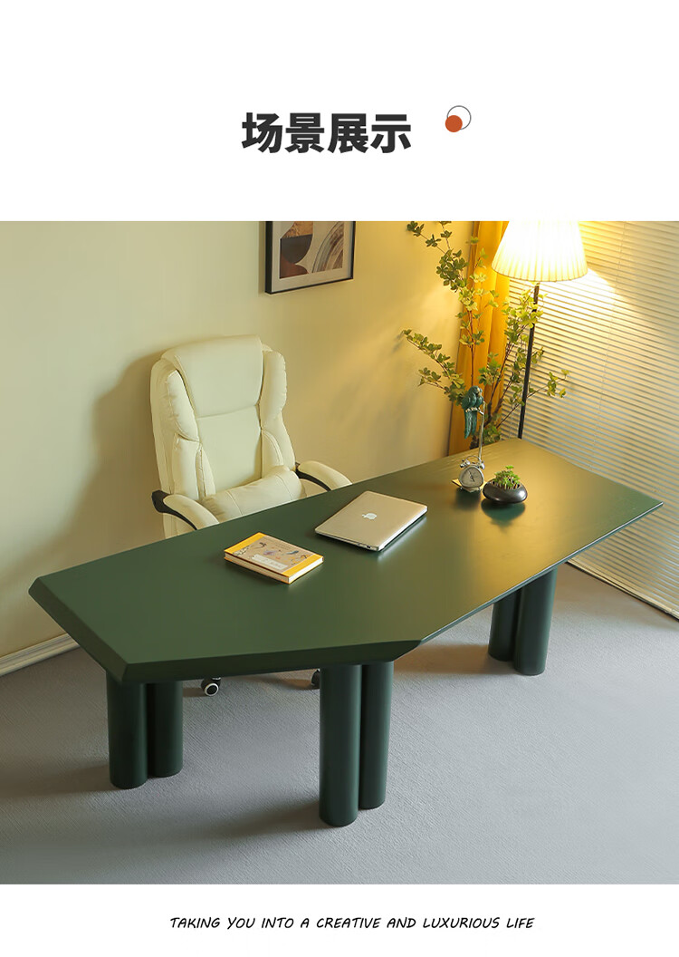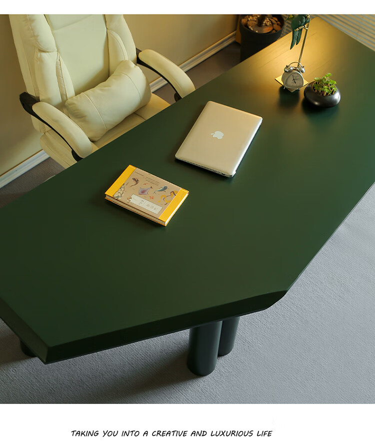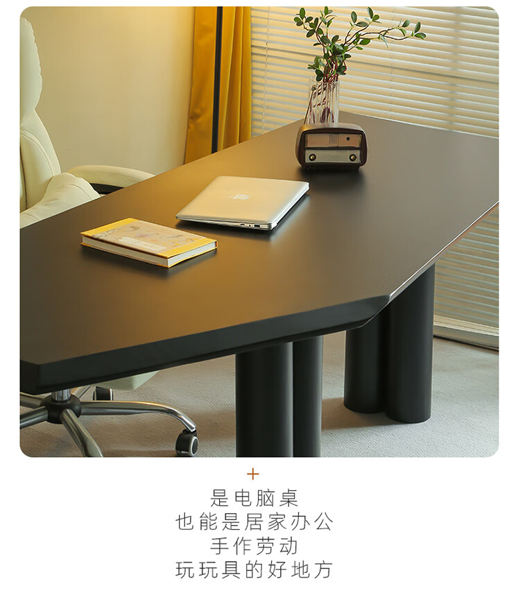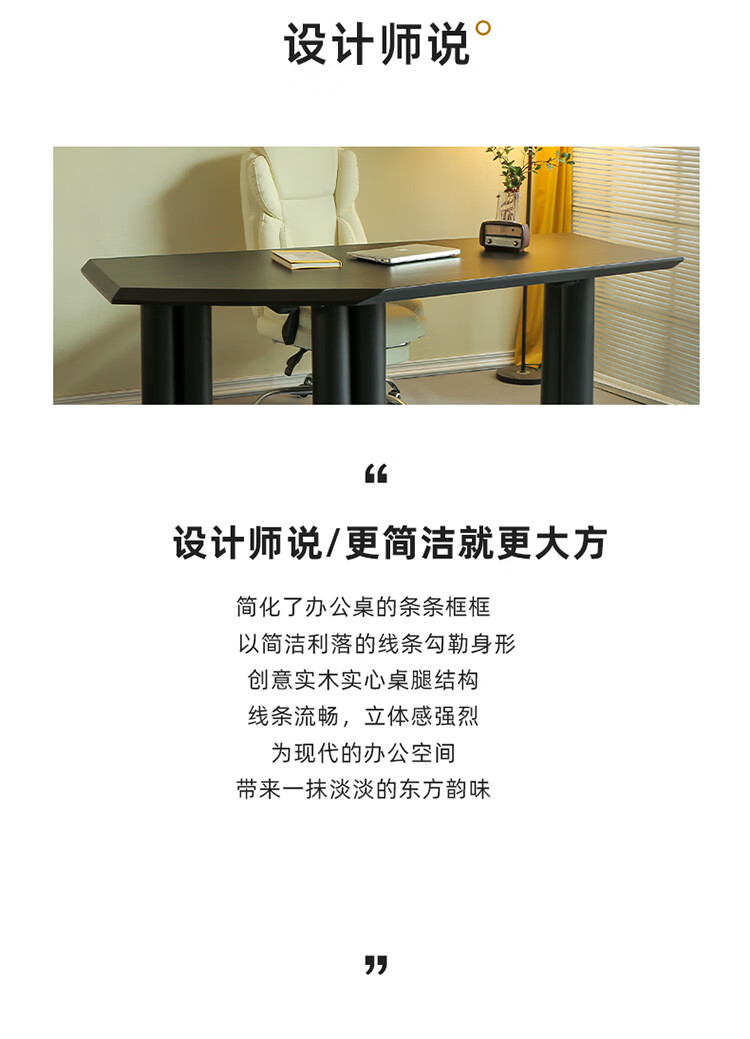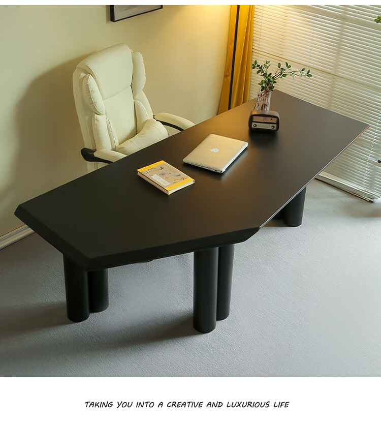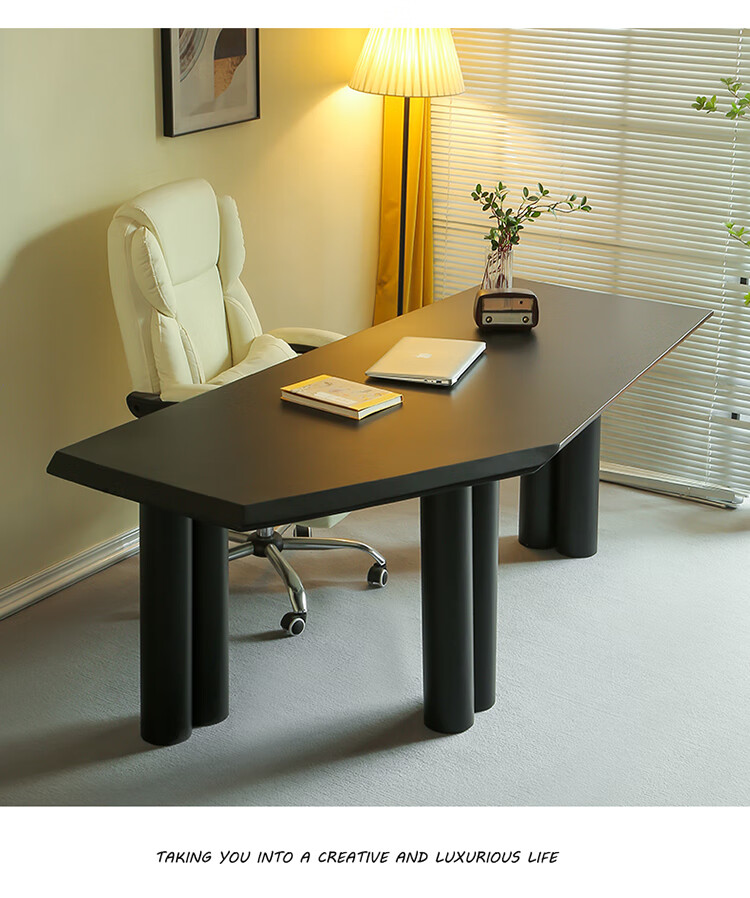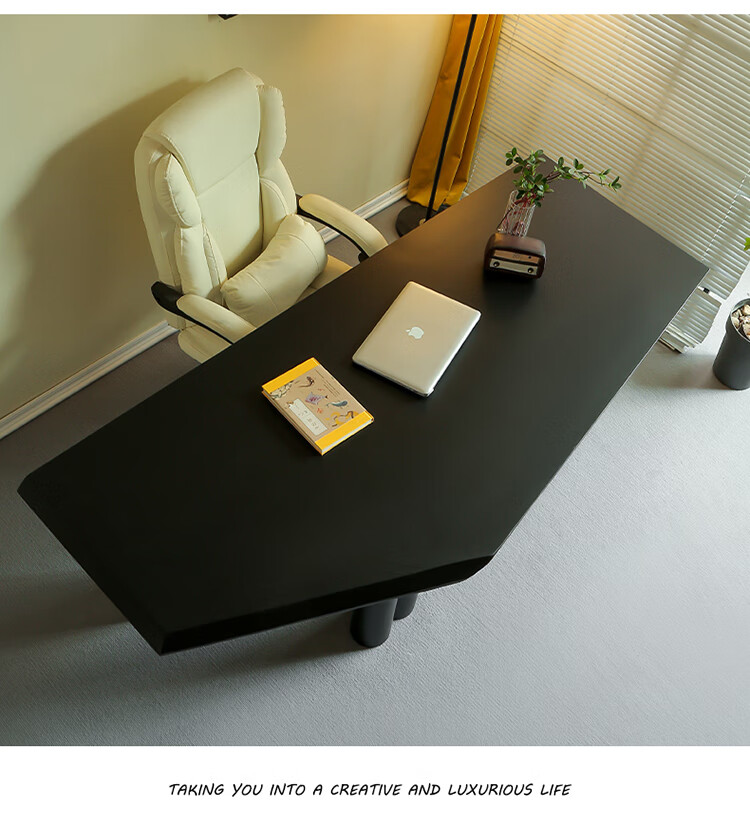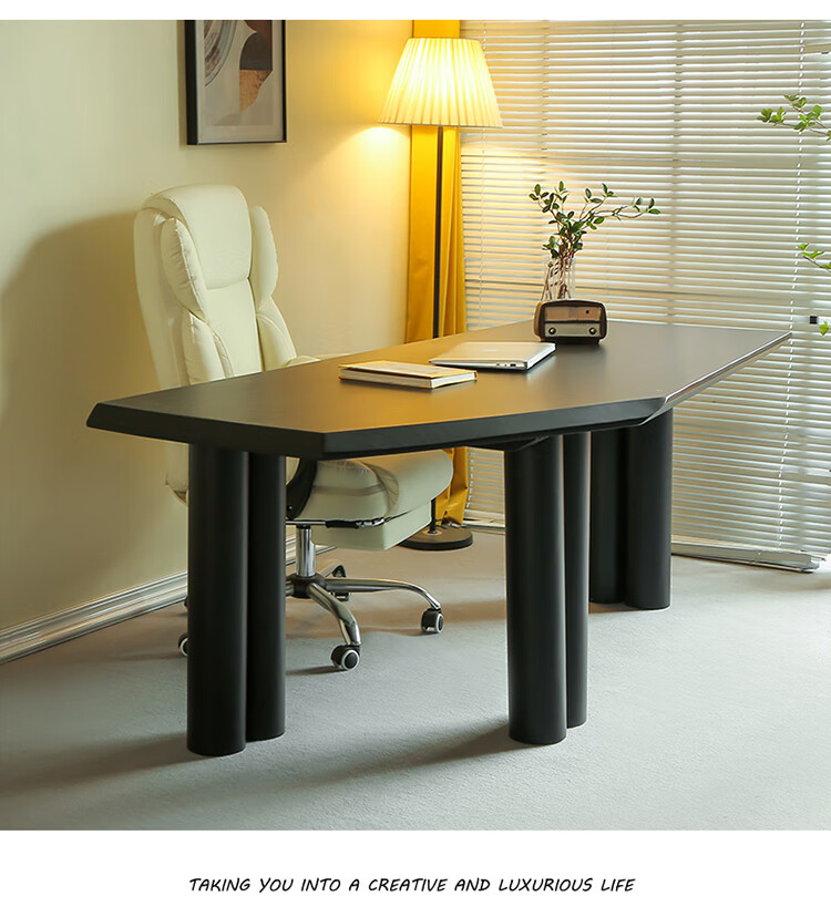 Haoyikaijia simple modern solid wood computer light luxury minimalist style special-shaped designer office boss workbench size 130*80*75 (elegant black)