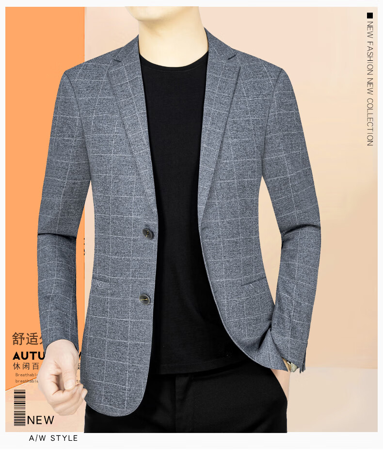 Hengyuanxiang high-end suit jacket men's autumn new fashion business casual suit spring and autumn style young and middle-aged dad single suit gray H1121 L 175 120-140Jin Jin equals 0.5 kg