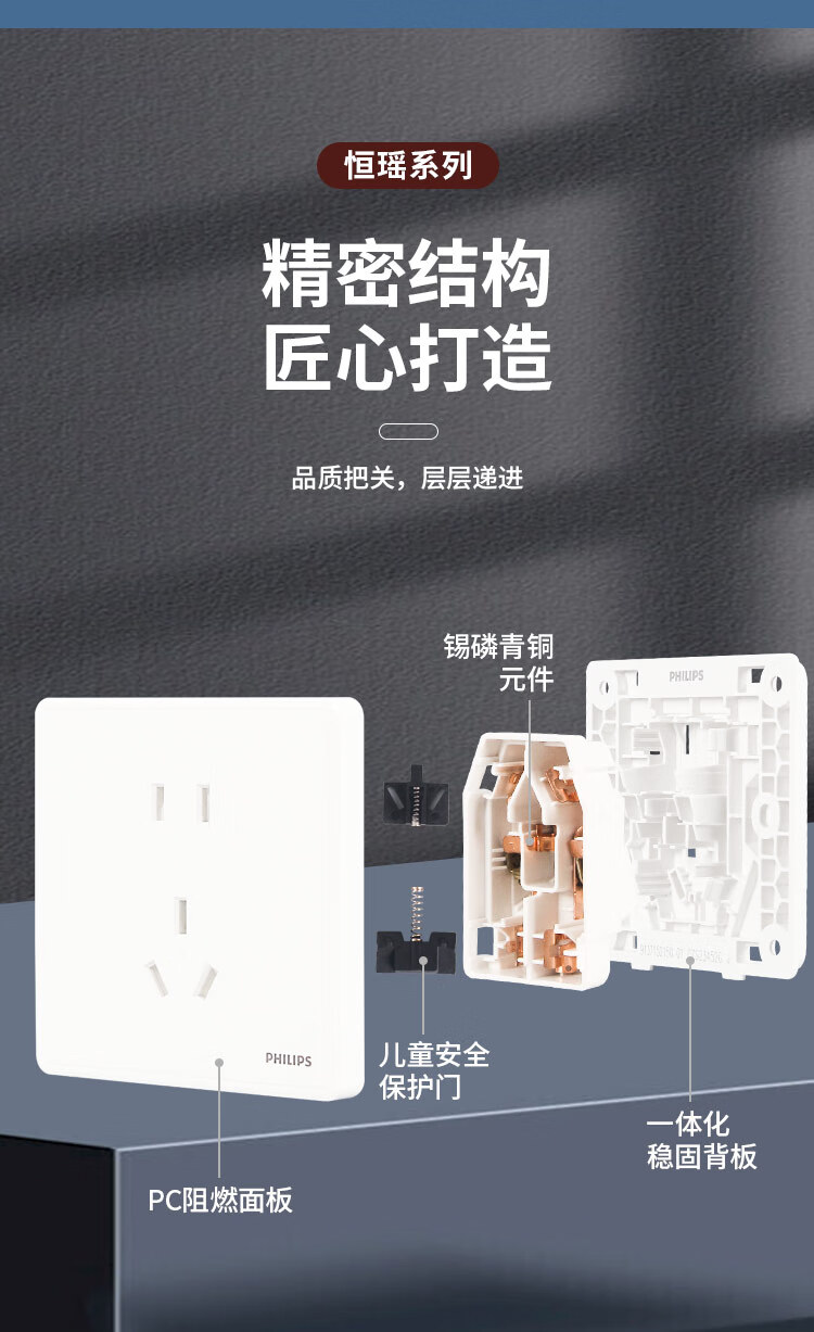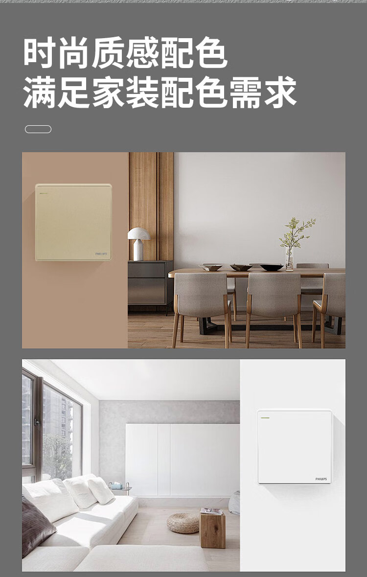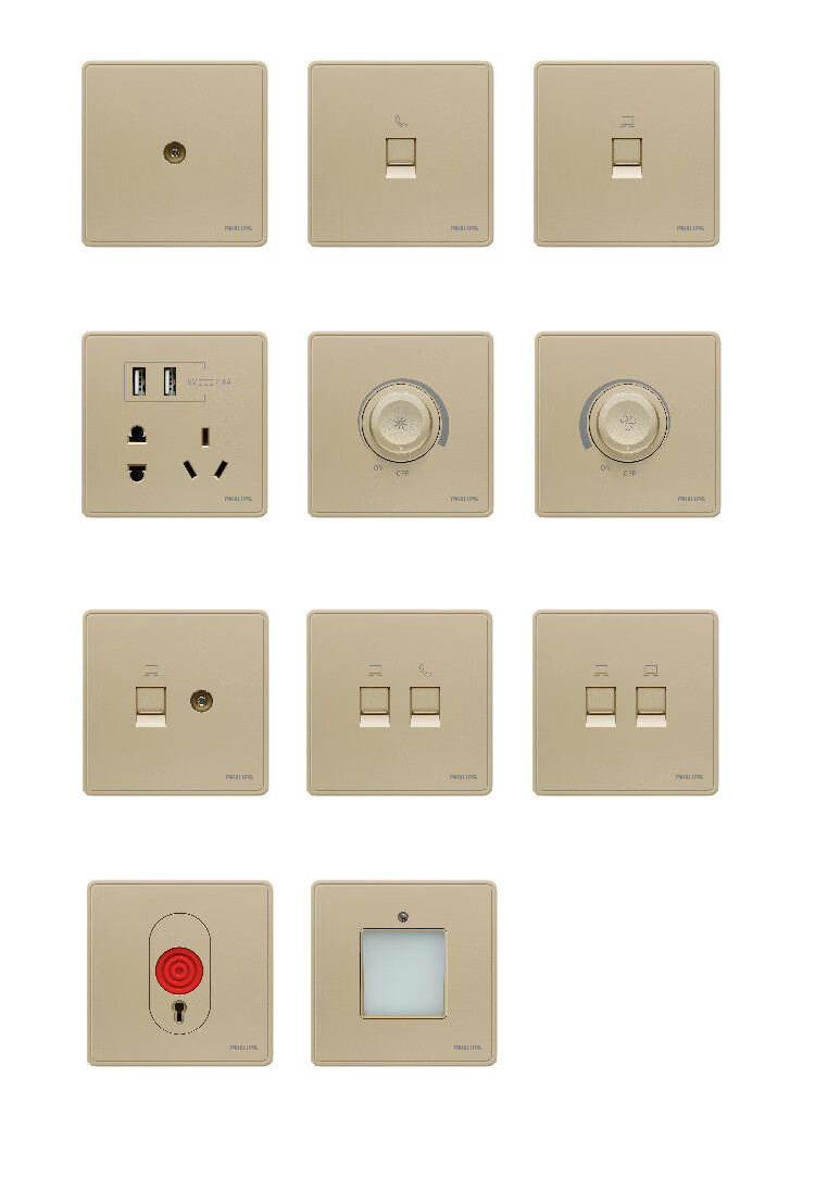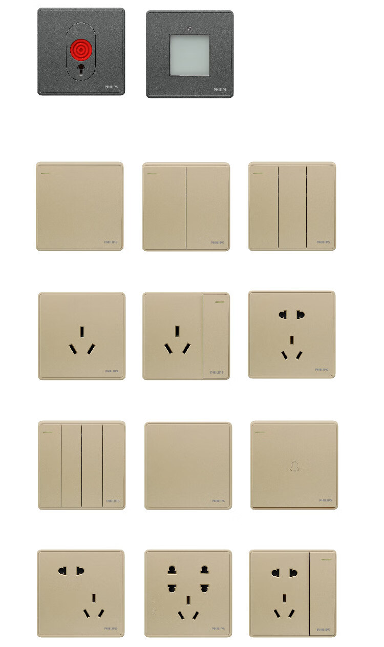 Philips wall switch socket panel Hengyao champagne gold 86 type one, two, three, four, five, seven, 16A three-hole air conditioning computer TV factory single and double control midway multi-control two-open single control fluorescent large panel switch