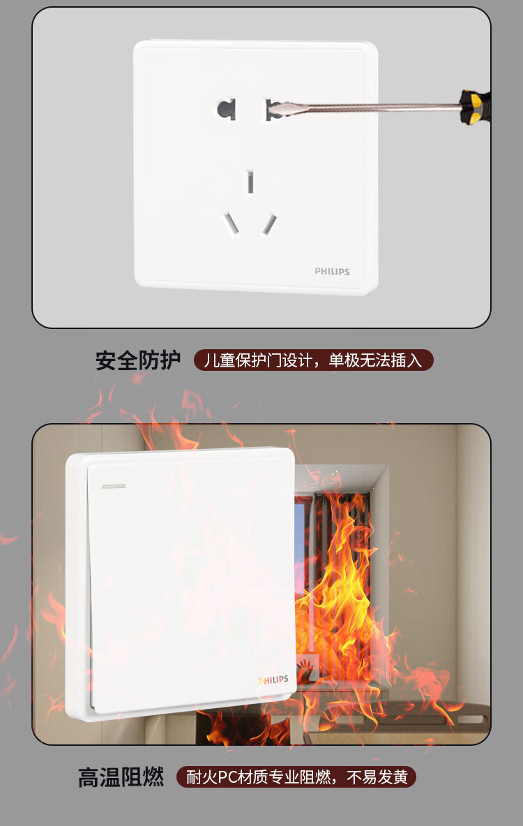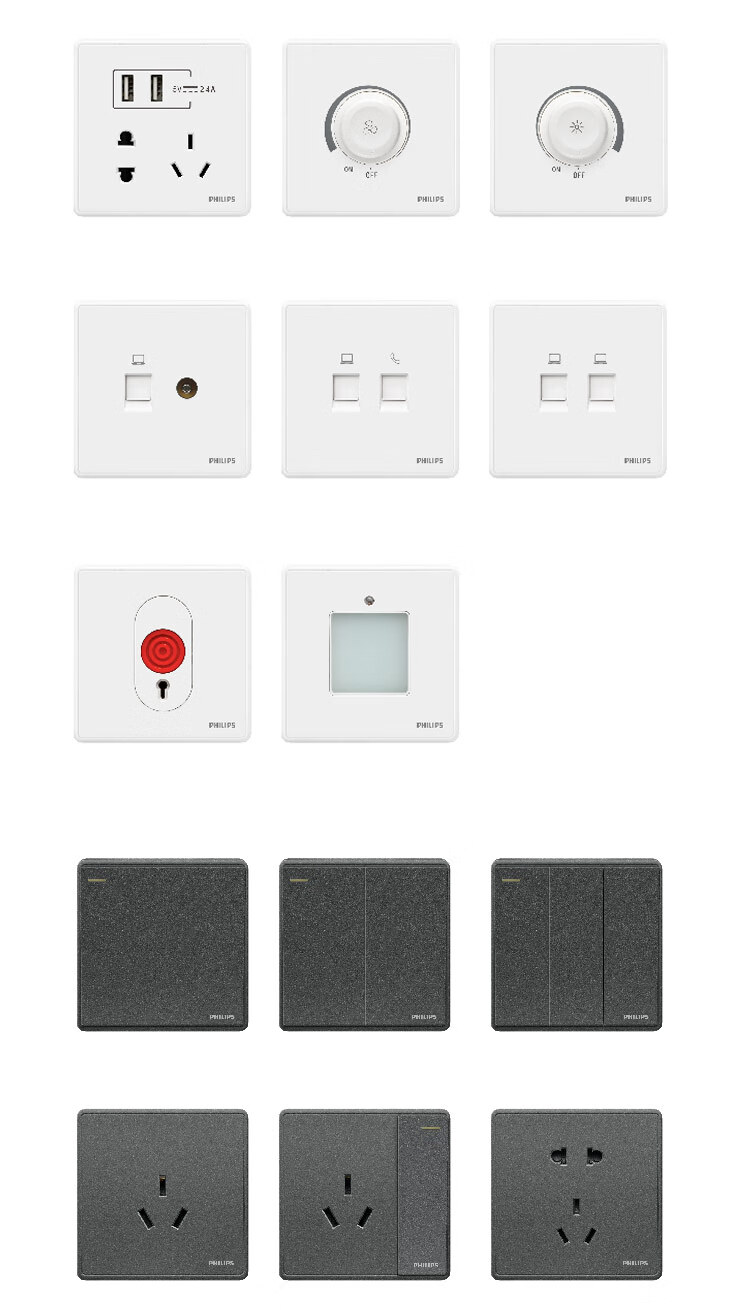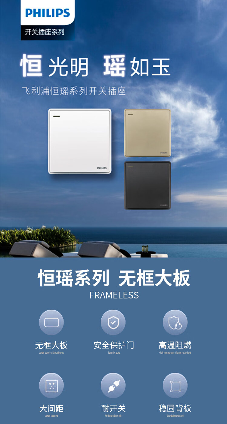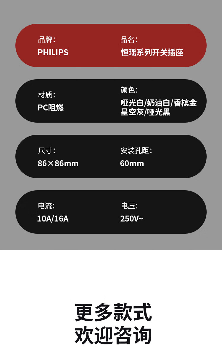 Philips wall switch socket panel Hengyao champagne gold 86 type one, two, three, four, five, seven, 16A three-hole air conditioning computer TV factory single and double control midway multi-control two-open single control fluorescent large panel switch
