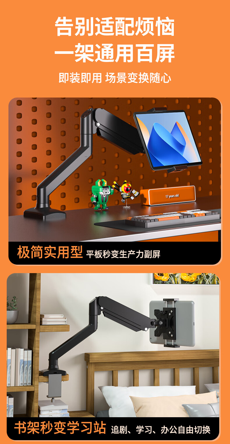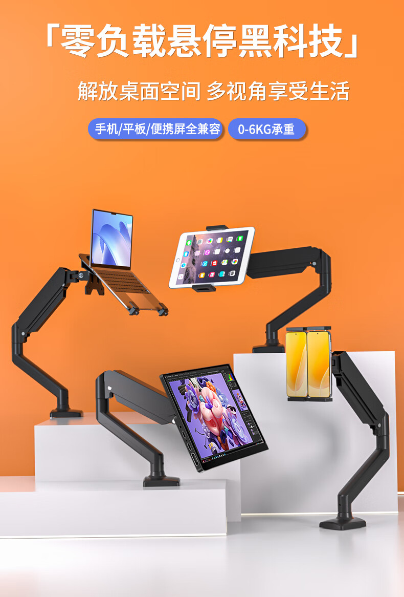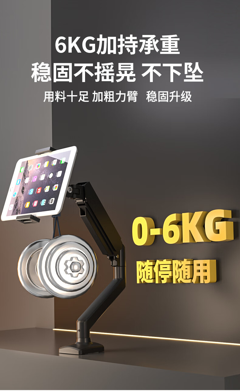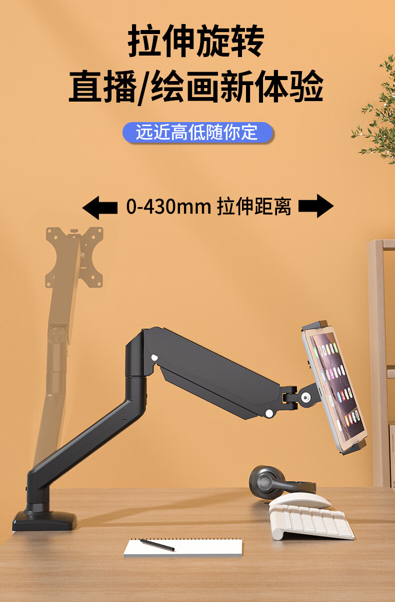 Sance Cantilever Monitor Stand Tablet Portable Screen Stand Desk Clamp Air Pressure Arm Lifting Height Angle Freely Adjustable Game Live Broadcast Office Folding Universal DIY Lazy Stand Mobile Phone/Tablet Stand/Black