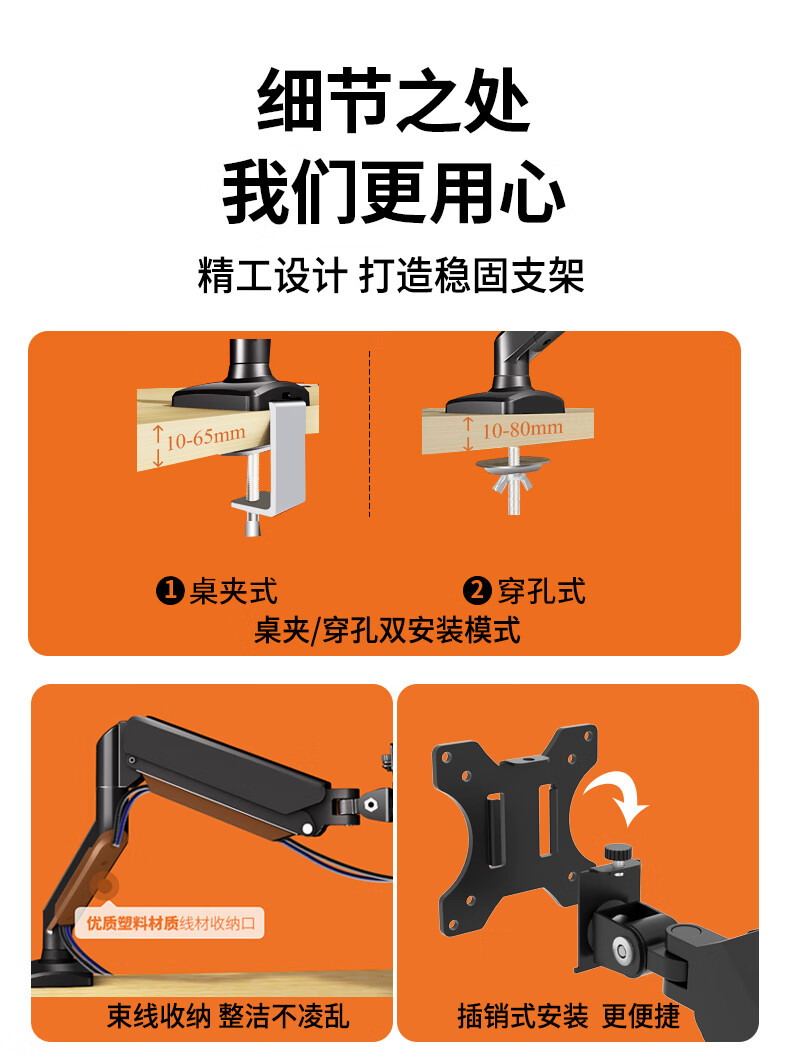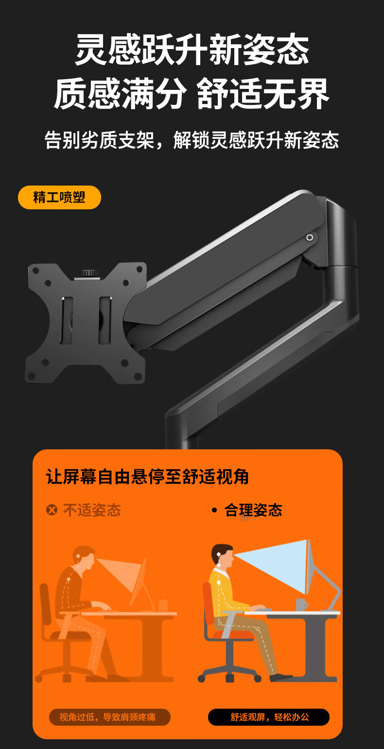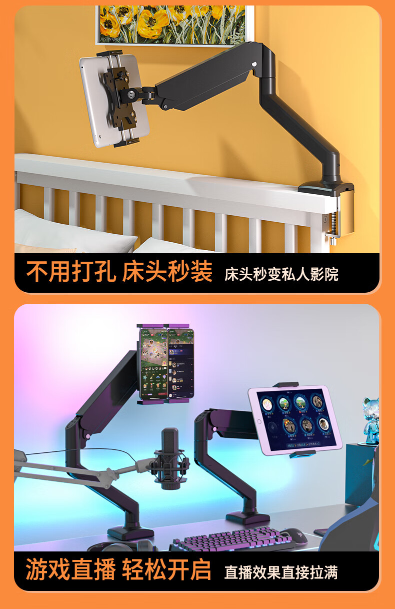 Sance Cantilever Monitor Stand Tablet Portable Screen Stand Desk Clamp Air Pressure Arm Lifting Height Angle Freely Adjustable Game Live Broadcast Office Folding Universal DIY Lazy Stand Mobile Phone/Tablet Stand/Black