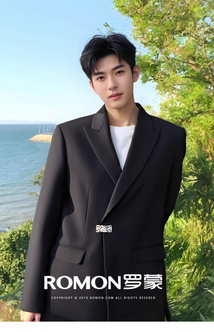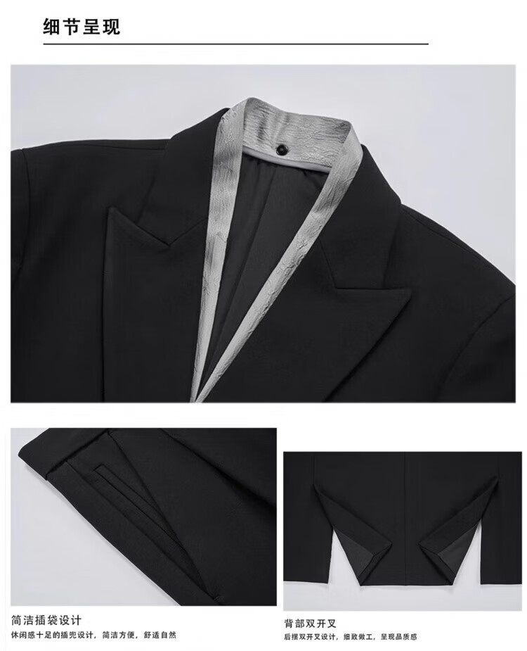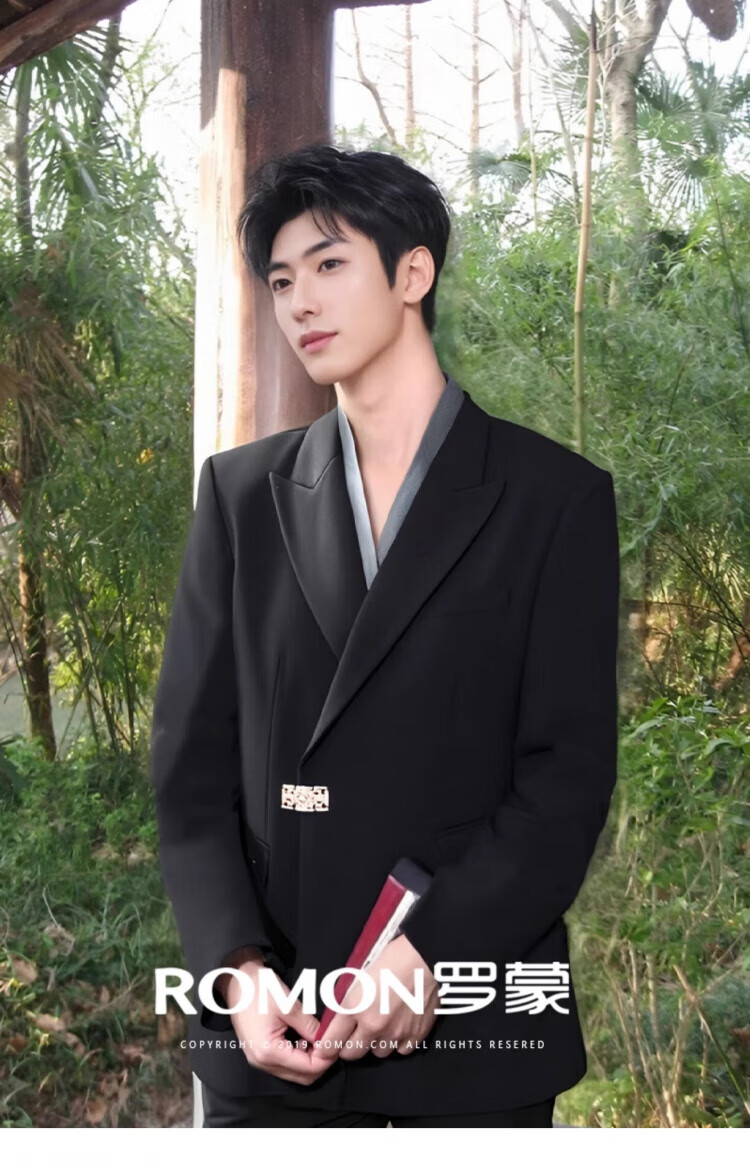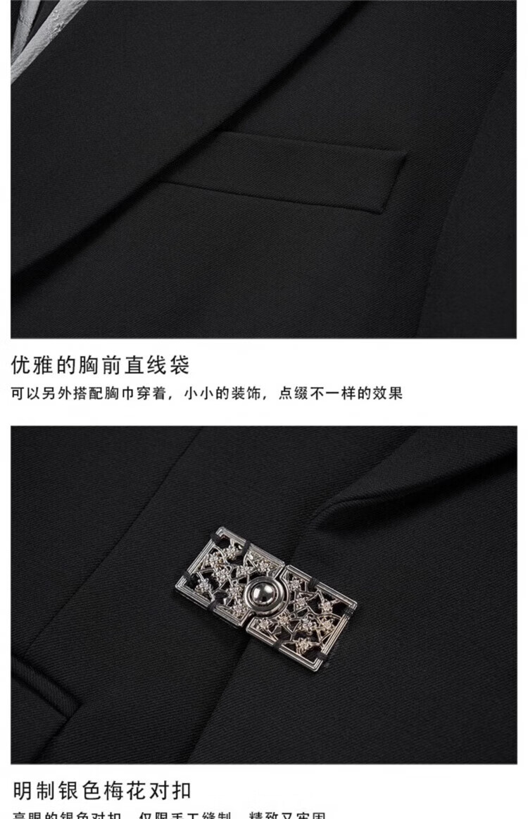 ROMON New Chinese style men's suit suit with metal buckle design, loose suit, high-end tunic suit, handsome suit for men, black suit + pants XL (160-180Jin Jin equals 0.5kg)