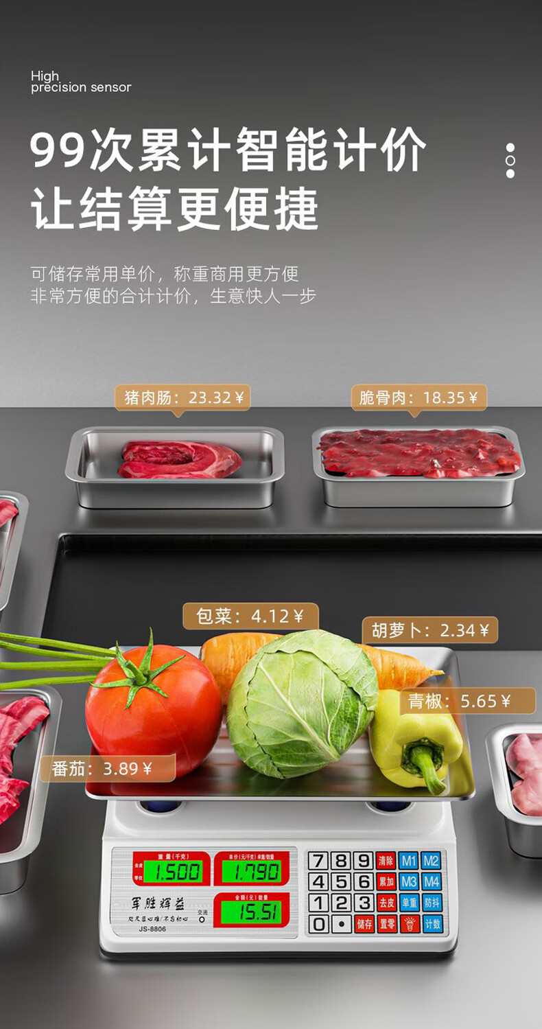 Electronic scale high-precision commercial small business household accurate gram weighing vegetable weighing kitchen kilogram platform commercial model (dual use) LCD concave plate anti-fall enhancement