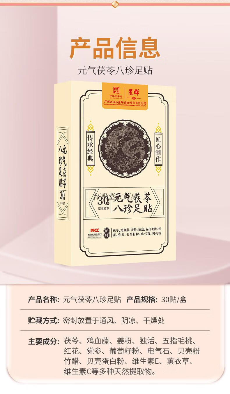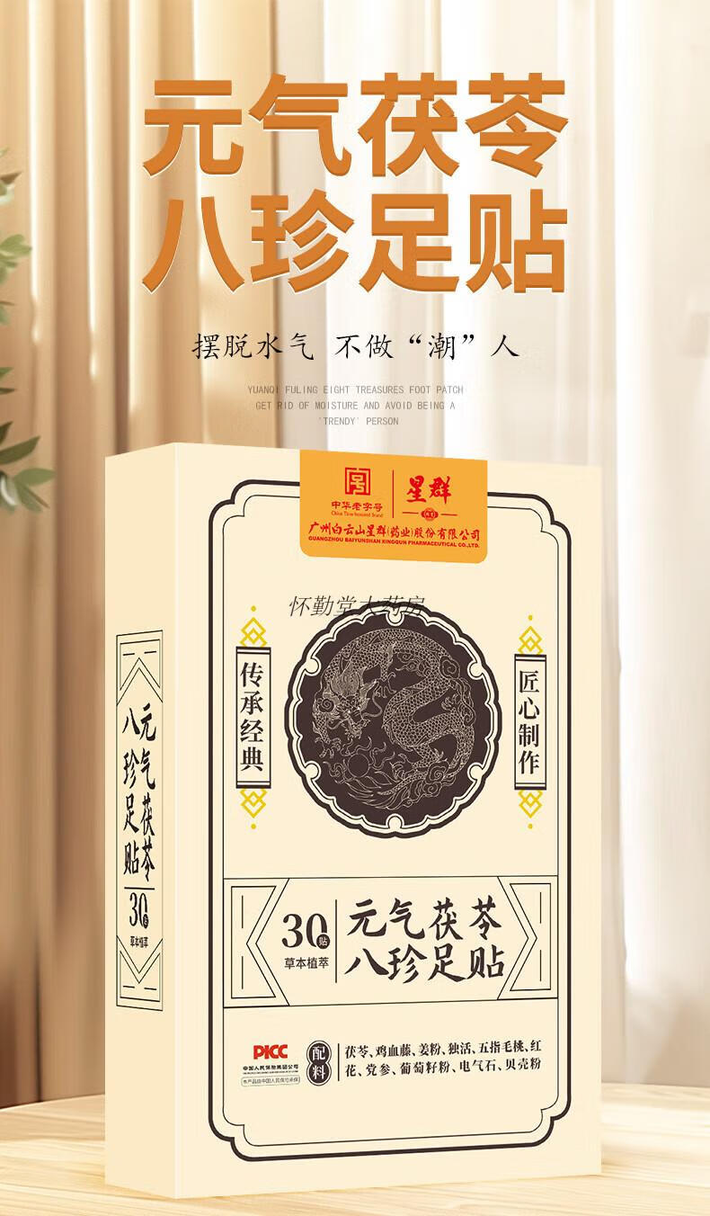 Baiyunshan Xingqun Foot Patch Vitality Poria, Eight Treasures Mugwort, Moxibustion to Remove Moisture and Help Sleep Official Five Boxes