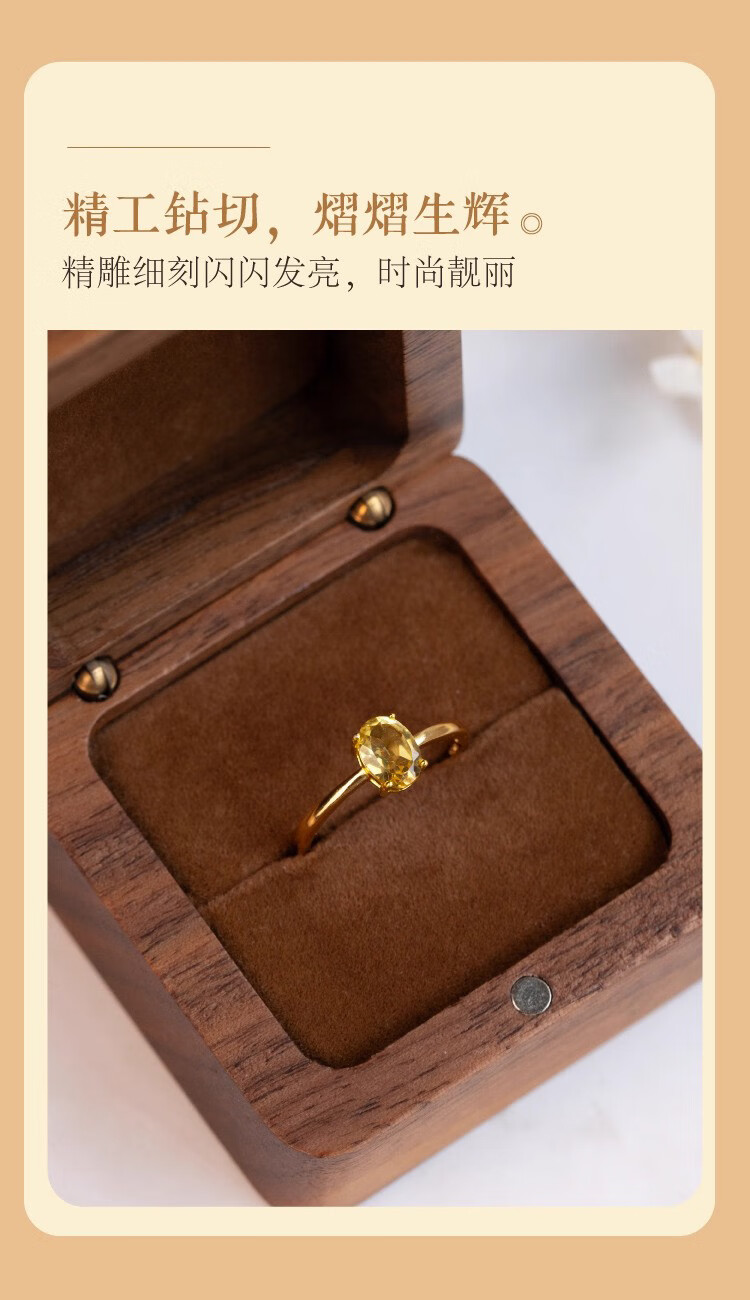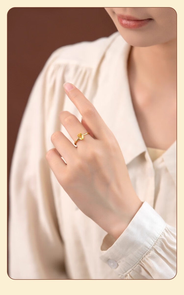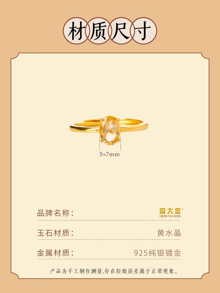 Zhou Dajin CHOW TAI KING genuine citrine ring for girls 2025 new wealth-gathering hand jewelry Valentine's Day birthday gift for girlfriend Lemon Ring Next Day Air Delivery