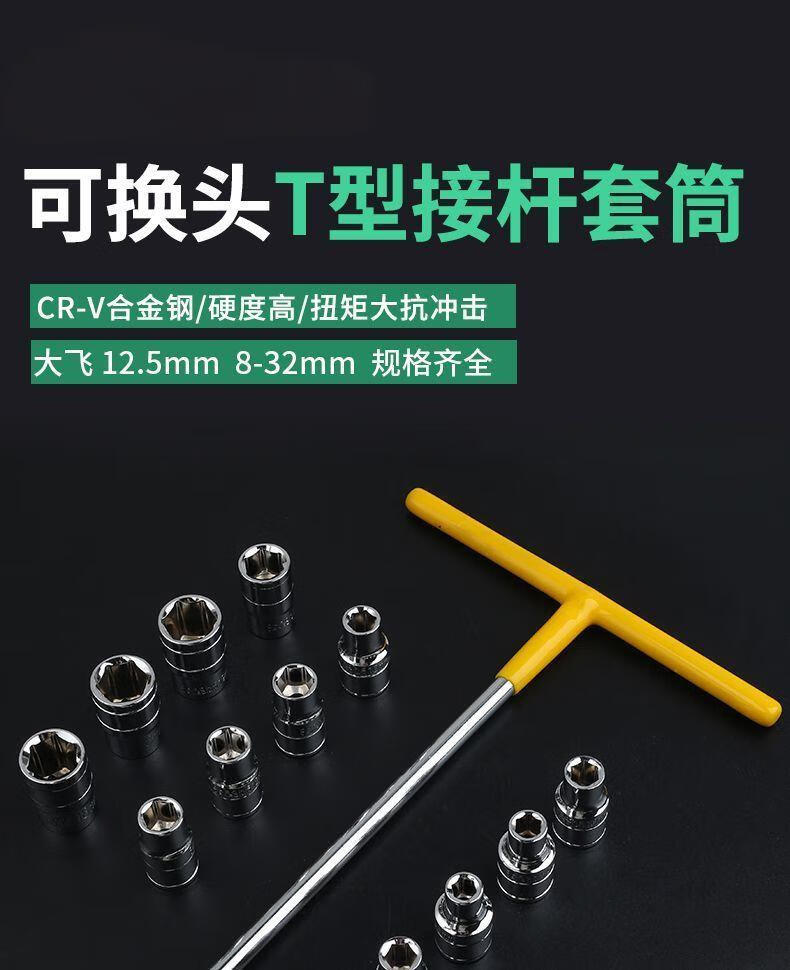 Labor-saving head-replaceable T-shaped socket wrench, T-shaped T-shaped head, replaceable head, multi-functional combination set, large flying socket head wrench, replaceable head, T-shaped rubber-coated post, 12-piece set