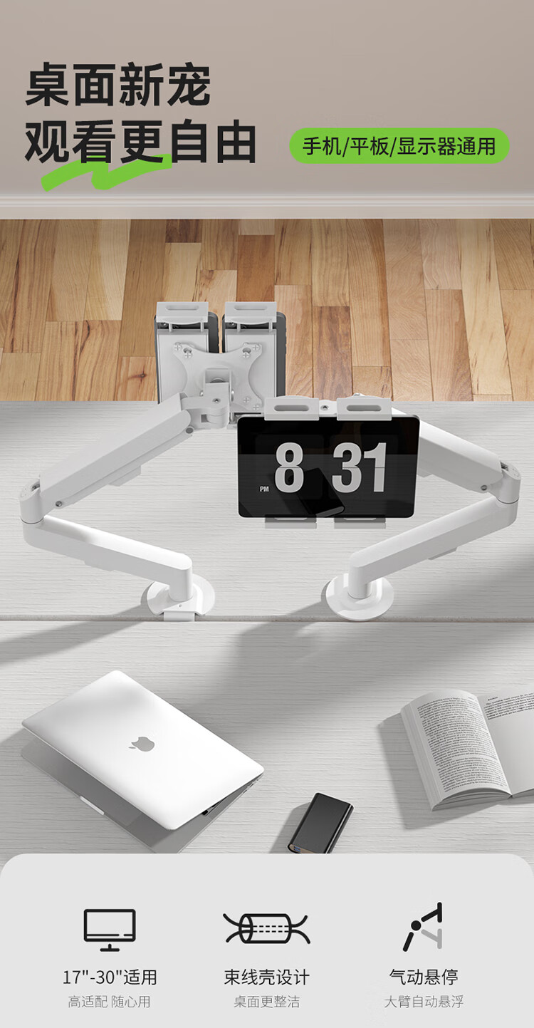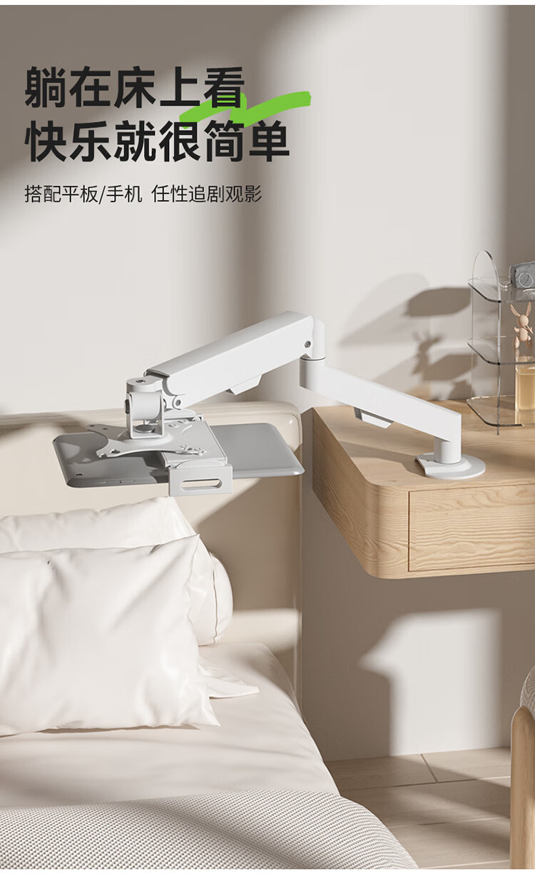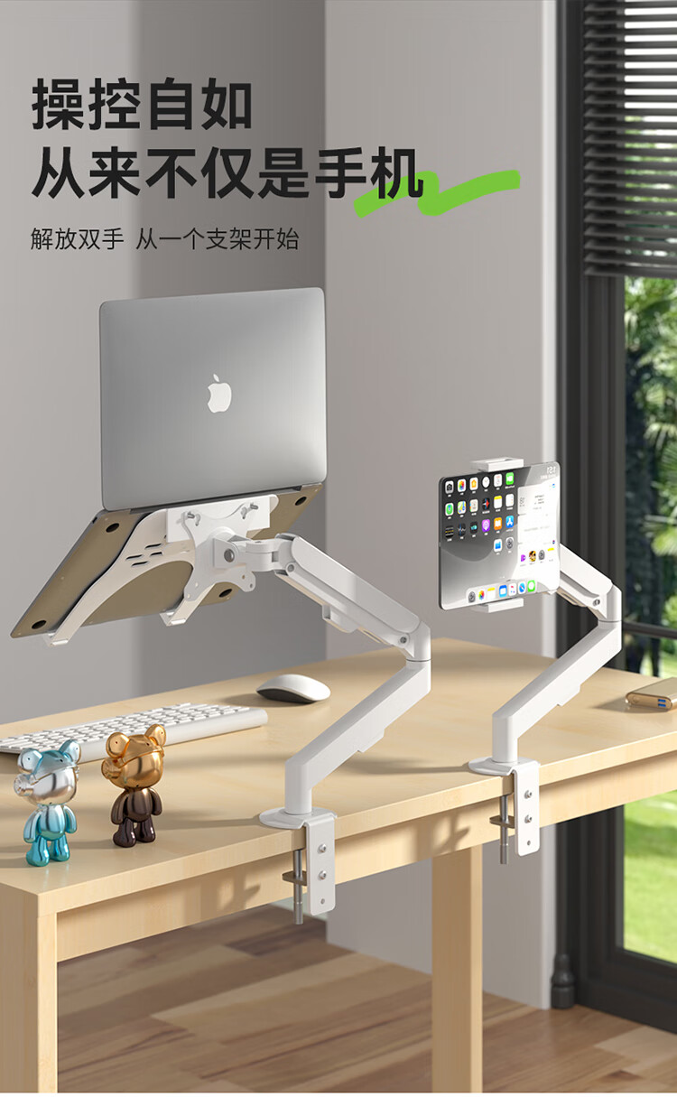 HILLPORT adapts to the sculptor's portable screen bedside desktop stand. Mobile phone tablet stand can be lifted, rotated, elevated, iPad table clip or perforated. Small screen air pressure arm/portable screen/0-6KG/metal shaft white